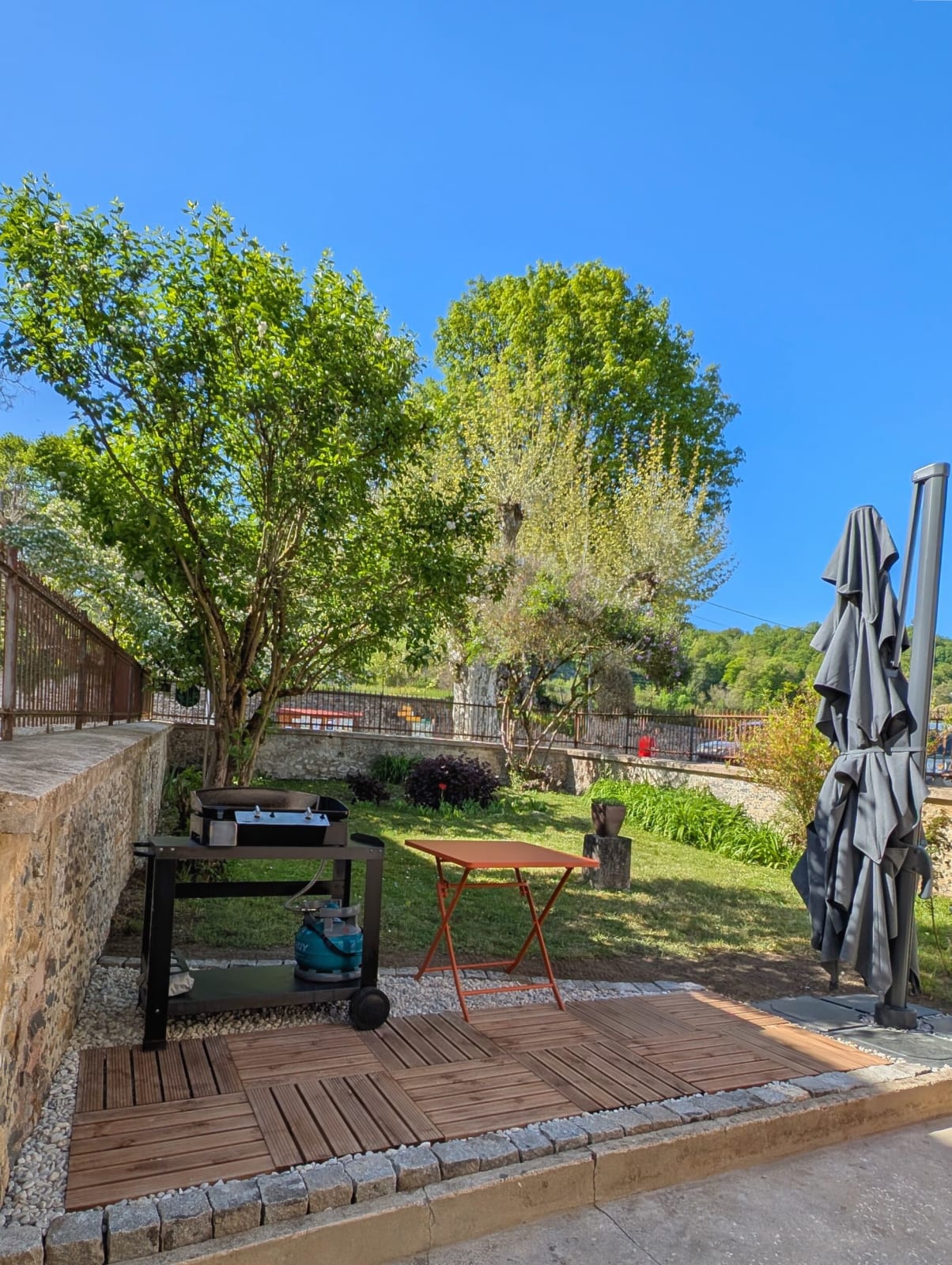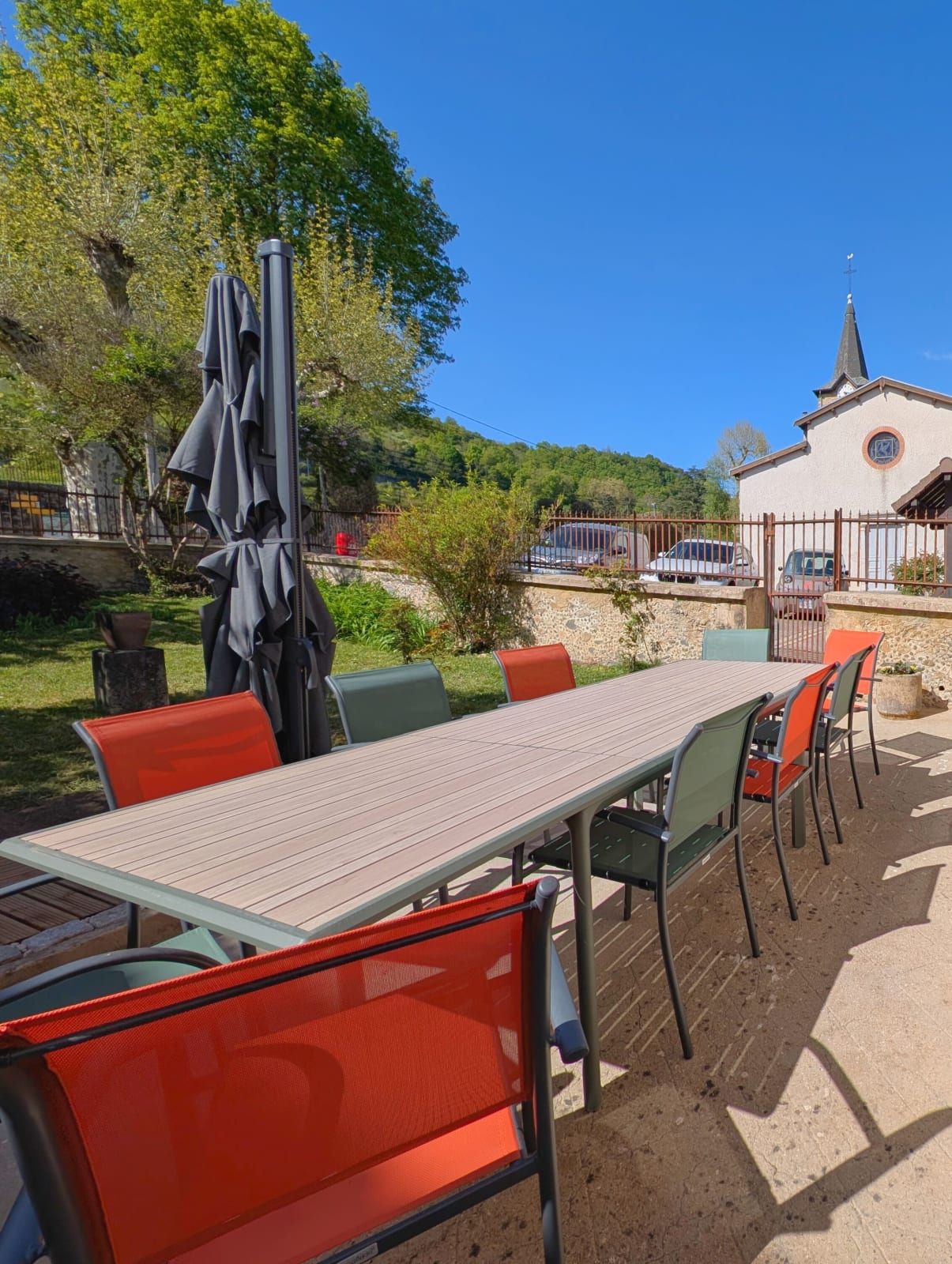 A real highlight of the property: an enclosed garden with a terrace, equipped with a large table for 8 to 10 people and a gas griddle. Situated opposite the village church, under a large parasol, the terrace is perfect for enjoying sunny days in a peaceful and authentic setting.