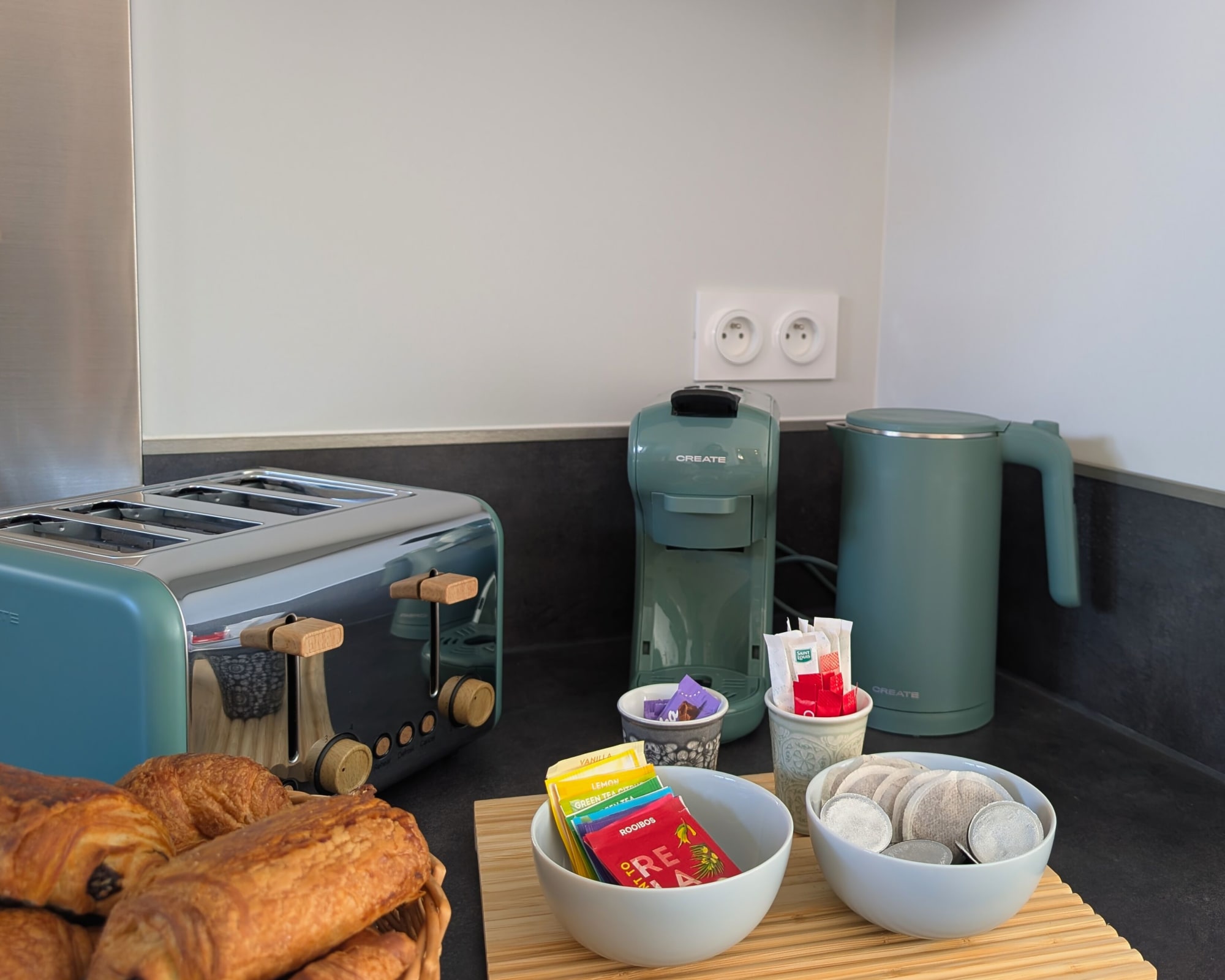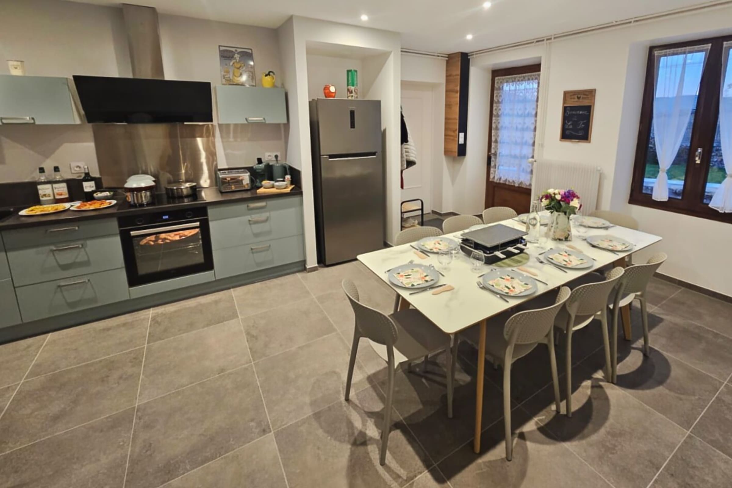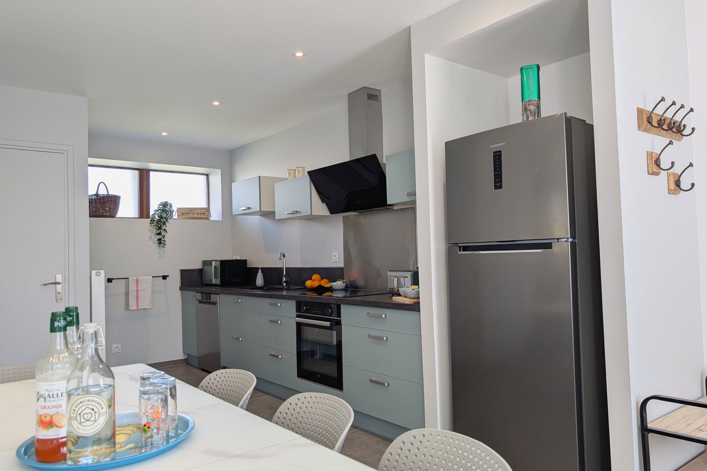 - Fitted kitchen, open to the dining room: ceramic hob, oven, microwave, fridge, dishwasher, pod coffee machine (Nespresso, Senseo, filter), kettle, toaster, food processors