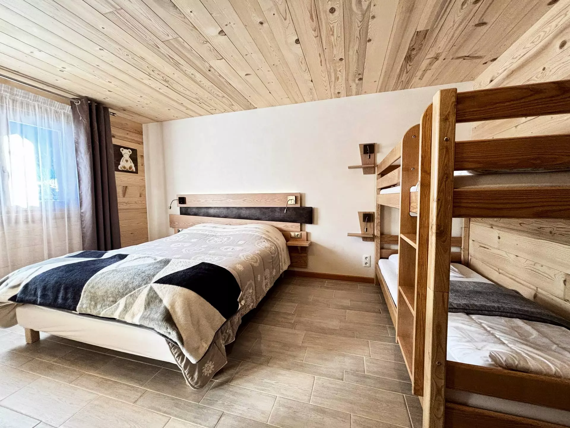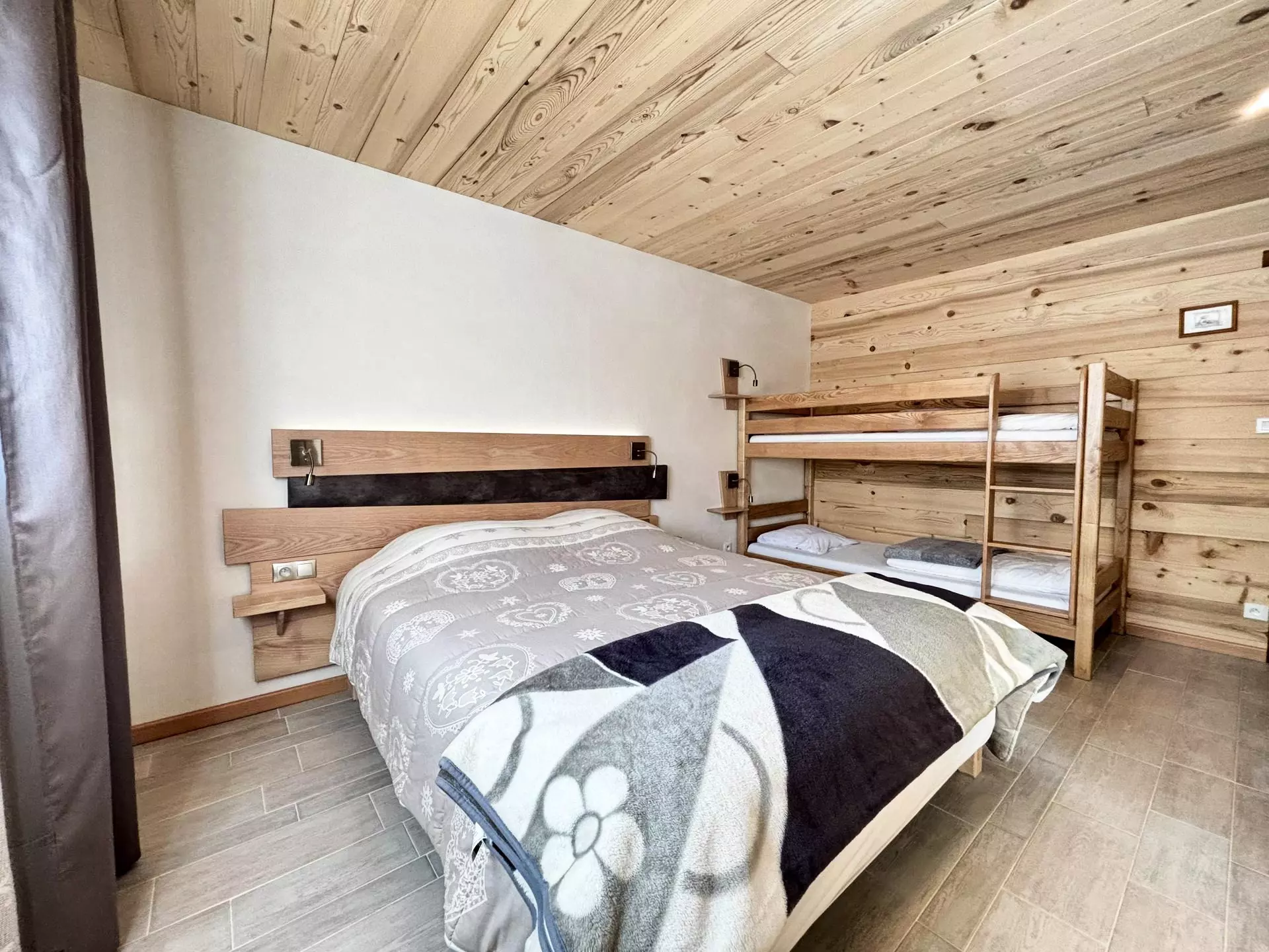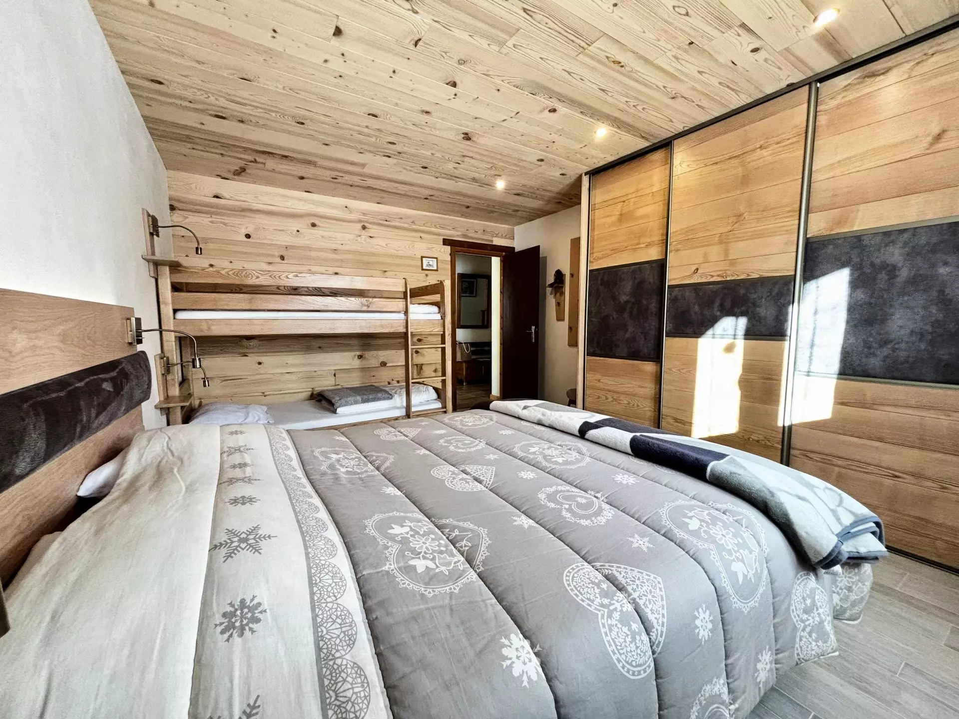A second bedroom with a 160cm double bed and a bunk bed (2 x 90cm) + large dressing room
