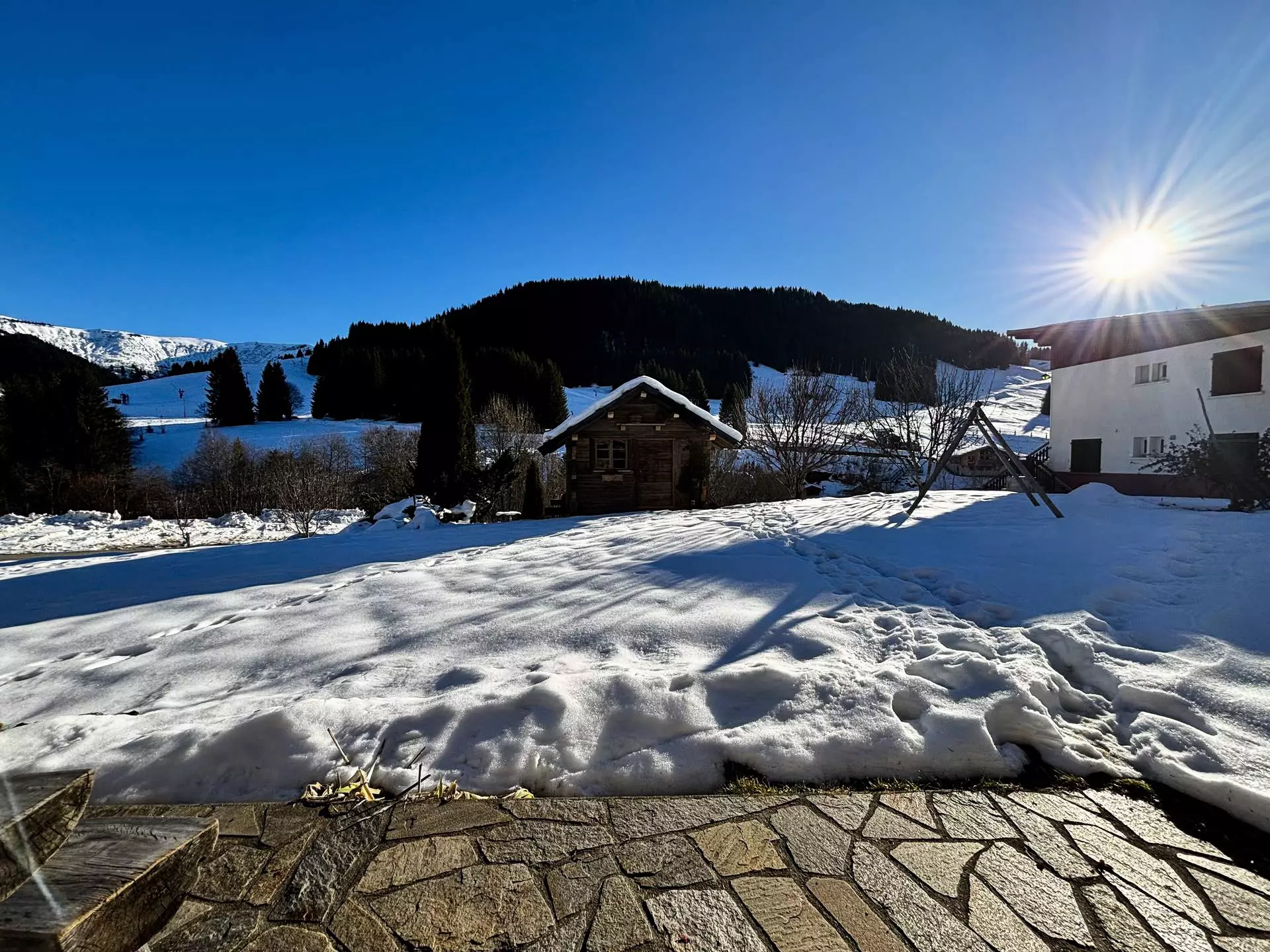 The chalet enjoys a privileged location, just 200m from the Espace Diamant slopes and the ski school.