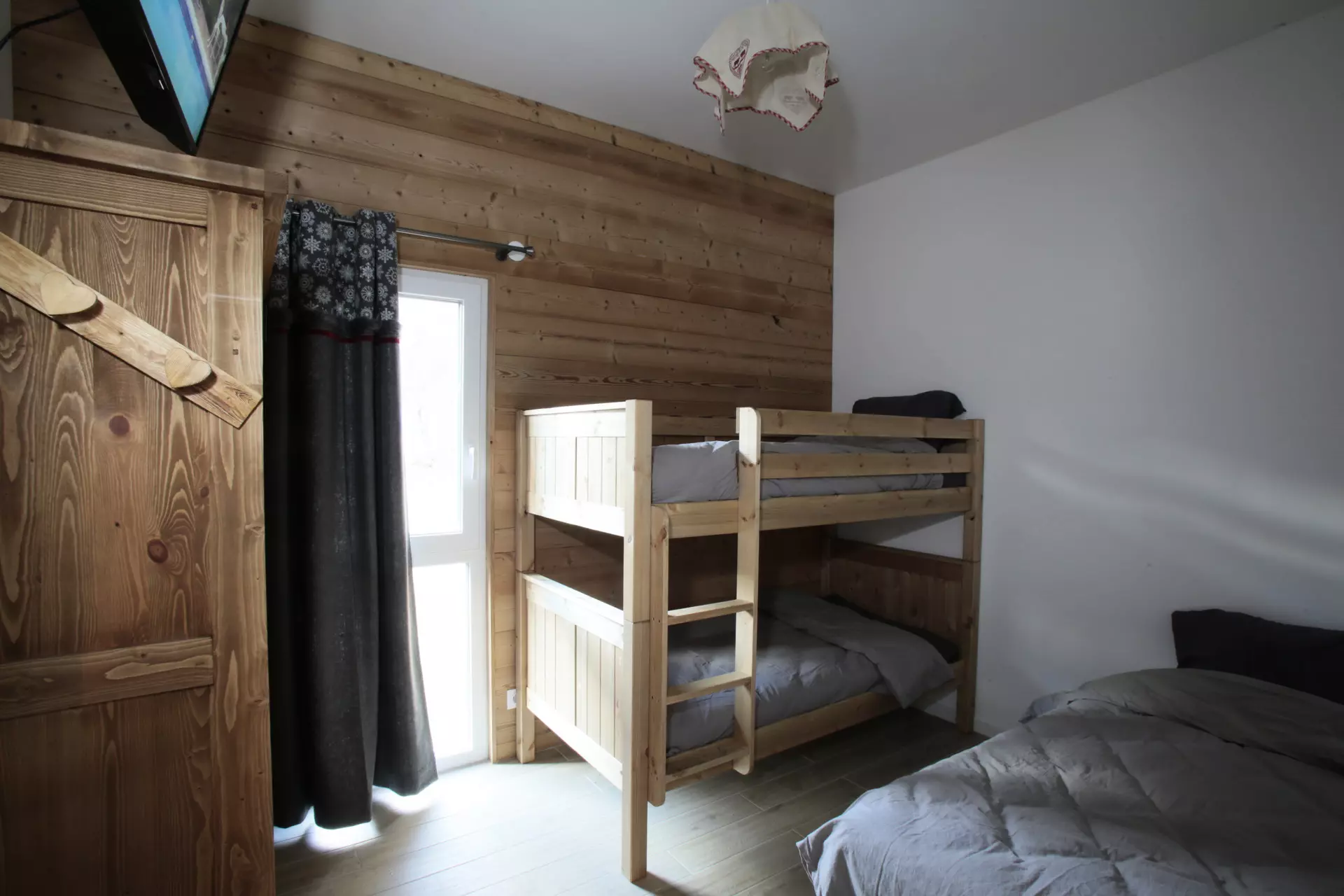 Bedroom 2 (9m²): 1 single bed + 2 bunk beds (3 x 90 x 190 cm) + television