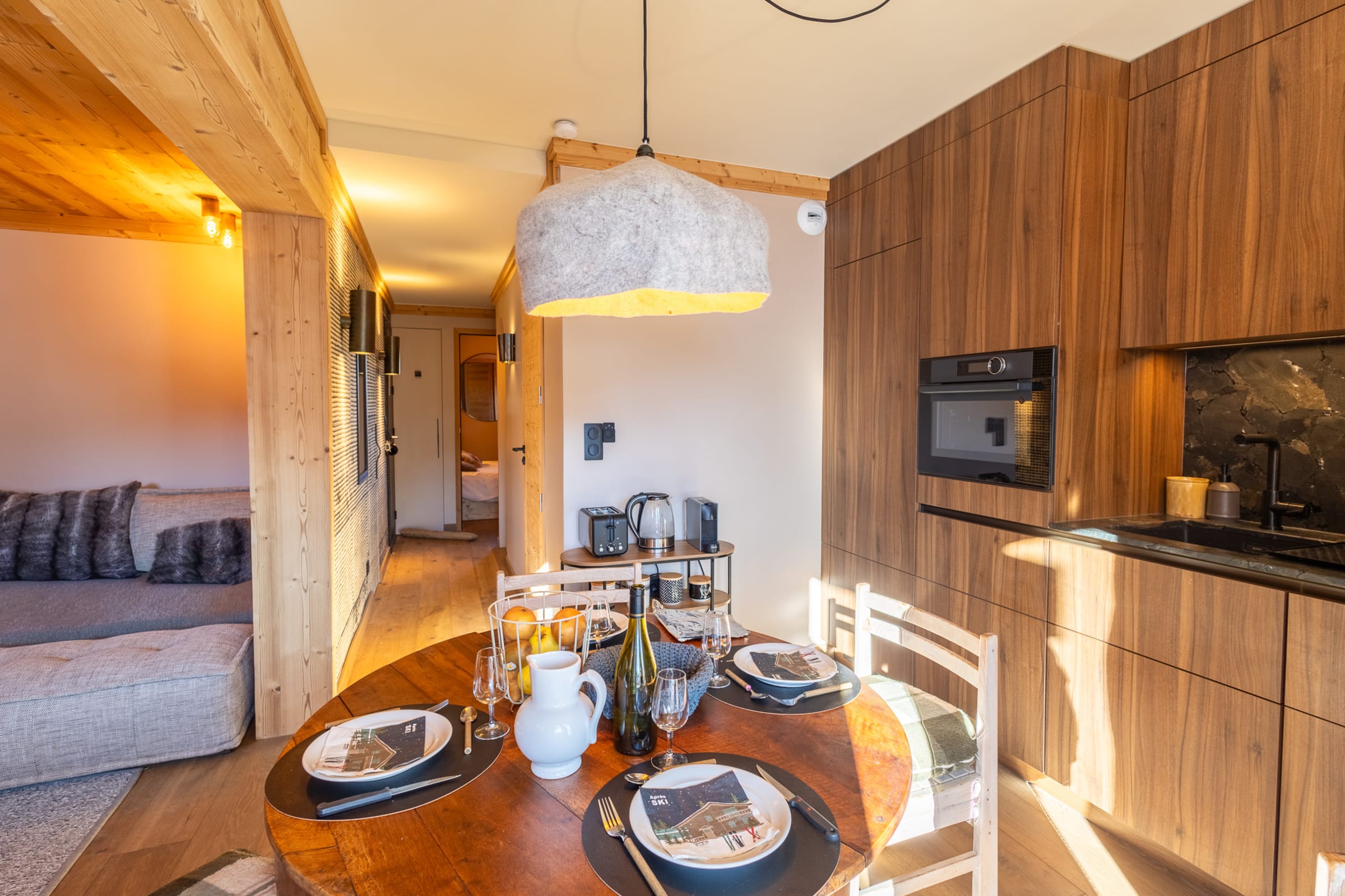 Guests have full, private access to the apartment, as well as a ski locker. A parking space is available within the residence.