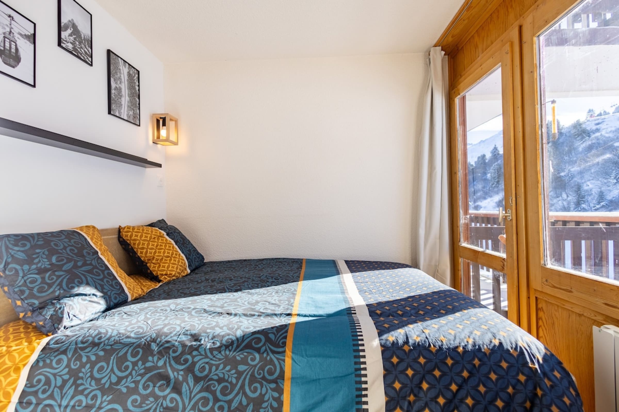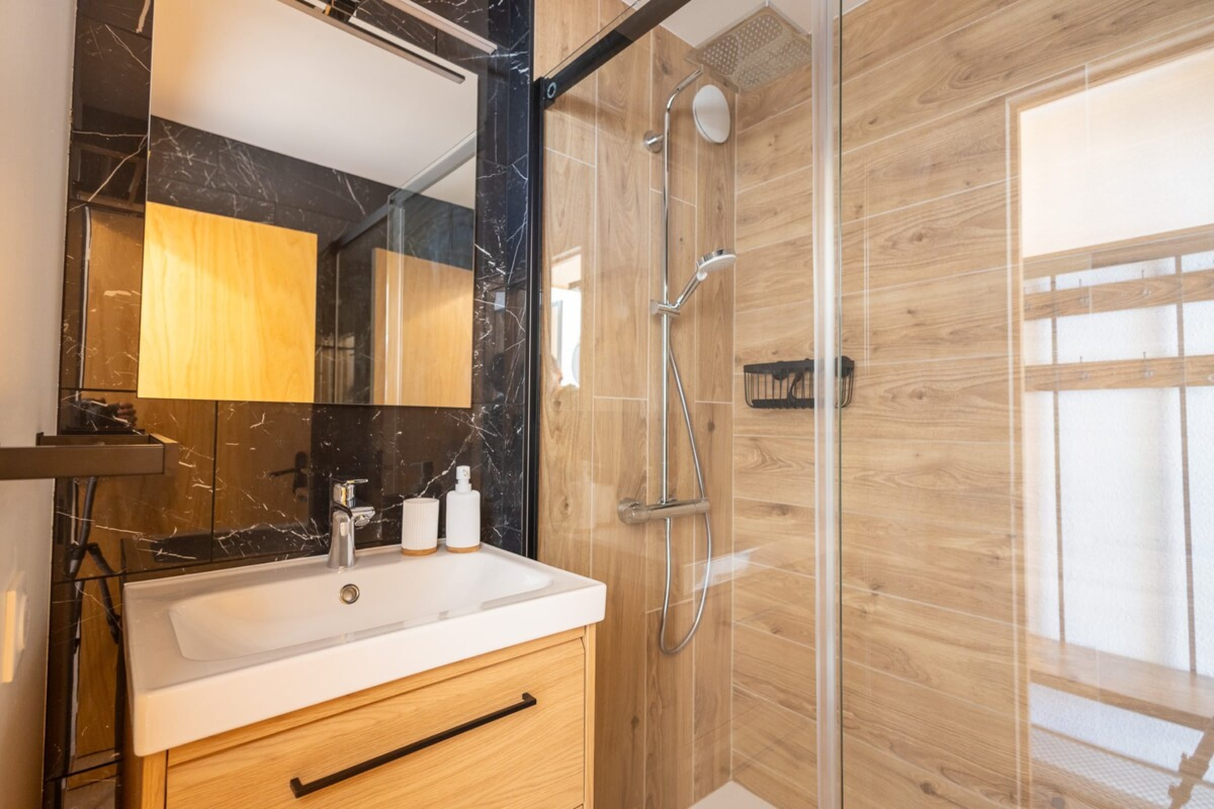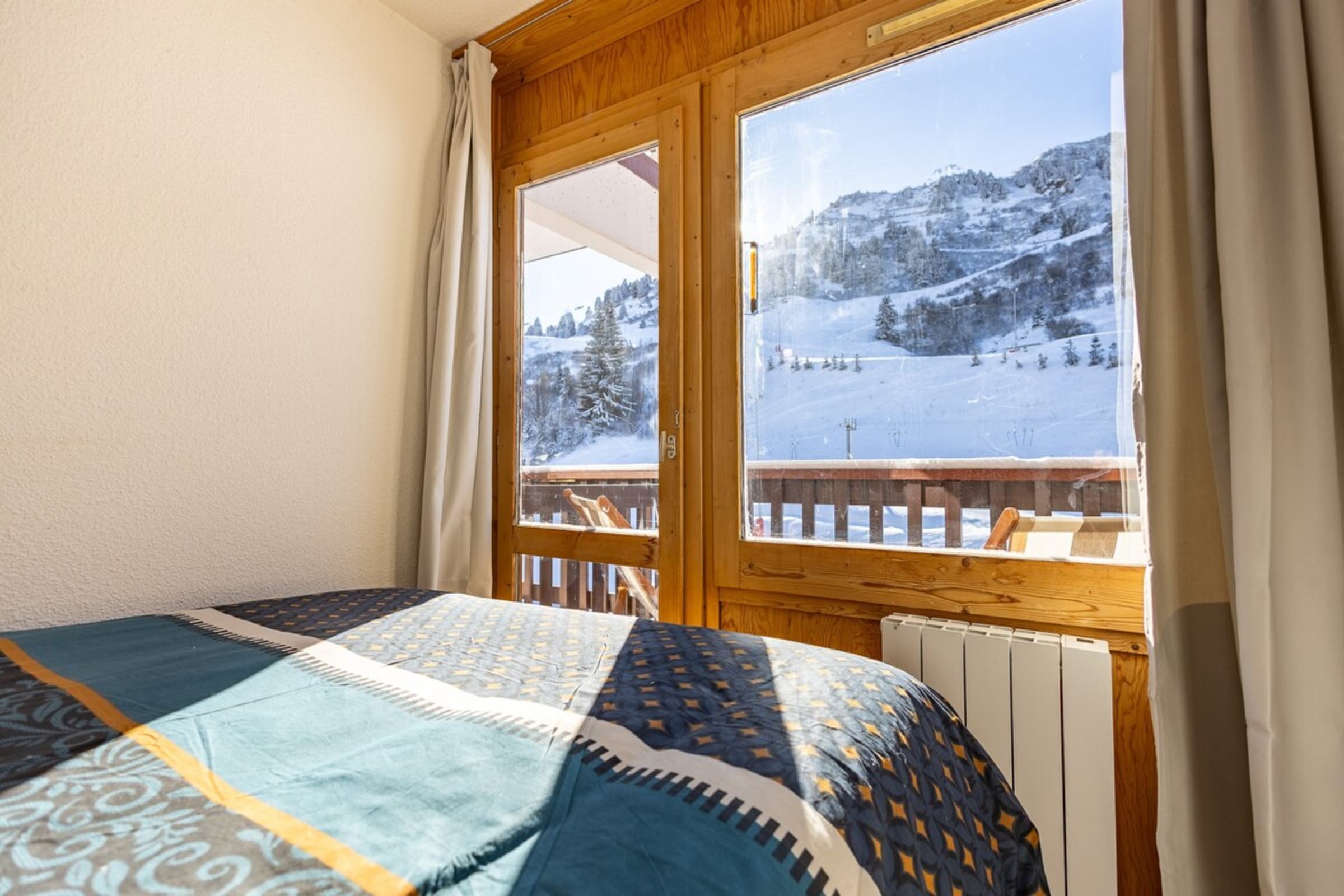 This 45m² apartment is located in the Hameau area of Méribel-Mottaret, ideal for 4 people. It includes a master bedroom with a view of the slopes, a sleeping nook with bunk beds (two single beds), a comfortable living room, and a newly equipped kitchen. The modern bathroom has an Italian shower. The balcony offers breathtaking views of the slopes, perfect for enjoying the fresh mountain air. A ski locker completes this cozy and practical space, situated right at the foot of the lifts.