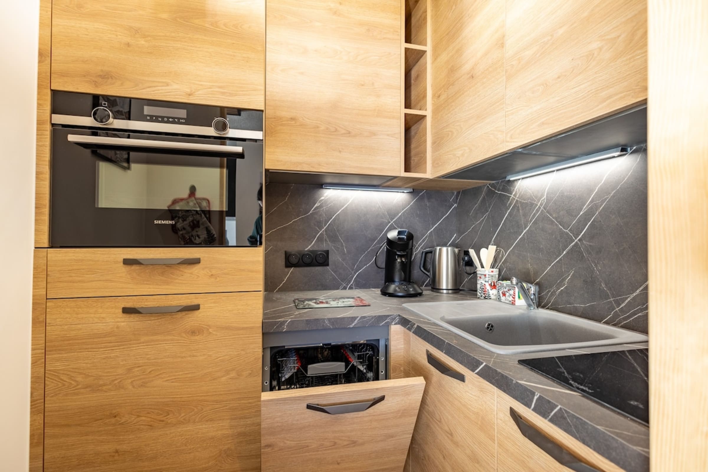The apartment is easily accessible by car via a road that is regularly cleared of snow in winter. You’ll find free parking nearby, as well as a paid covered parking lot just 50 meters away. Ideally located, the apartment is directly on the slopes, allowing you to put on your skis right outside. To reach the town center, the gondolas are available, providing quick and convenient access.