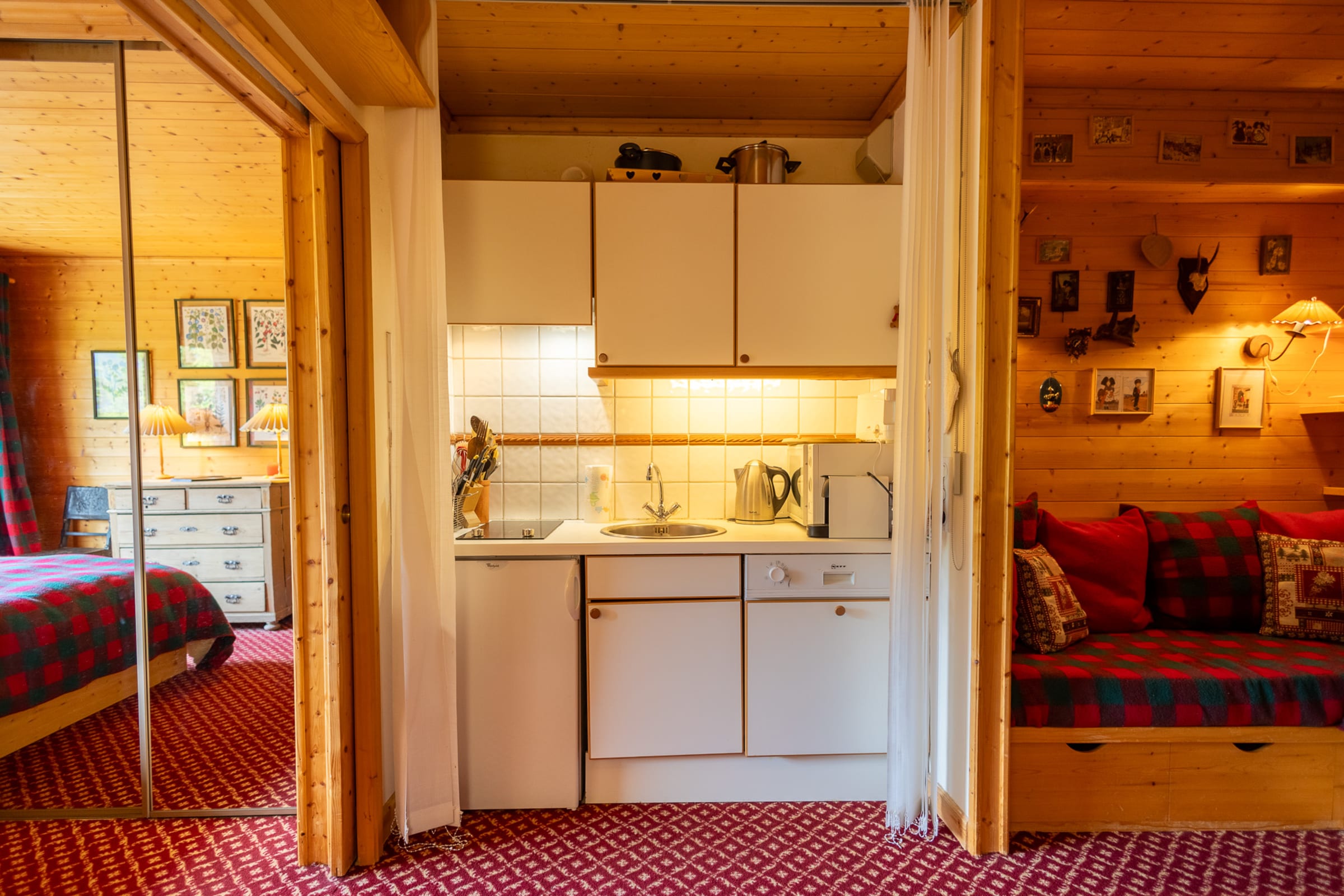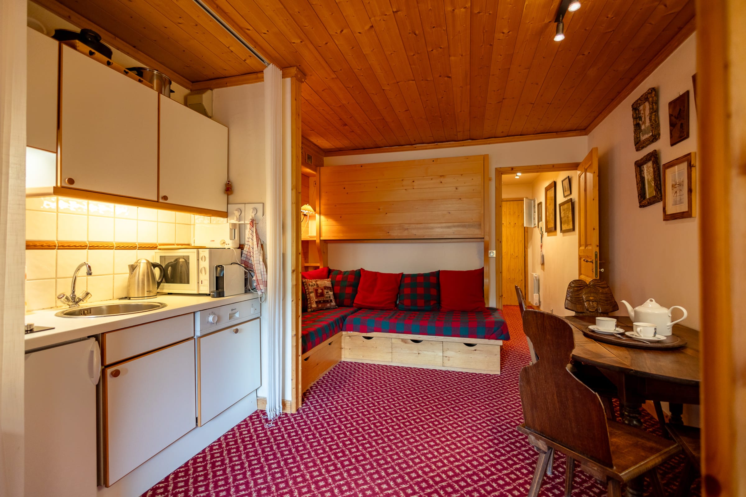 The apartment is cozy and full of alpine charm, with ski-in/ski-out access directly from the residence.
