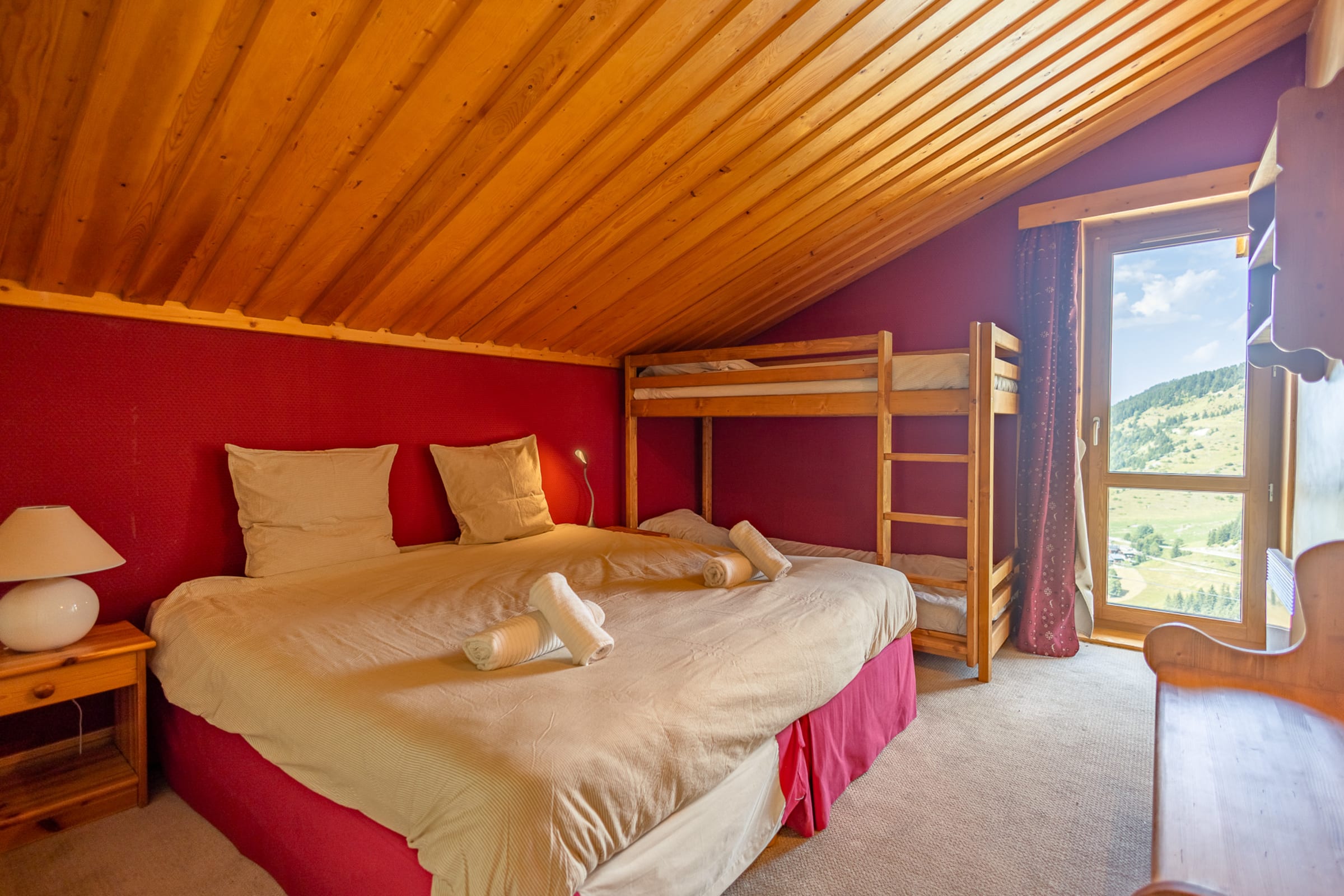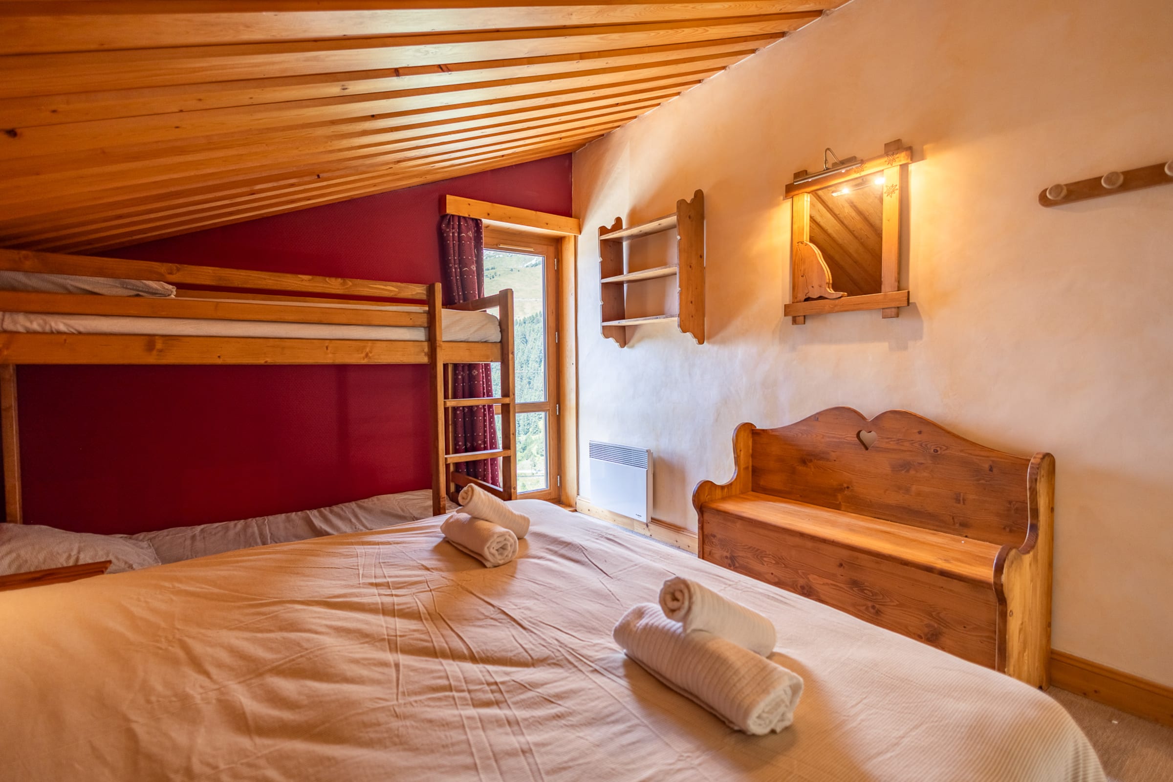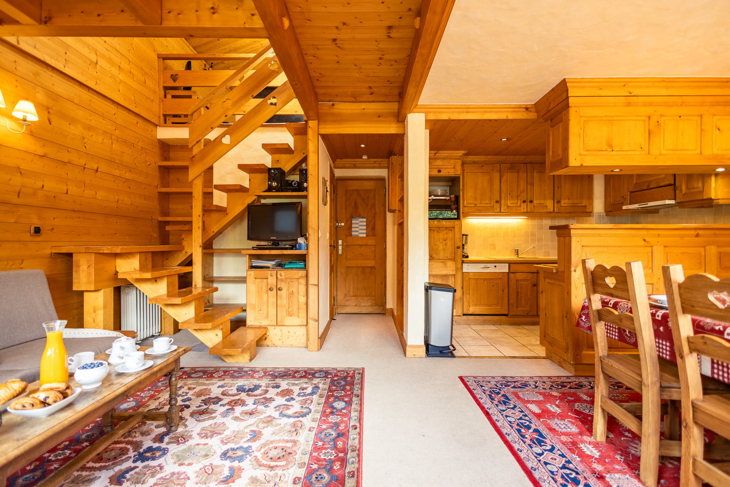 This bright and dual-aspect 91m² duplex is perfect for family or group getaways. With north and south exposures, it enjoys natural light throughout the day and offers breathtaking views of the slopes and surrounding mountains from the living room and balcony.