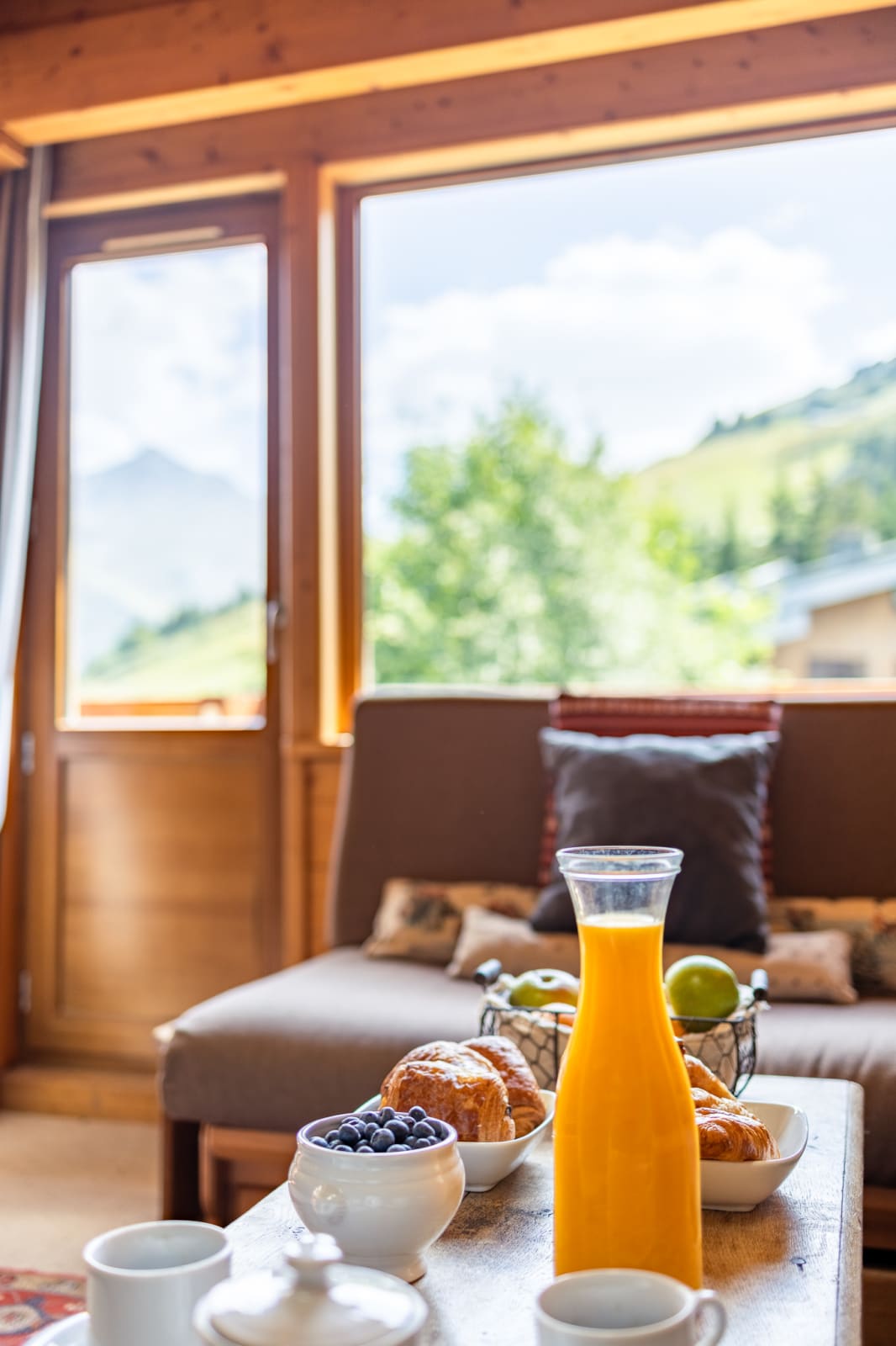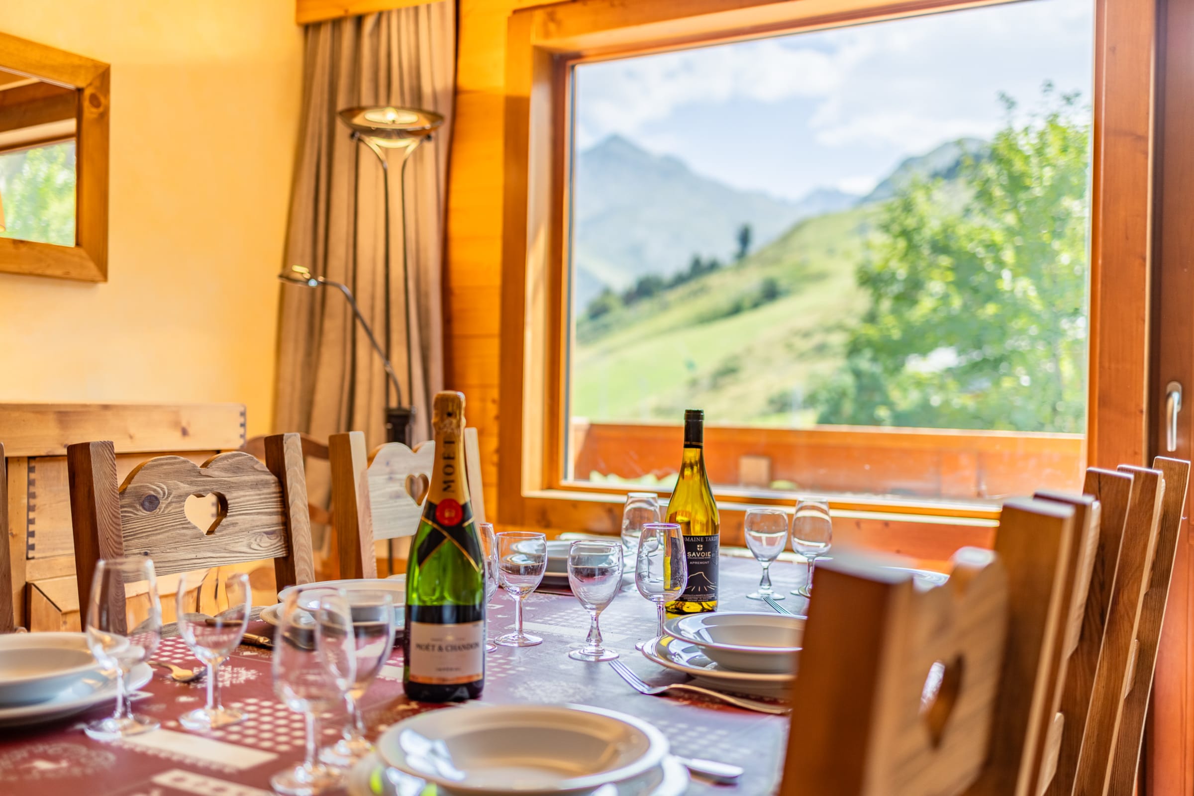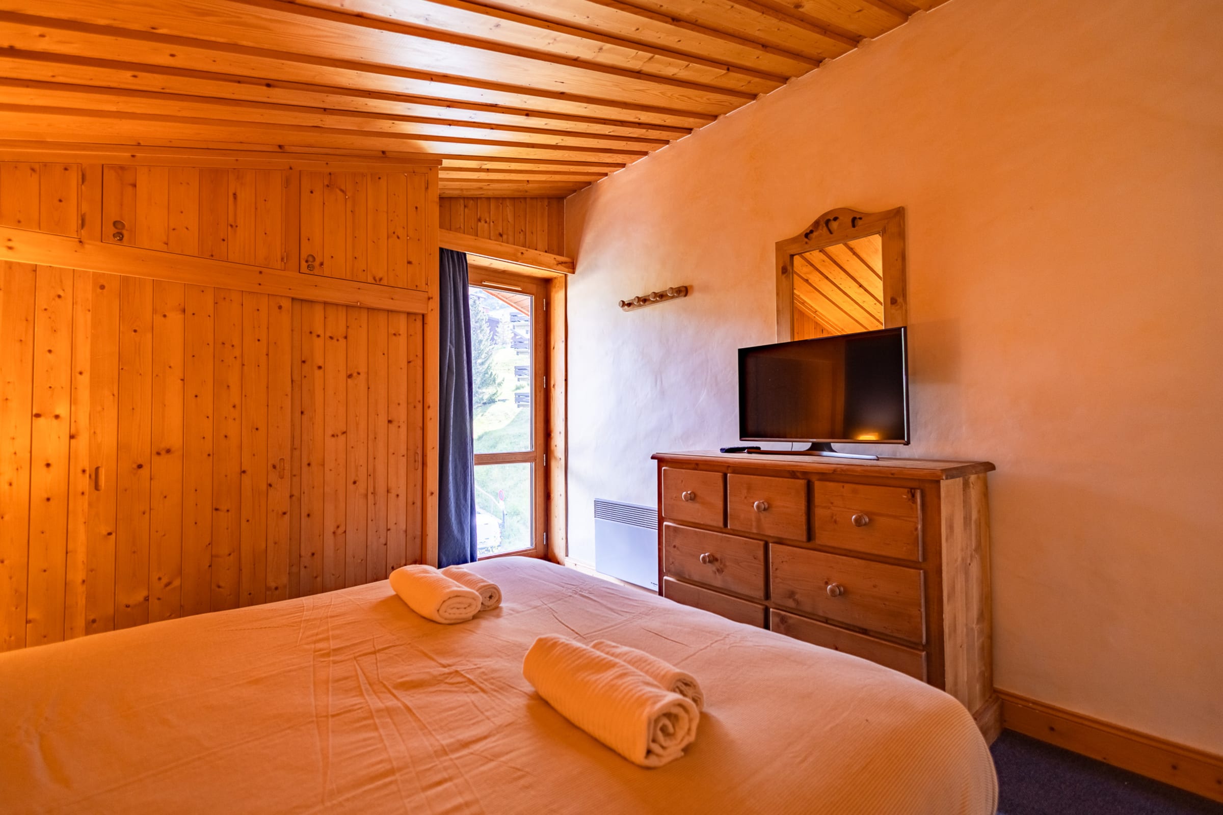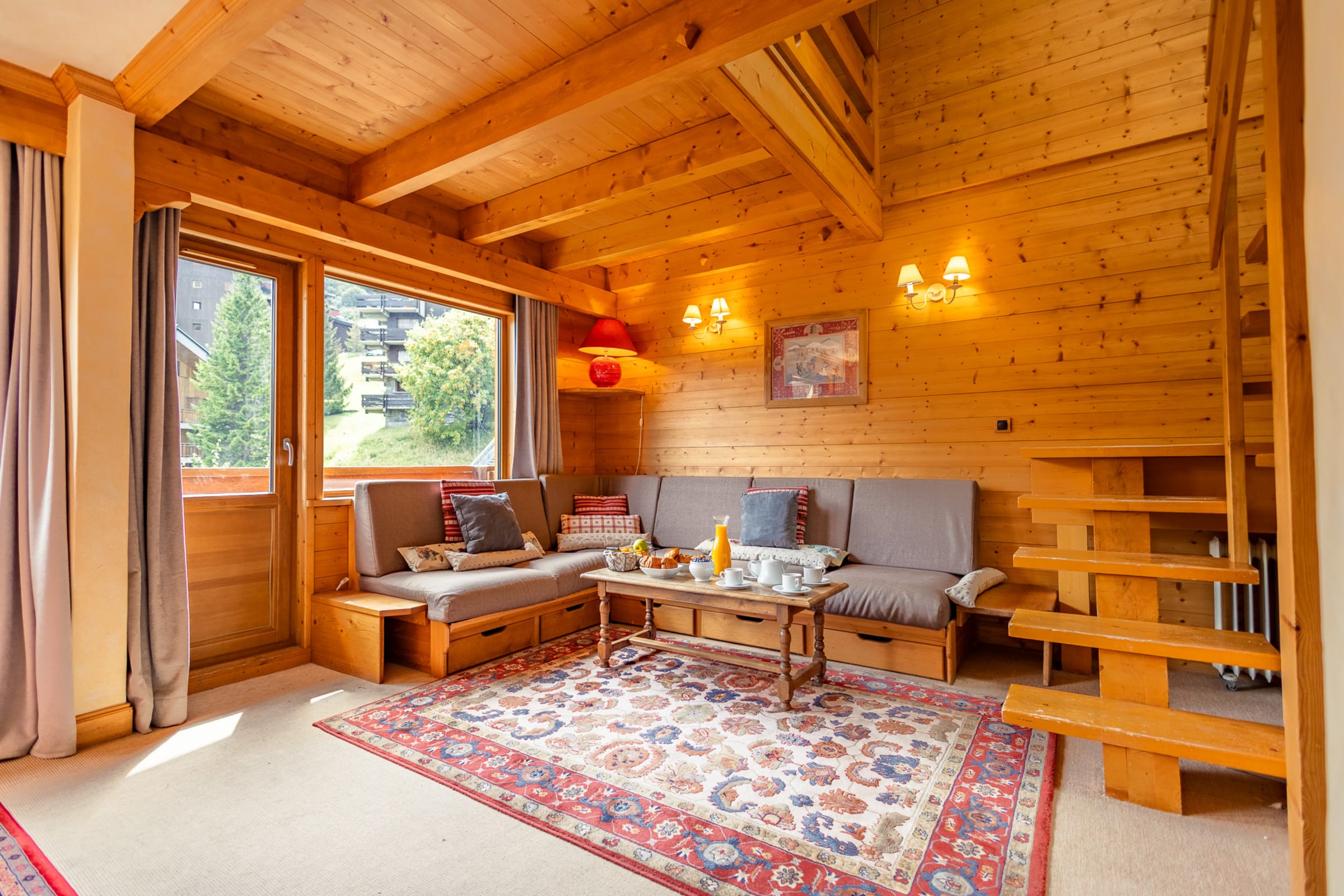 This bright and dual-aspect 91m² duplex is perfect for family or group getaways. With north and south exposures, it enjoys natural light throughout the day and offers breathtaking views of the slopes and surrounding mountains from the living room and balcony.