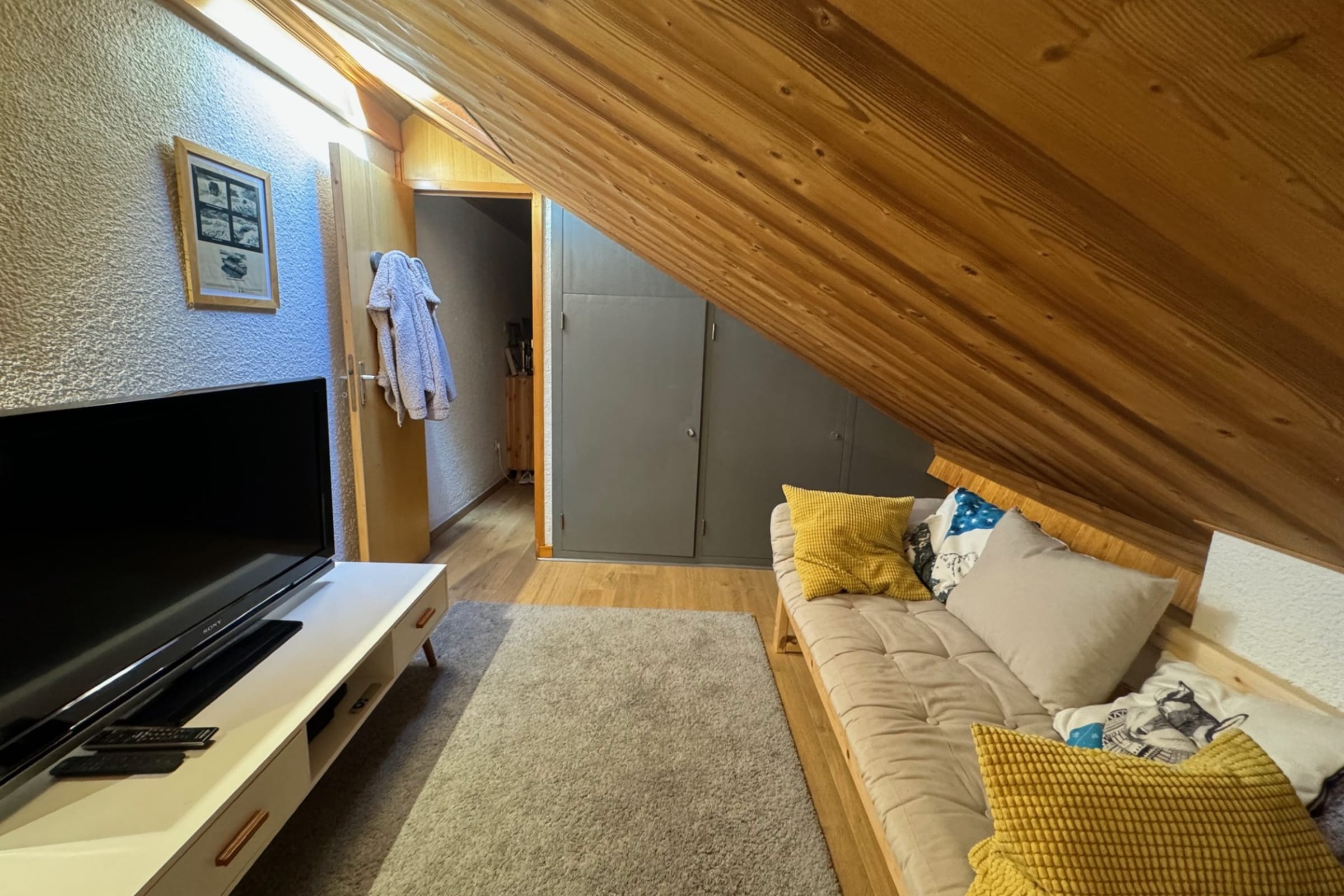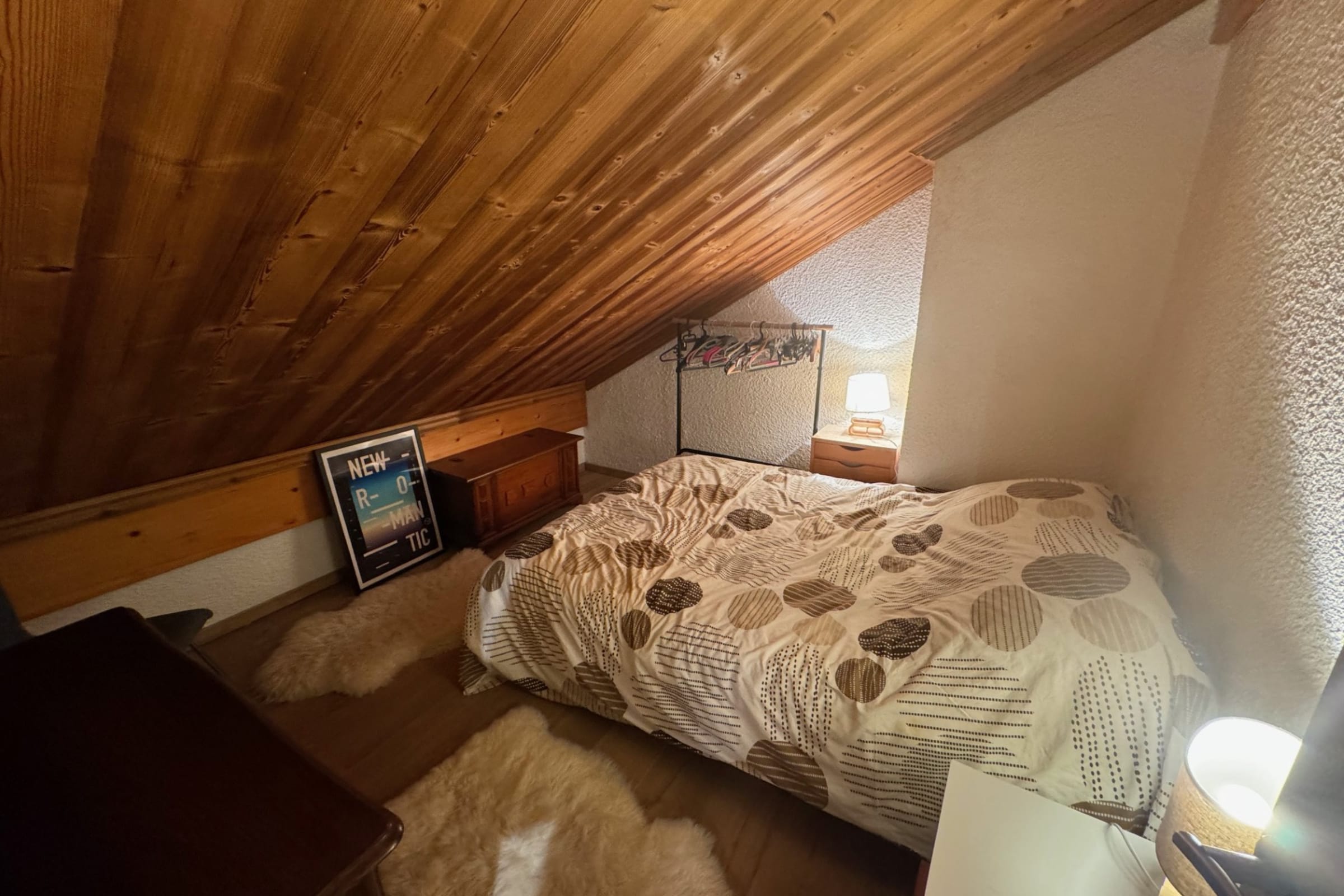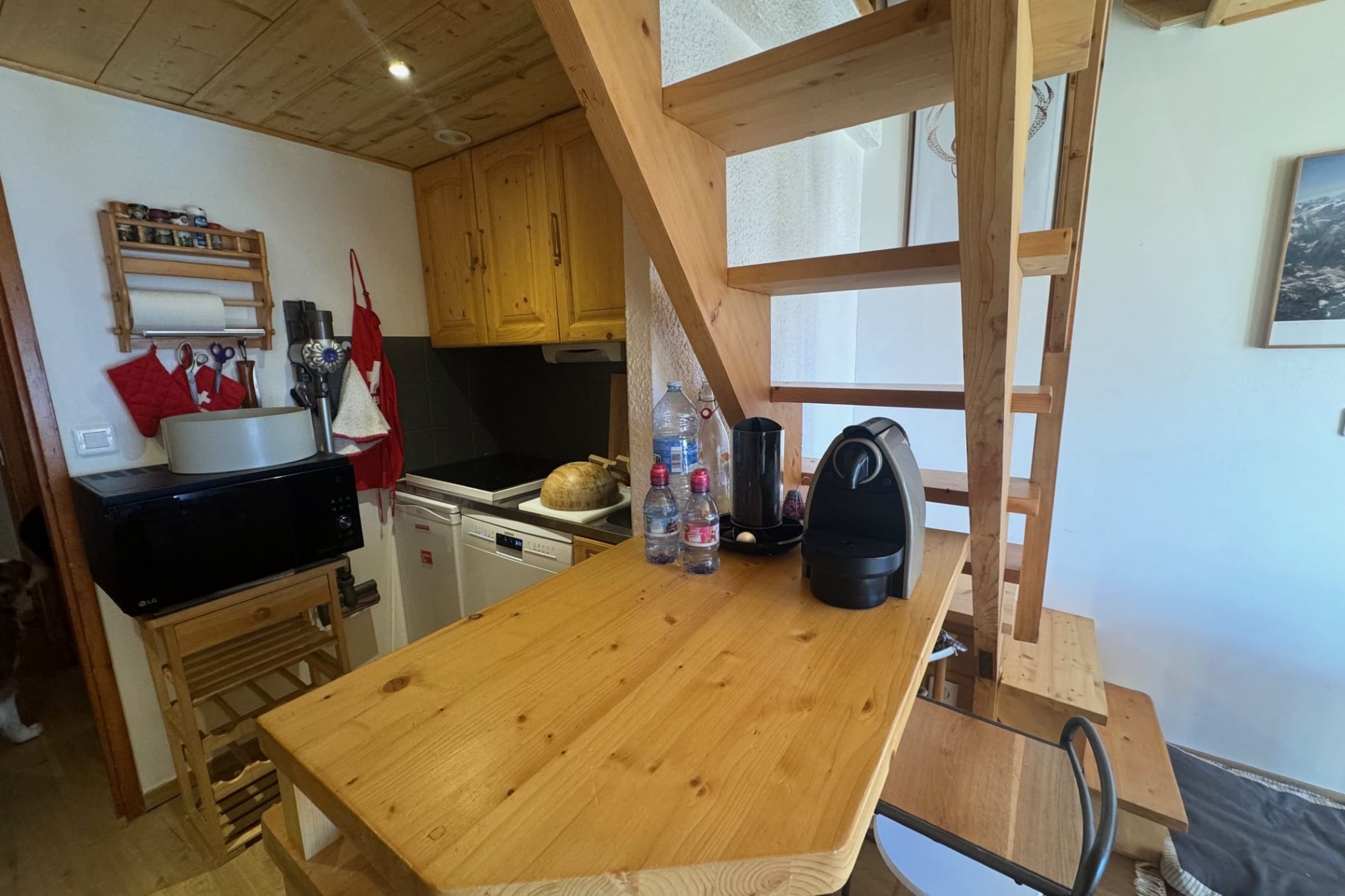 The apartment benefits from excellent natural light and a peaceful alpine atmosphere at 1700 m altitude.