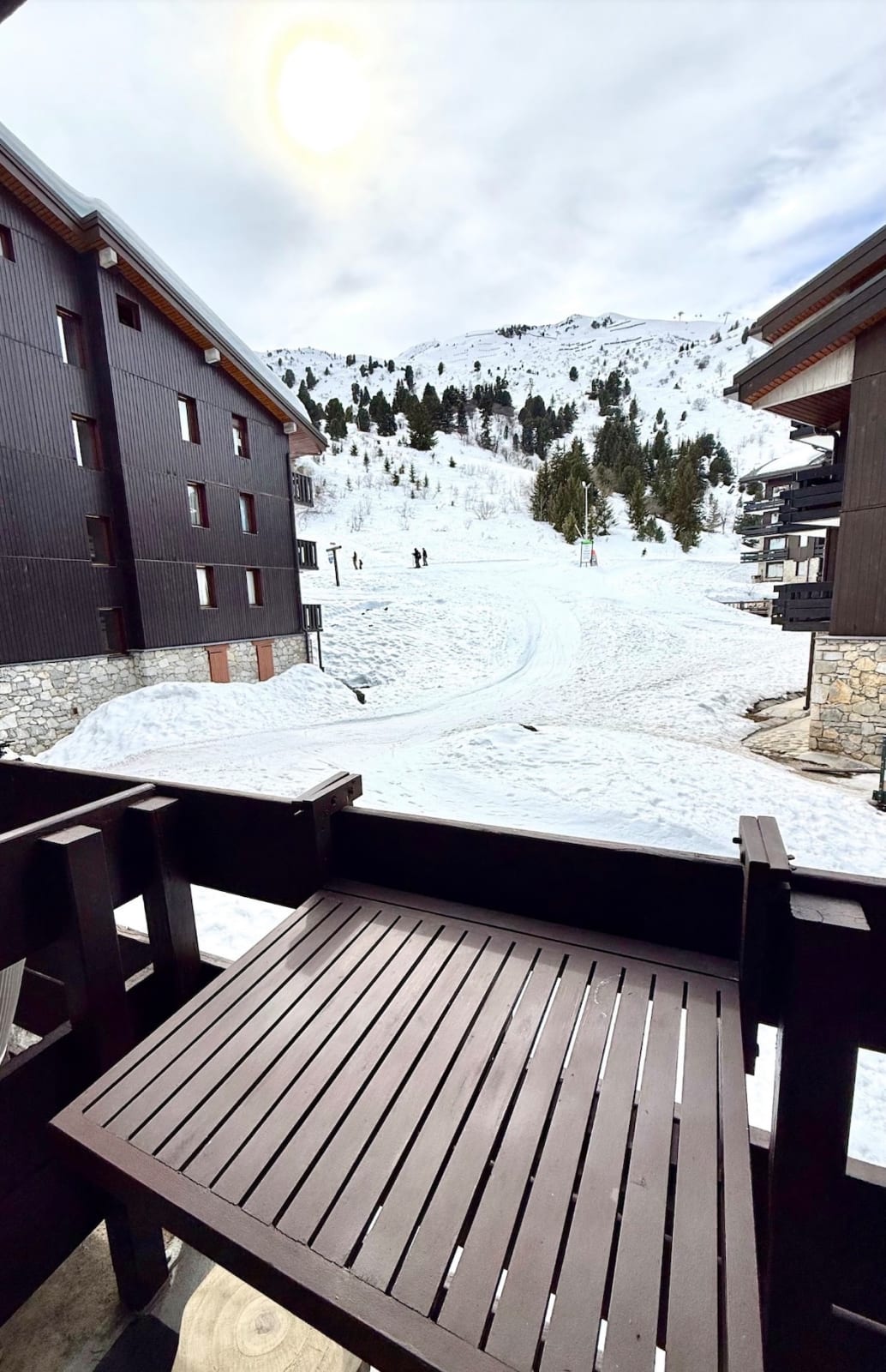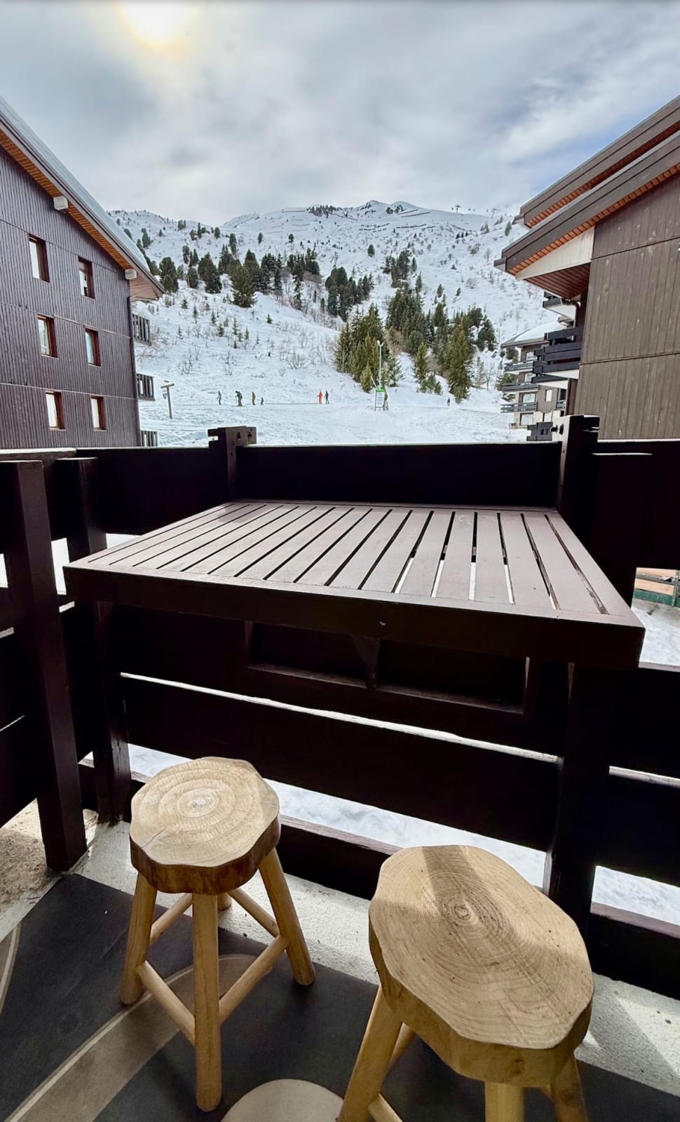 - A balcony with direct views of the slopes