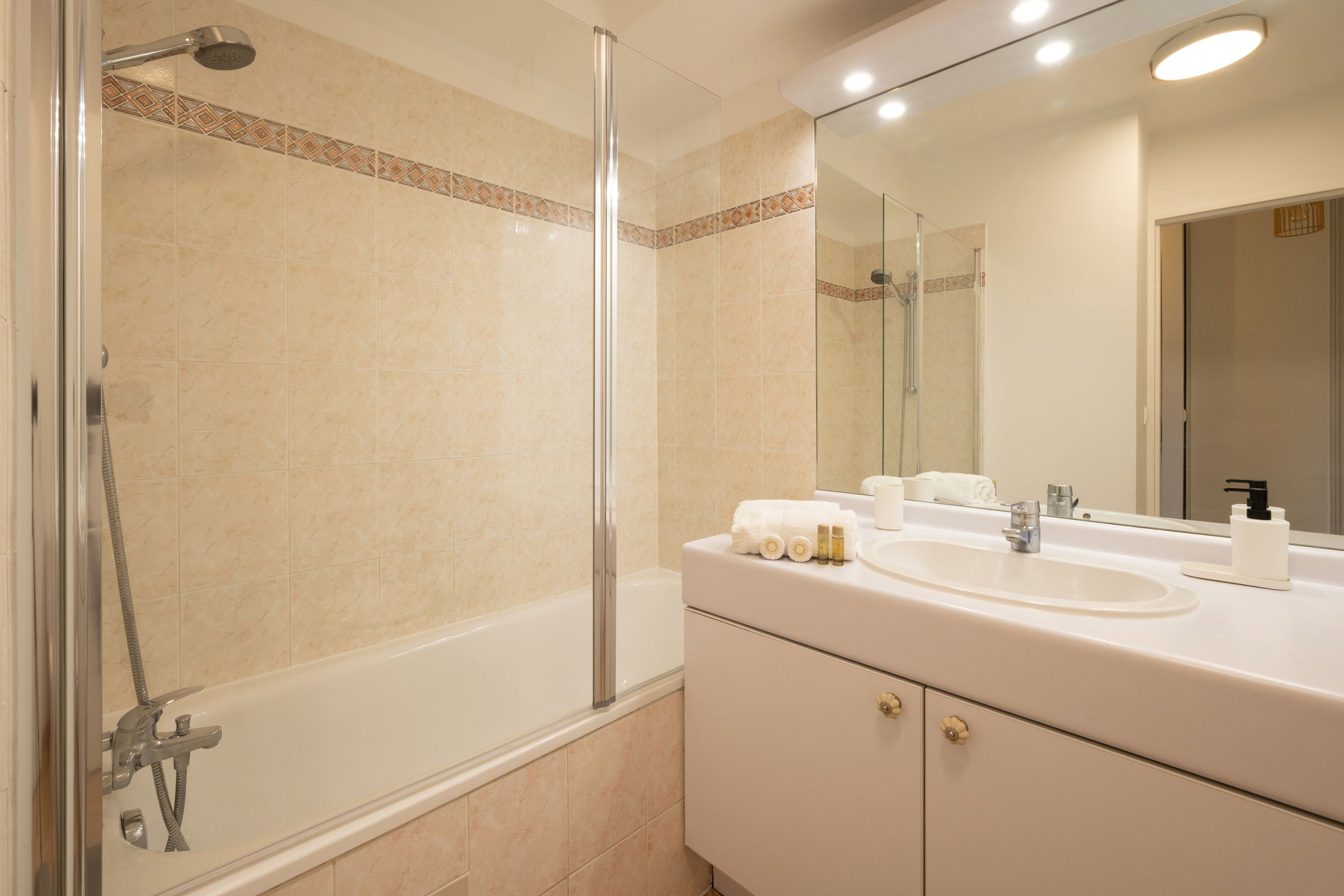 - a fully-equipped kitchen (coffee machine, toaster, kettle, oven, microwave, hob, dishwasher, fridge, freezer),