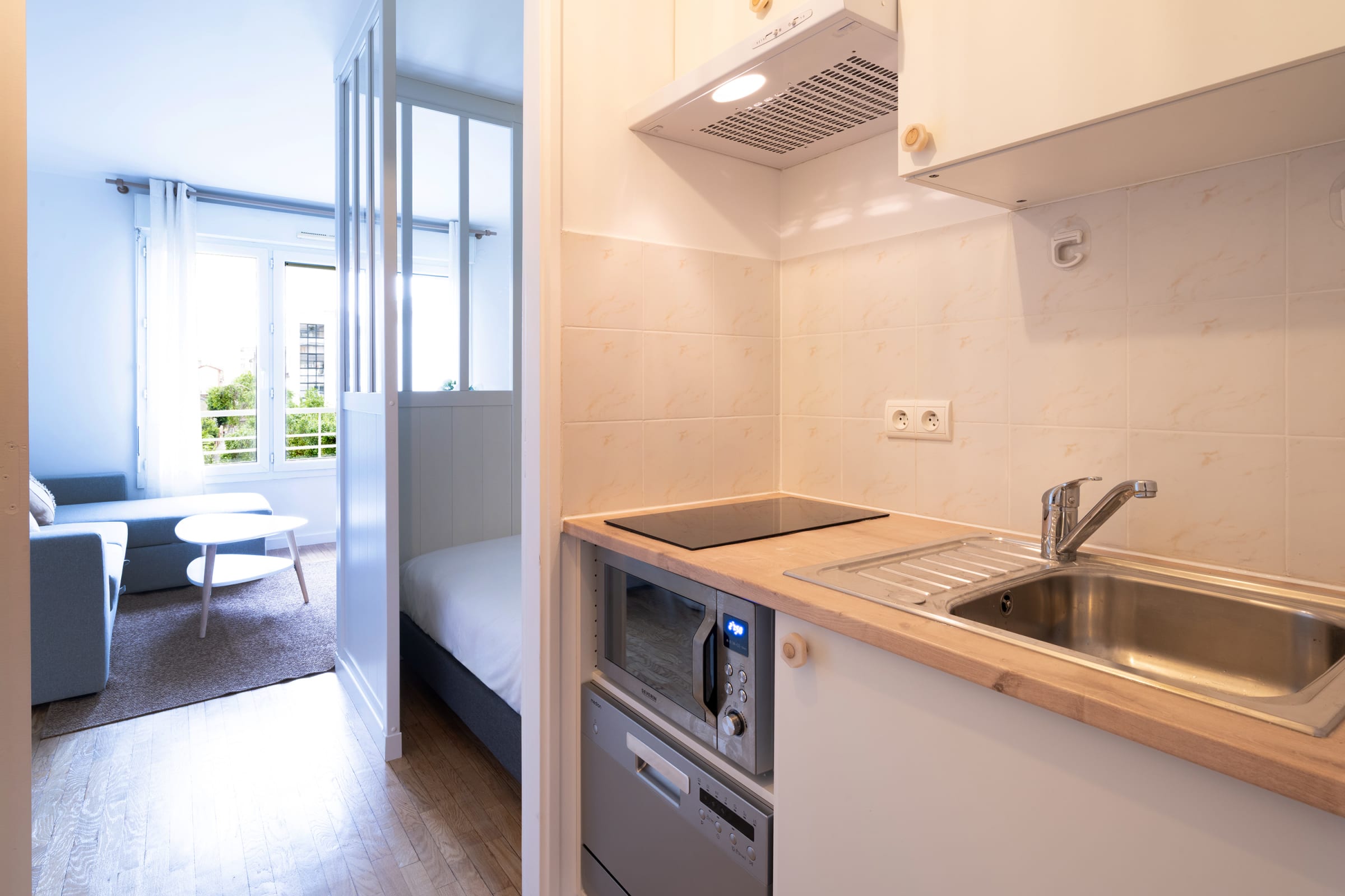 This comfortable 27 m² studio is located on the 3rd floor with elevator of a luxury building. It can comfortably accommodate 2 people and comprises :