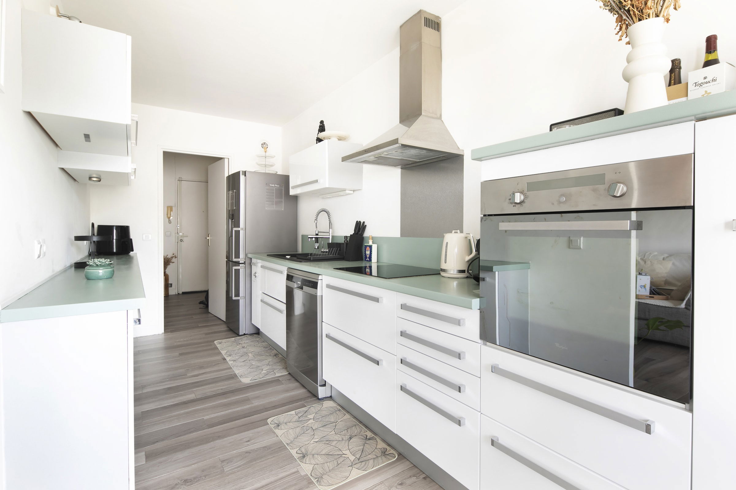 The kitchen is fully equipped and ready for anything , oven, hob, dishwasher, large fridge, coffee machine and everything else you could need. The renovated bathroom with its rainfall shower and Hollywood mirror, along with a separate WC, complete an apartment designed down to the last detail for your comfort.