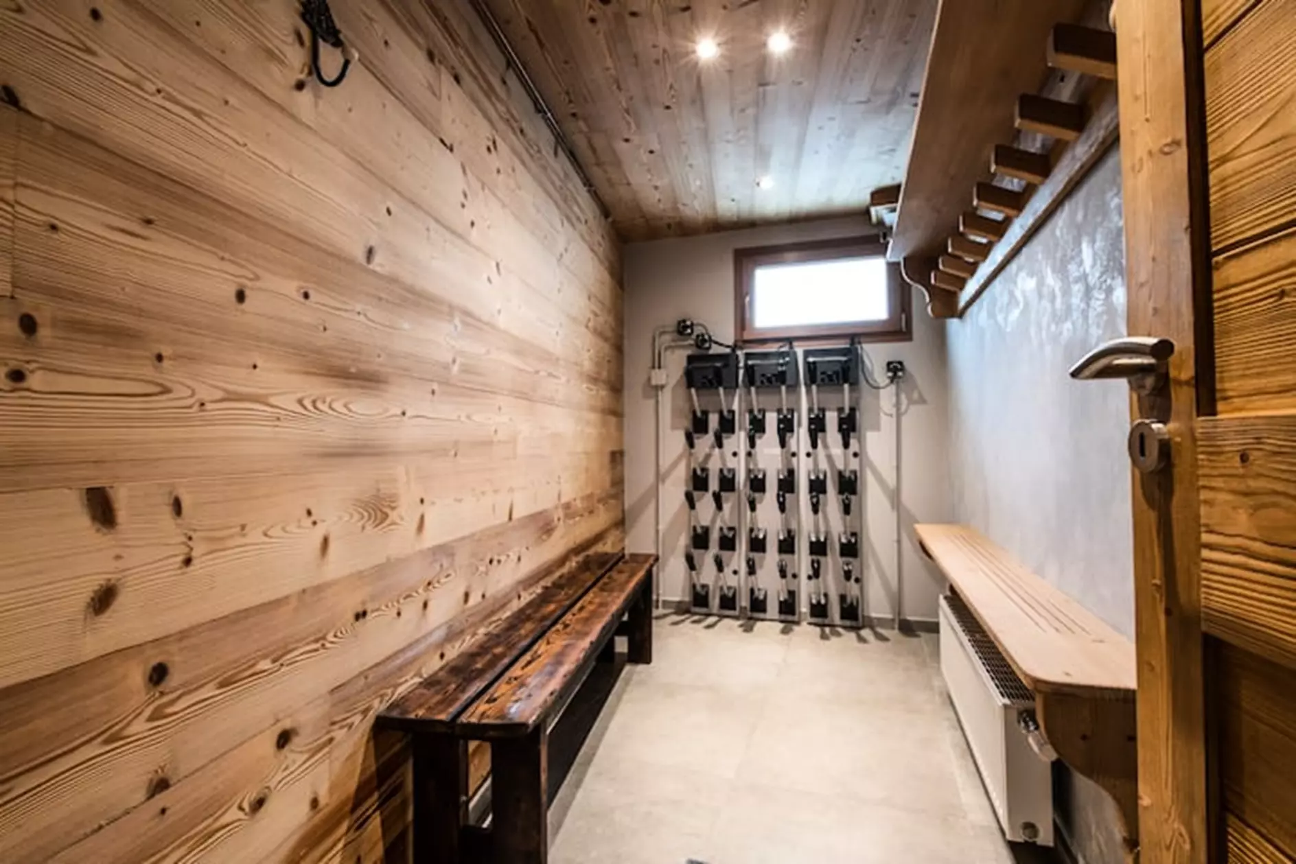 - The ski room with boot dryers