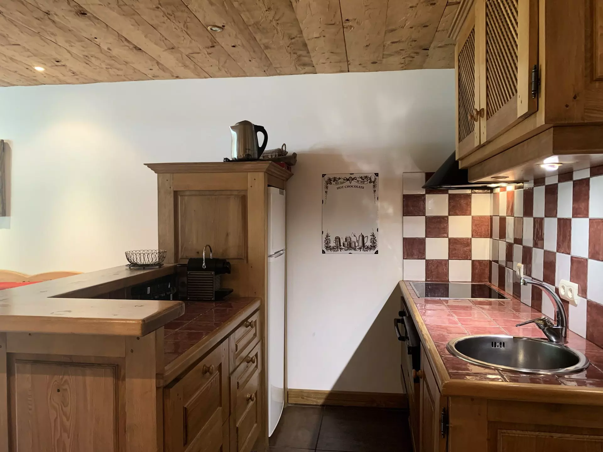 * American kitchen: fridge-freezer, ceramic hob, oven, dishwasher, microwave, Nespresso capsule coffee machine;
