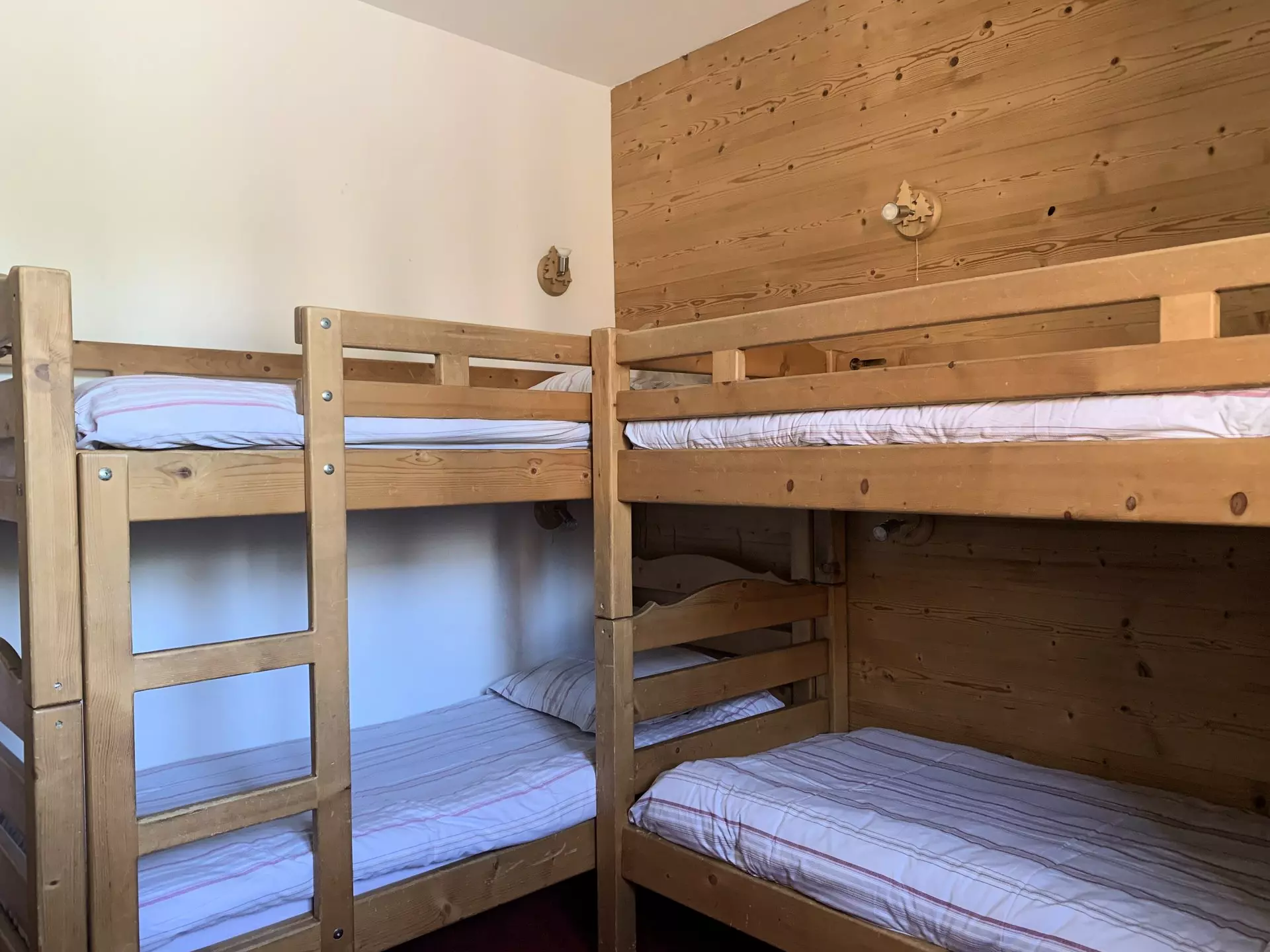 * Bedroom 2: 2 x 2 wooden bunk beds (90cm), HD TV;