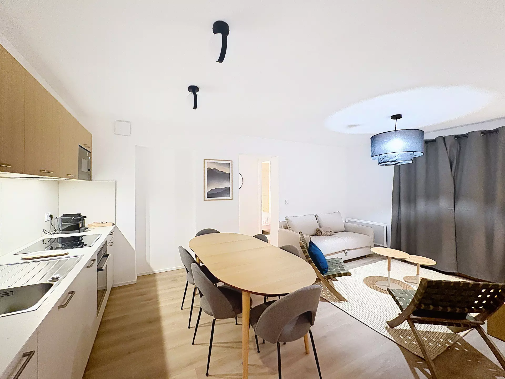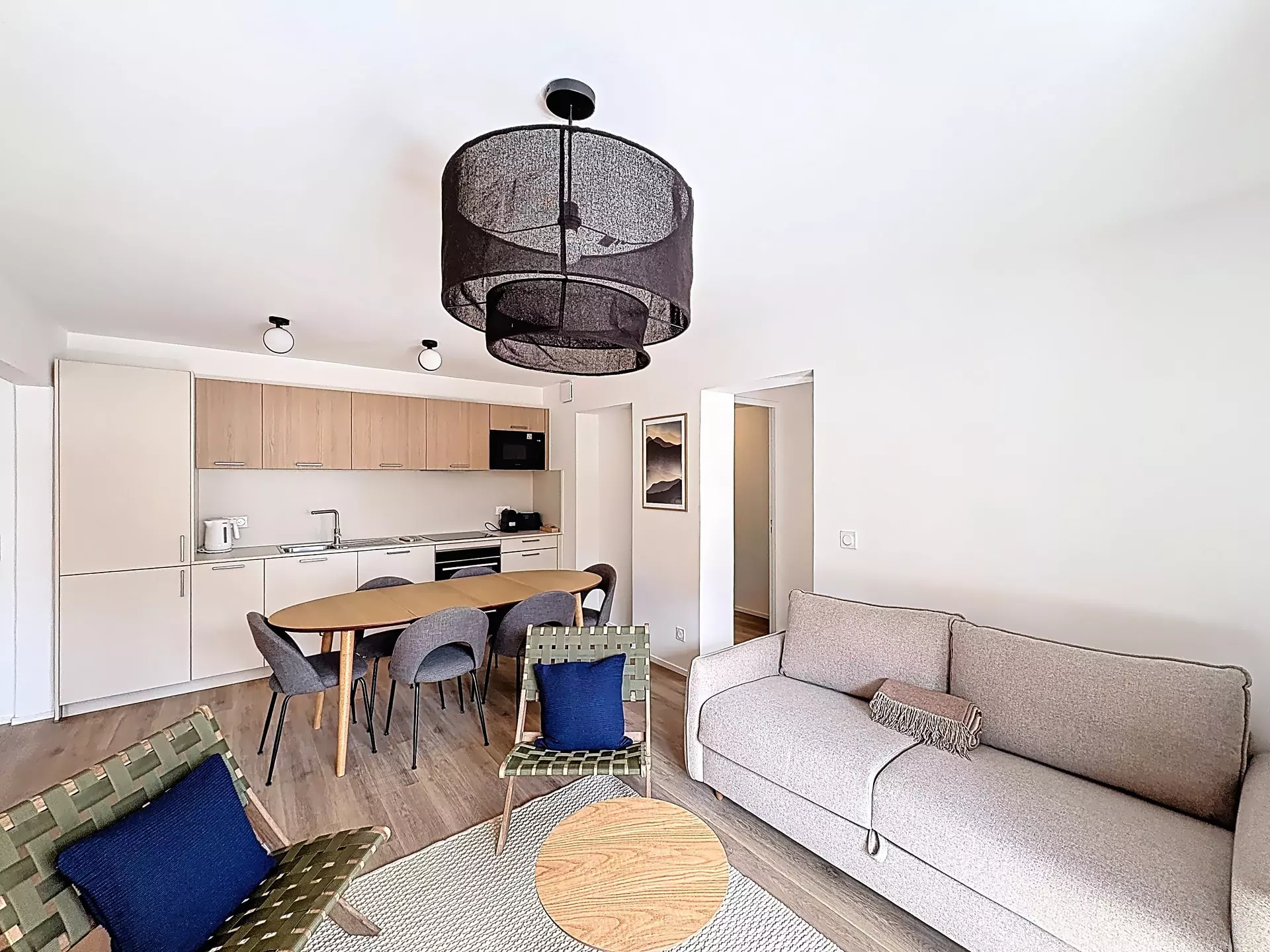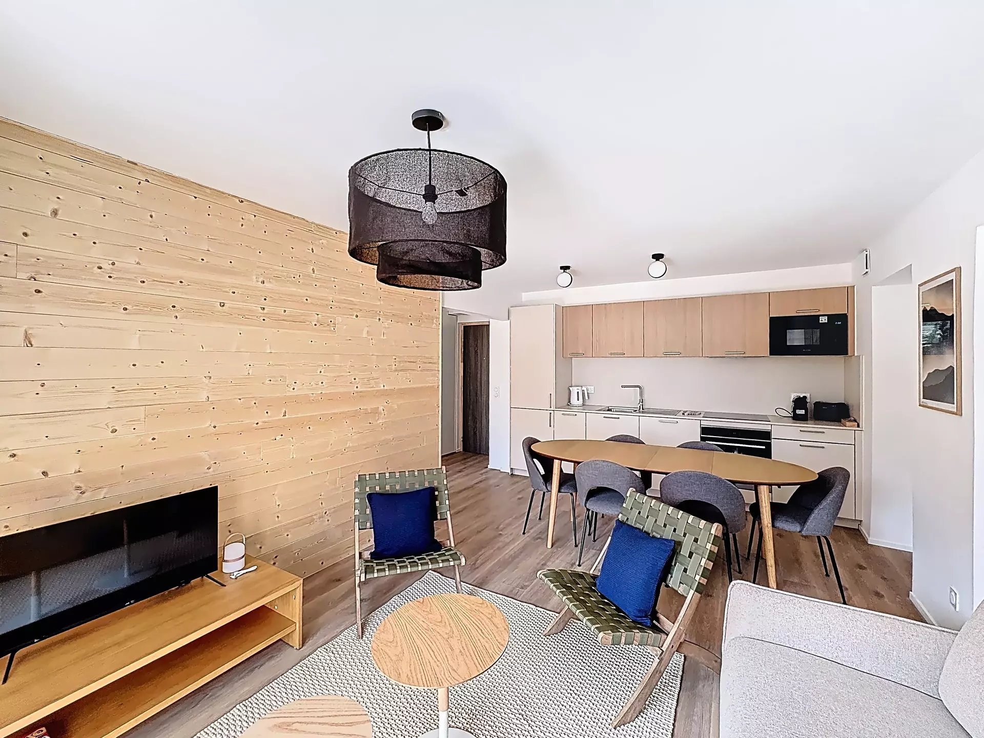 A kitchenette with fridge/freezer, dishwasher, oven, ceramic hob, microwave, Nespresso coffee machine, kettle...