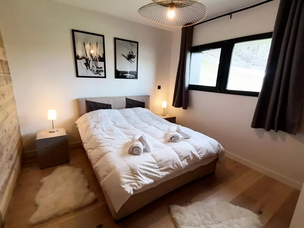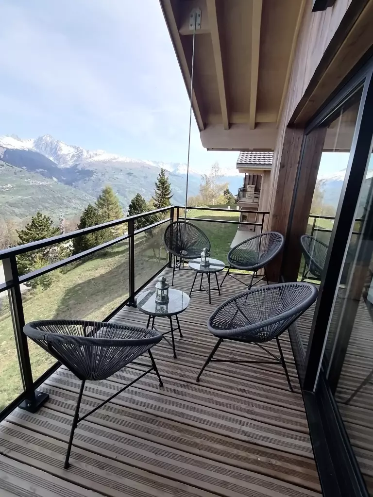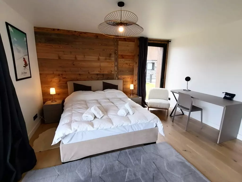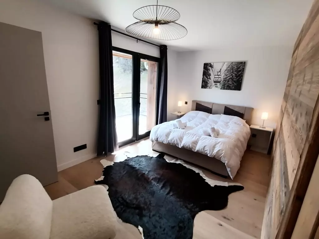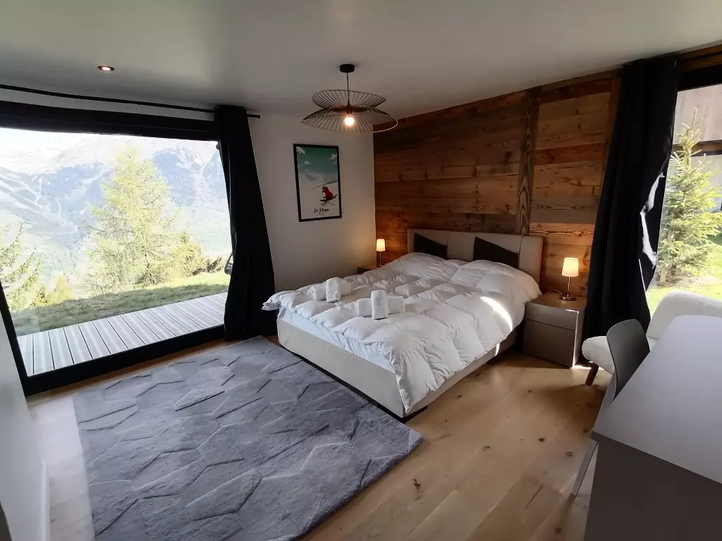 Chalet POLARIS, with 6 bedrooms, can comfortably accommodate 12 people in over 151 m² of generous space, bathed in light thanks to its large bay windows and balconies offering breathtaking views of the valley and Mont Blanc.