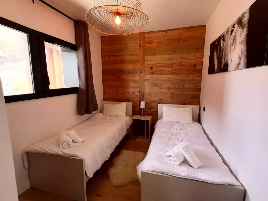 - 1 bedroom with 2 single beds (90cm) and 1 bedroom with a double bed (160cm beds) with their shared shower room and toilet
