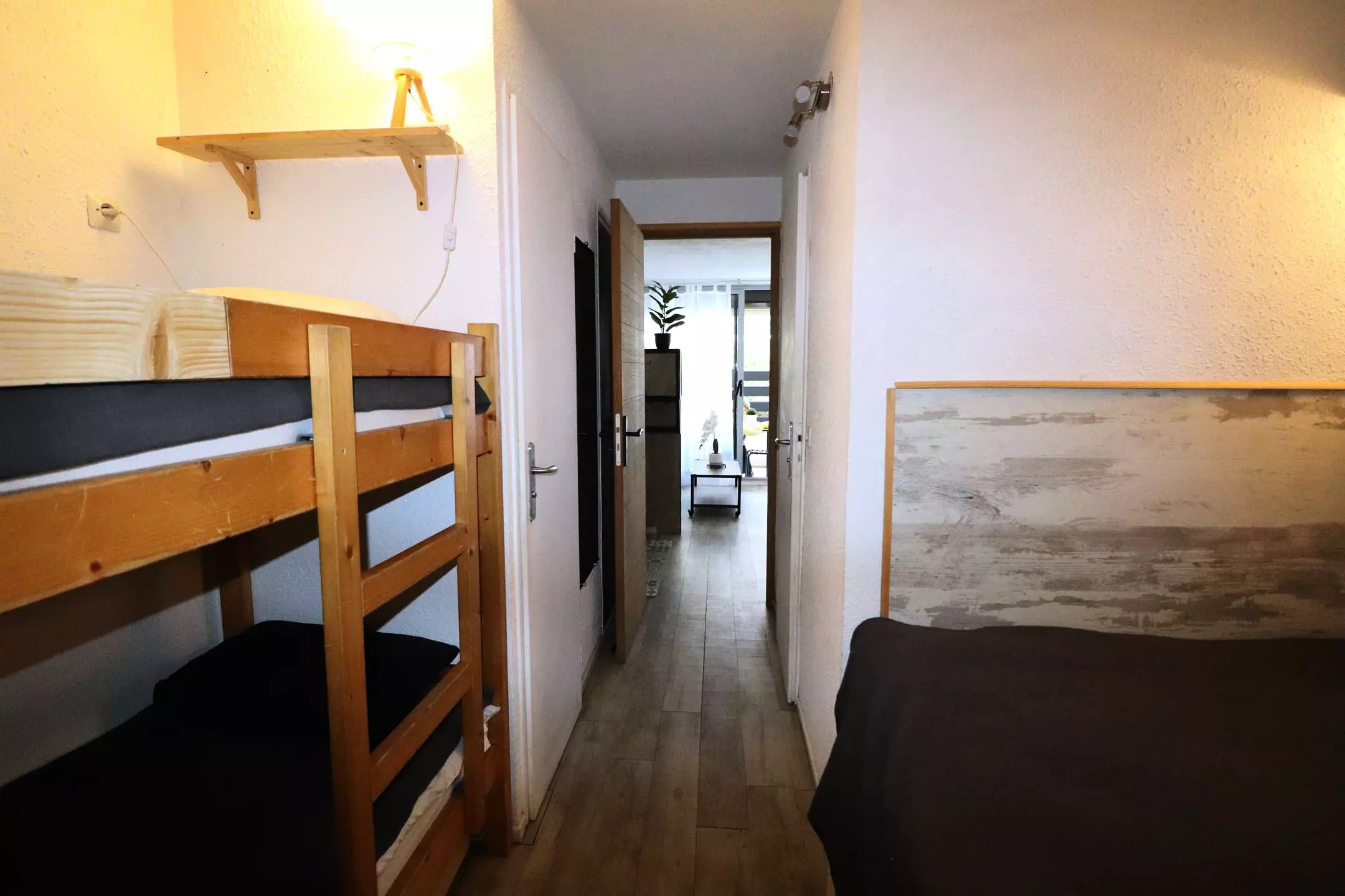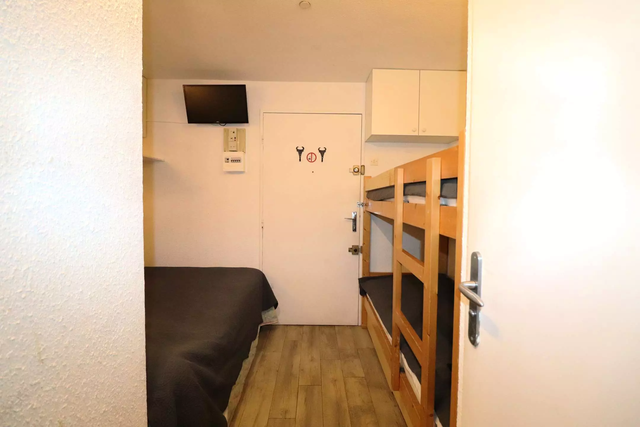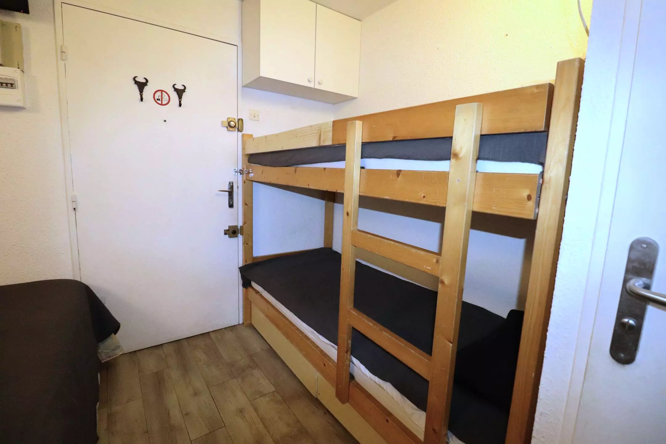 LE LAGON BLEU - In a luxury residence with swimming pools, elevator, ground floor double cabin studio comprising at the entrance a double bed and 2 bunk beds, shower room, separate WC, living room with kitchenette, air conditioning, BZ sofa and storage cupboard, opening onto the terrace.