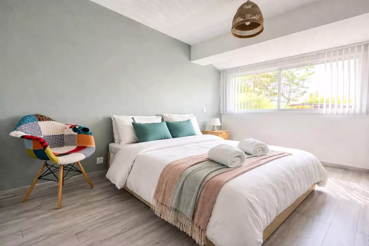 The master bedroom features a 160x190 double bed for optimal comfort.