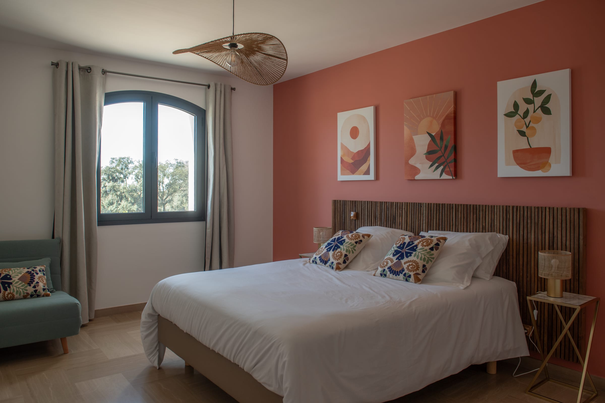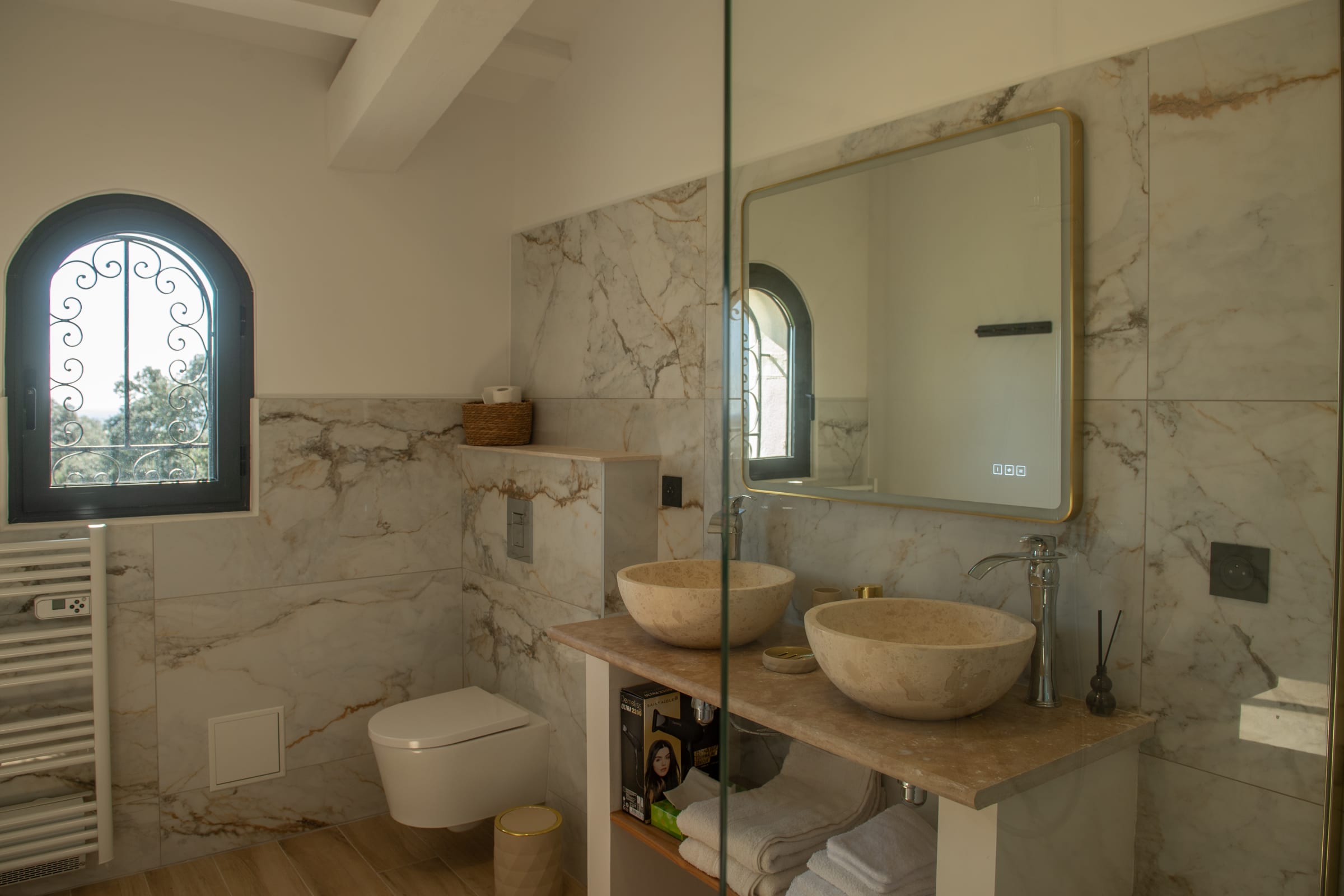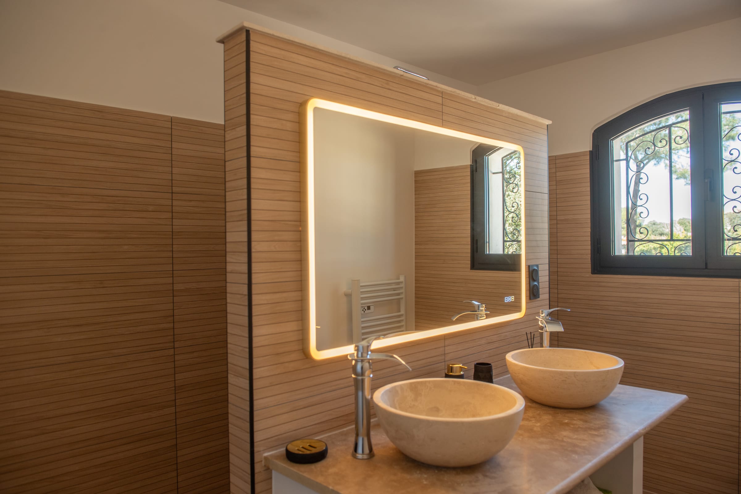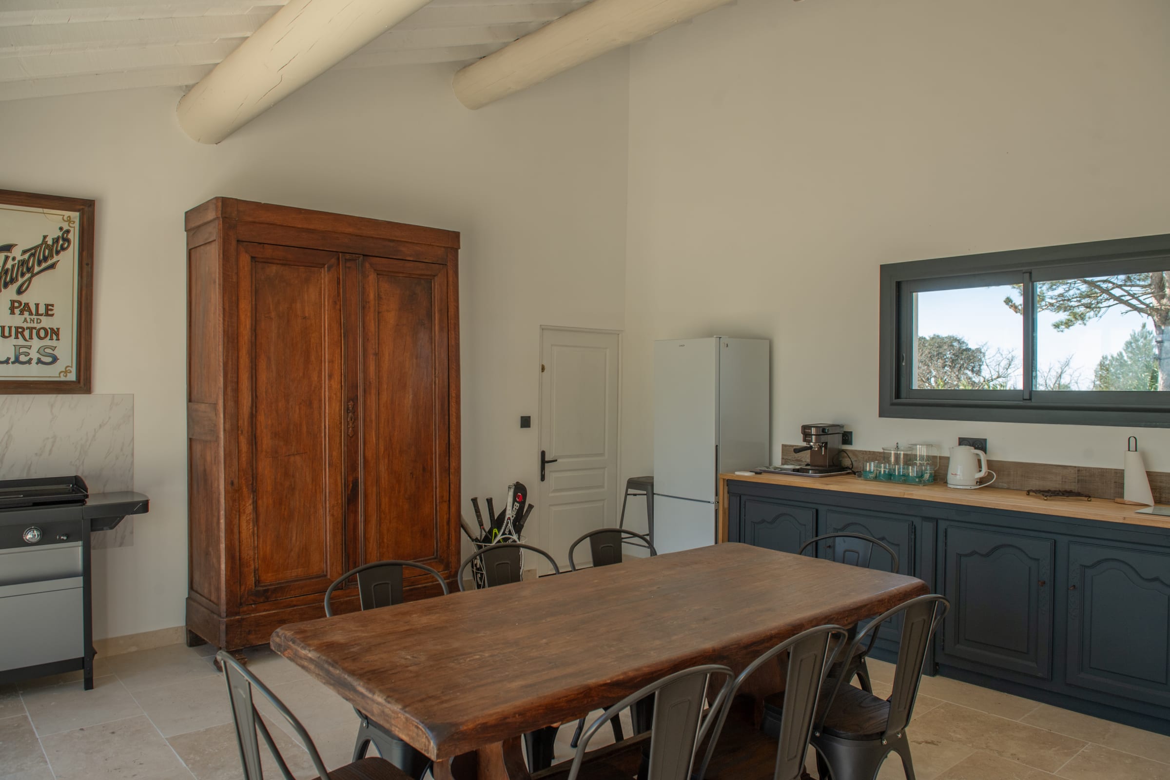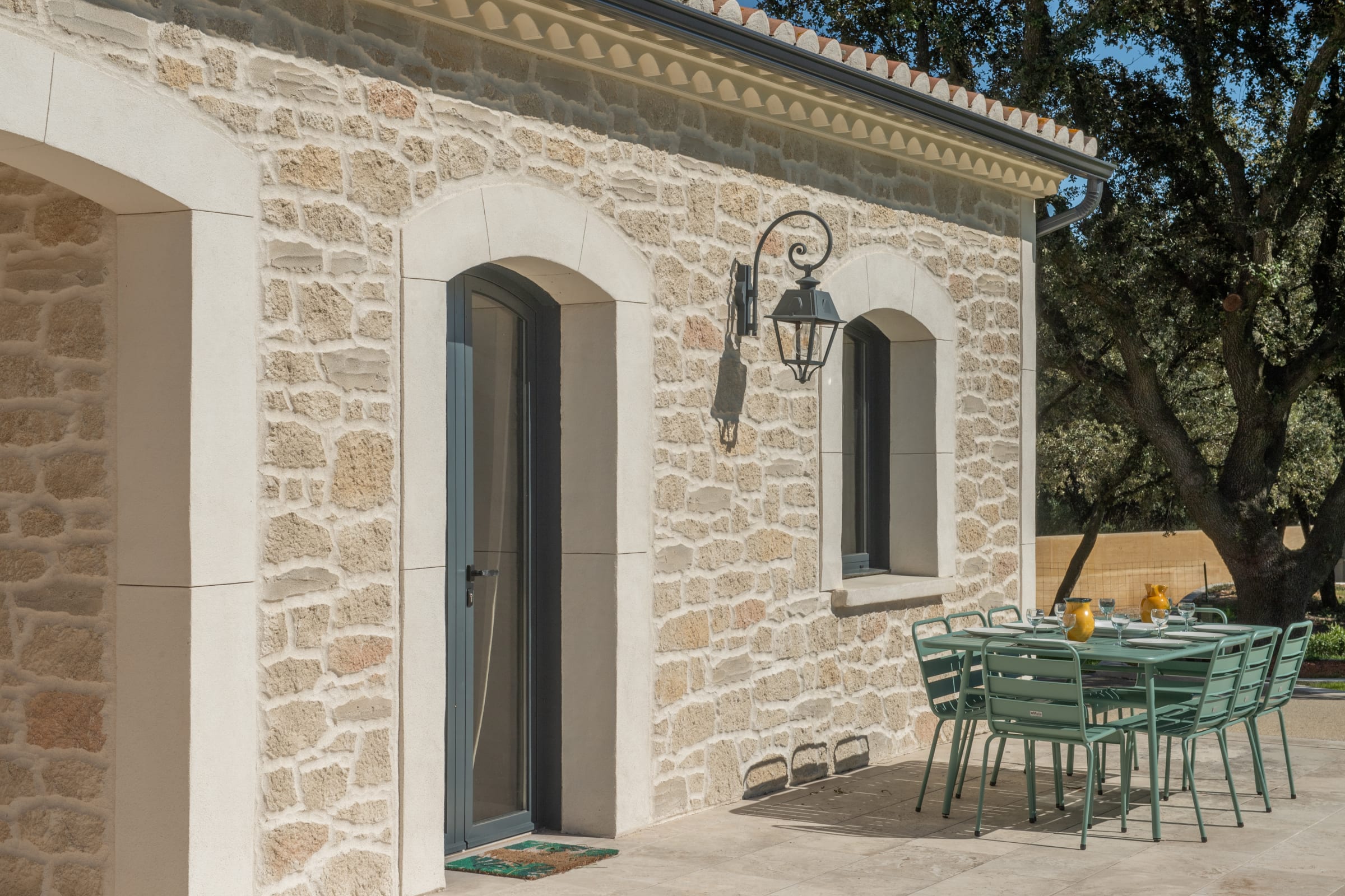 The outdoor spaces are designed as a succession of inviting living areas. Sun loungers are perfectly positioned to enjoy the garden and the pool, while two elegant outdoor lounges create true open-air living spaces, ideal for both convivial gatherings and more intimate moments. Each terrace reveals a different ambiance, allowing you to fully enjoy every moment of the day, from peaceful mornings to long summer evenings.