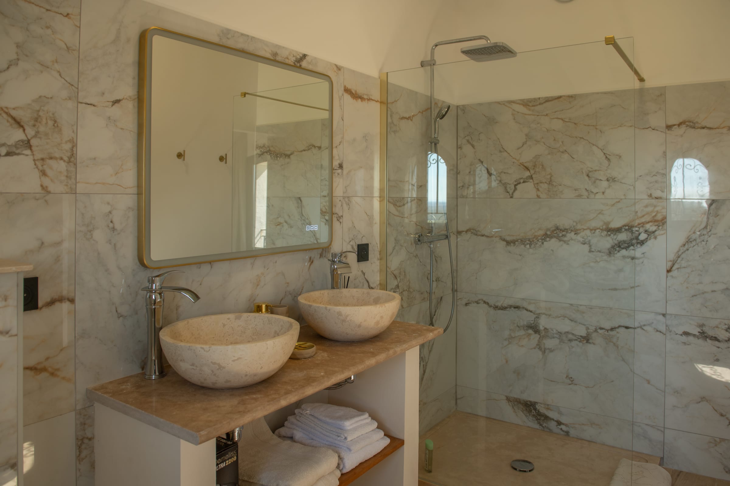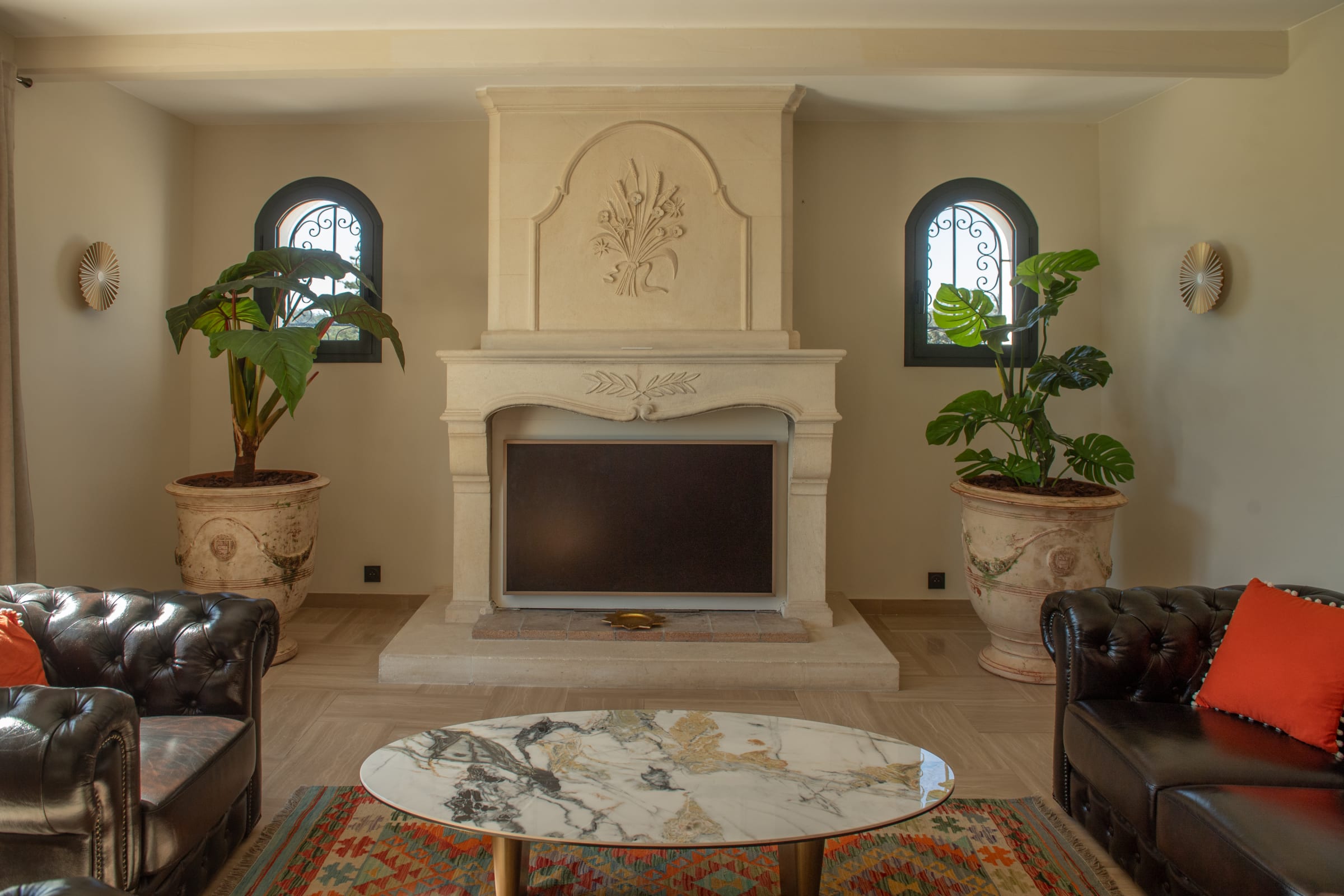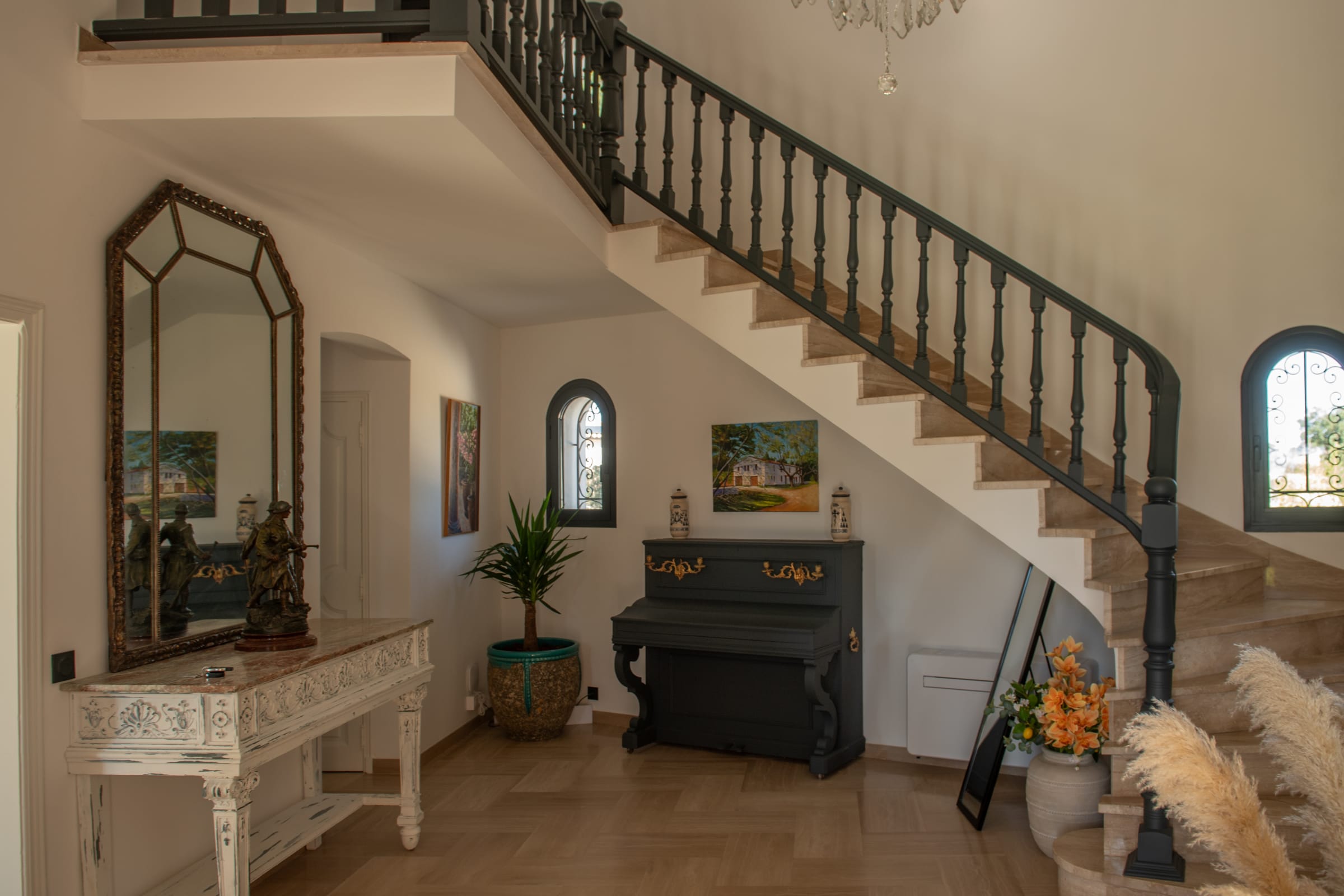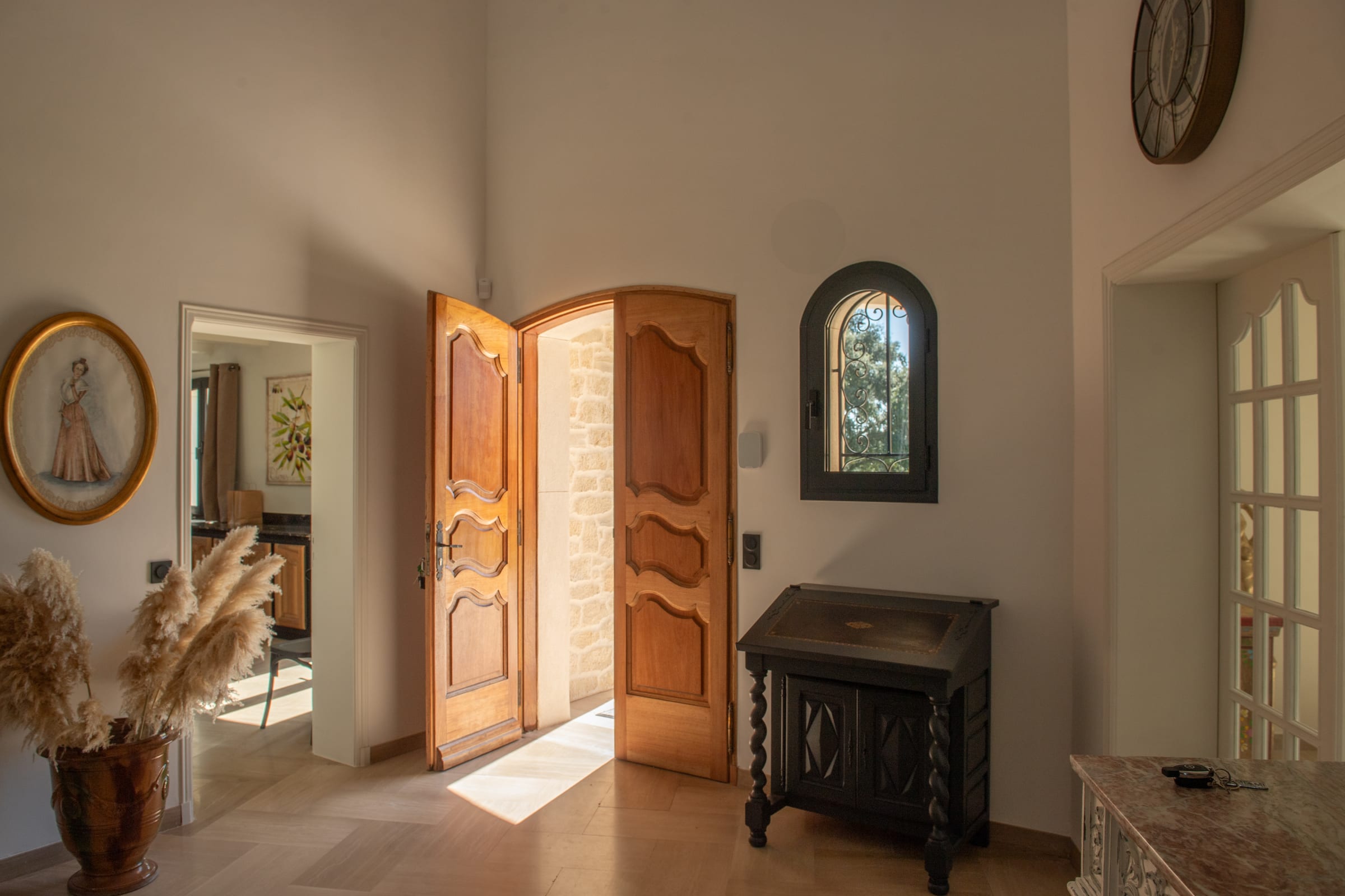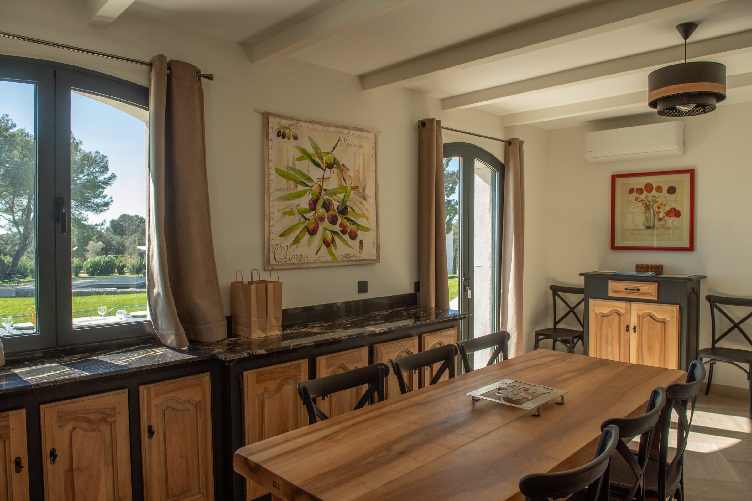 Inside, the farmhouse offers generous volumes and a refined atmosphere where every space has been designed with comfort and elegance in mind. The bright and spacious living areas create a welcoming environment, perfect for sharing moments with family and friends. The carefully curated décor combines the authentic charm of the region with contemporary touches, creating a warm yet sophisticated ambiance.