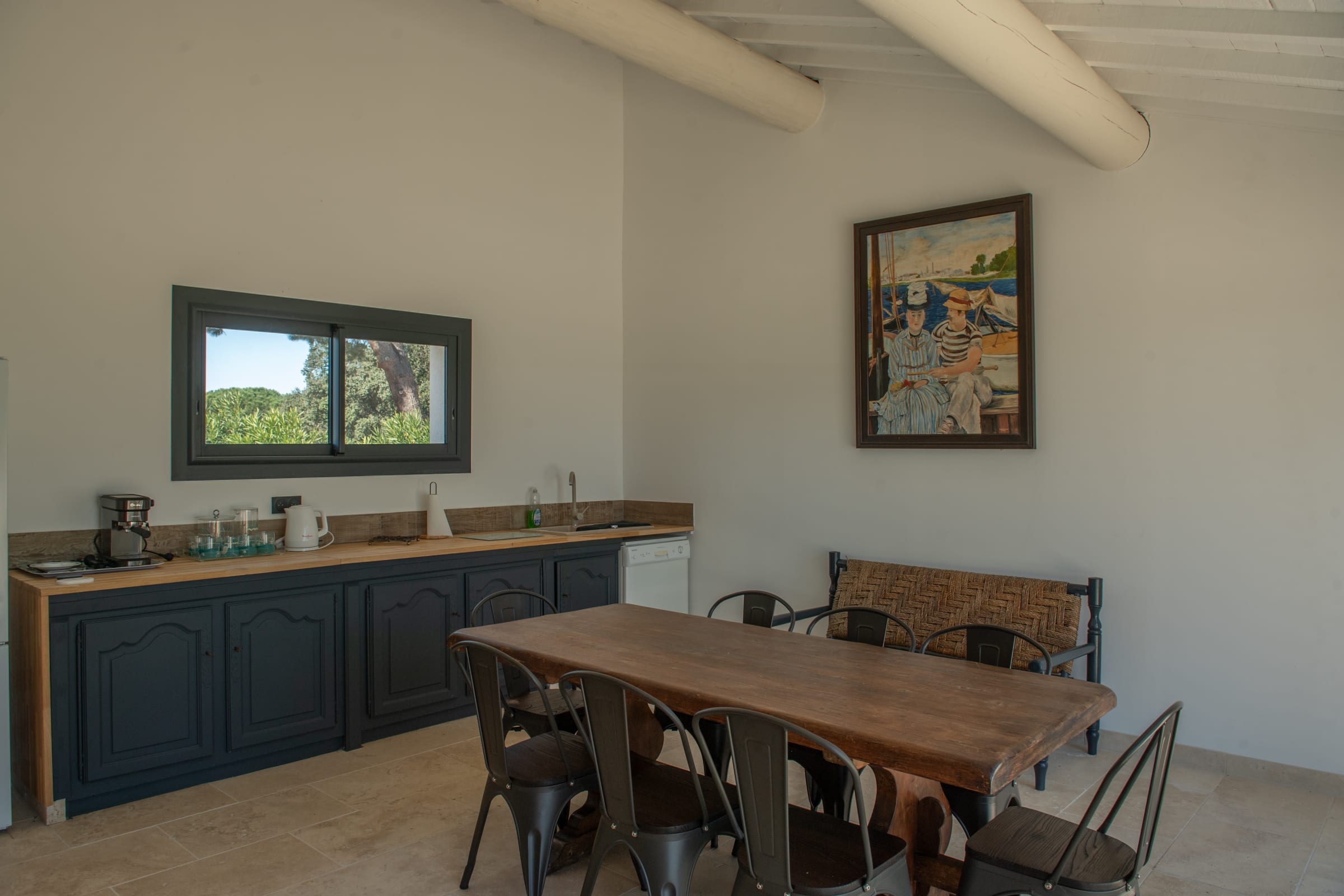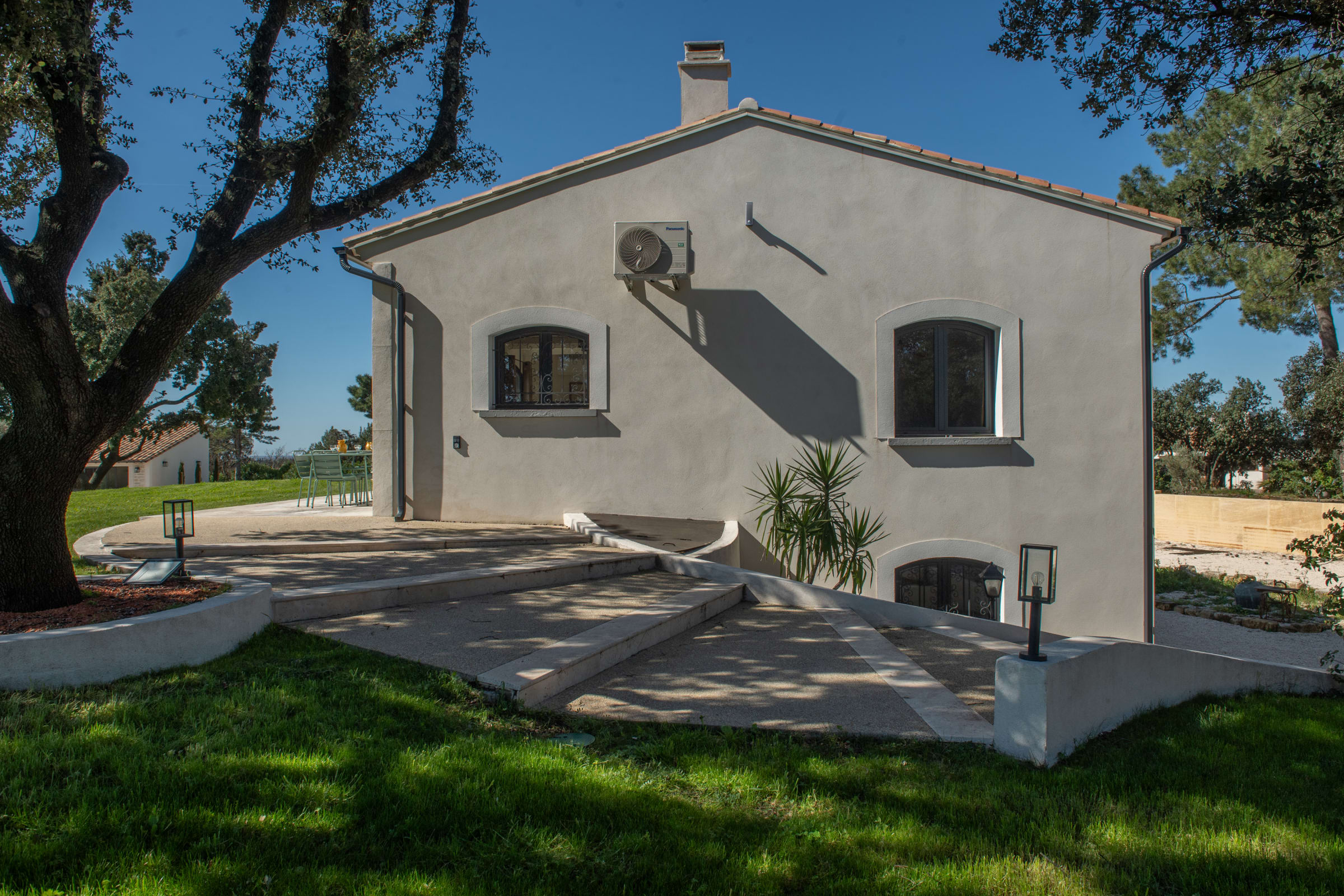 From the moment you arrive, the charm is immediate. The property unfolds like a private estate, set within beautifully landscaped grounds where every detail has been carefully considered. Bathed in natural light, the garden gracefully alternates between sun-drenched areas and shaded corners, creating a serene and refined atmosphere. Under the pine trees, time seems to slow down, offering the perfect setting to unwind with a book or simply enjoy the peaceful surroundings.