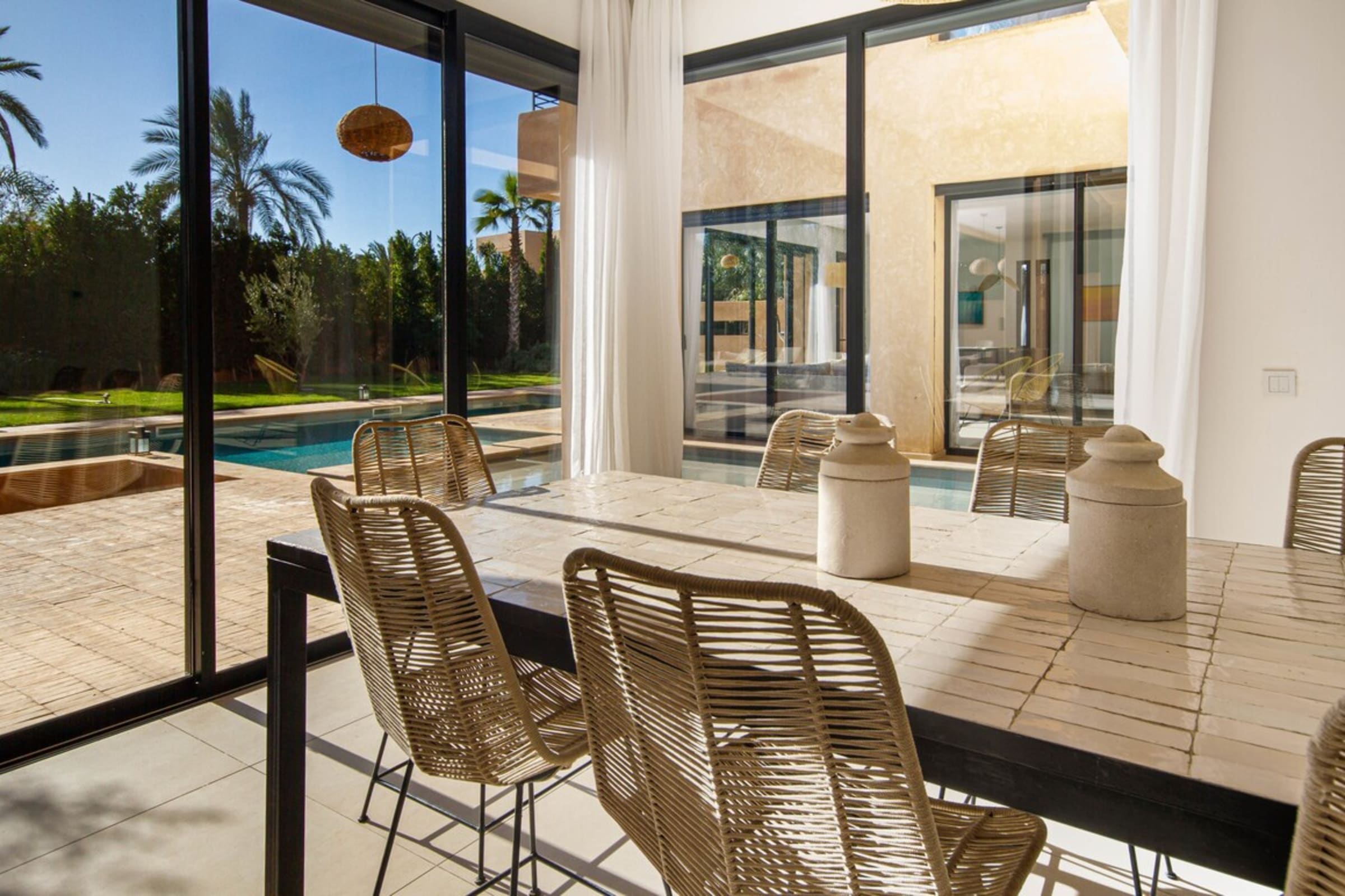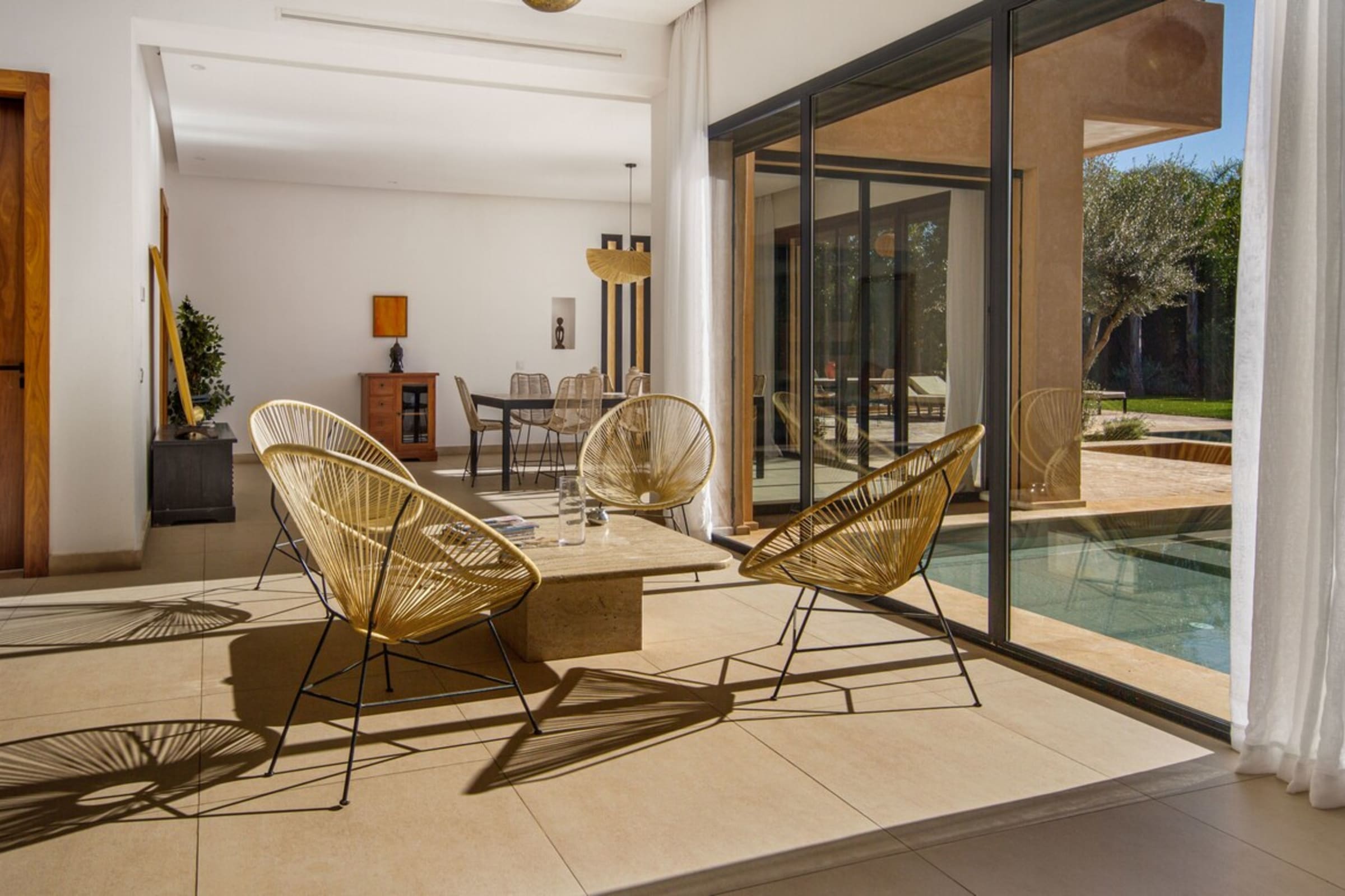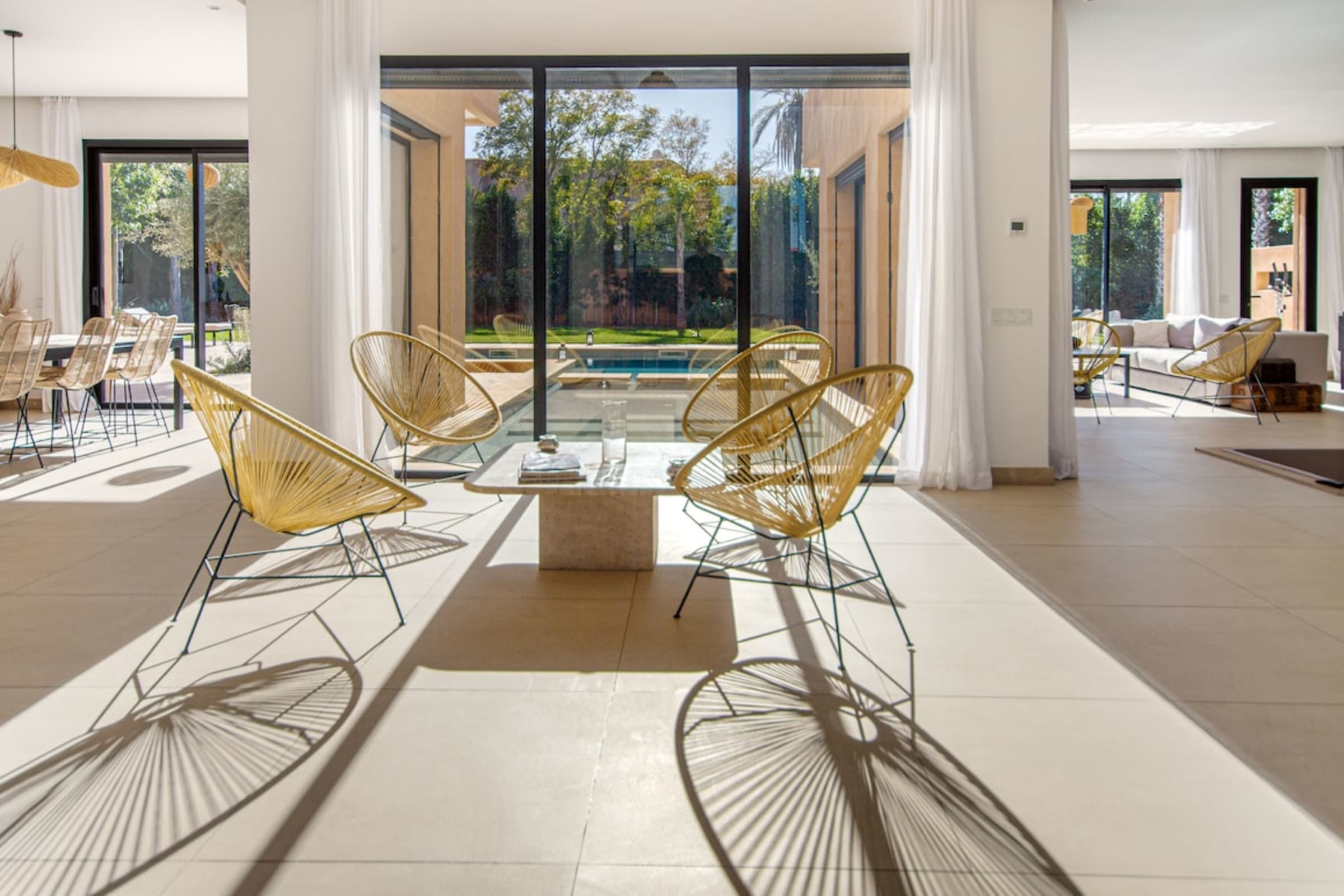 The spacious living areas open seamlessly to the outdoors, creating a warm and refined atmosphere.