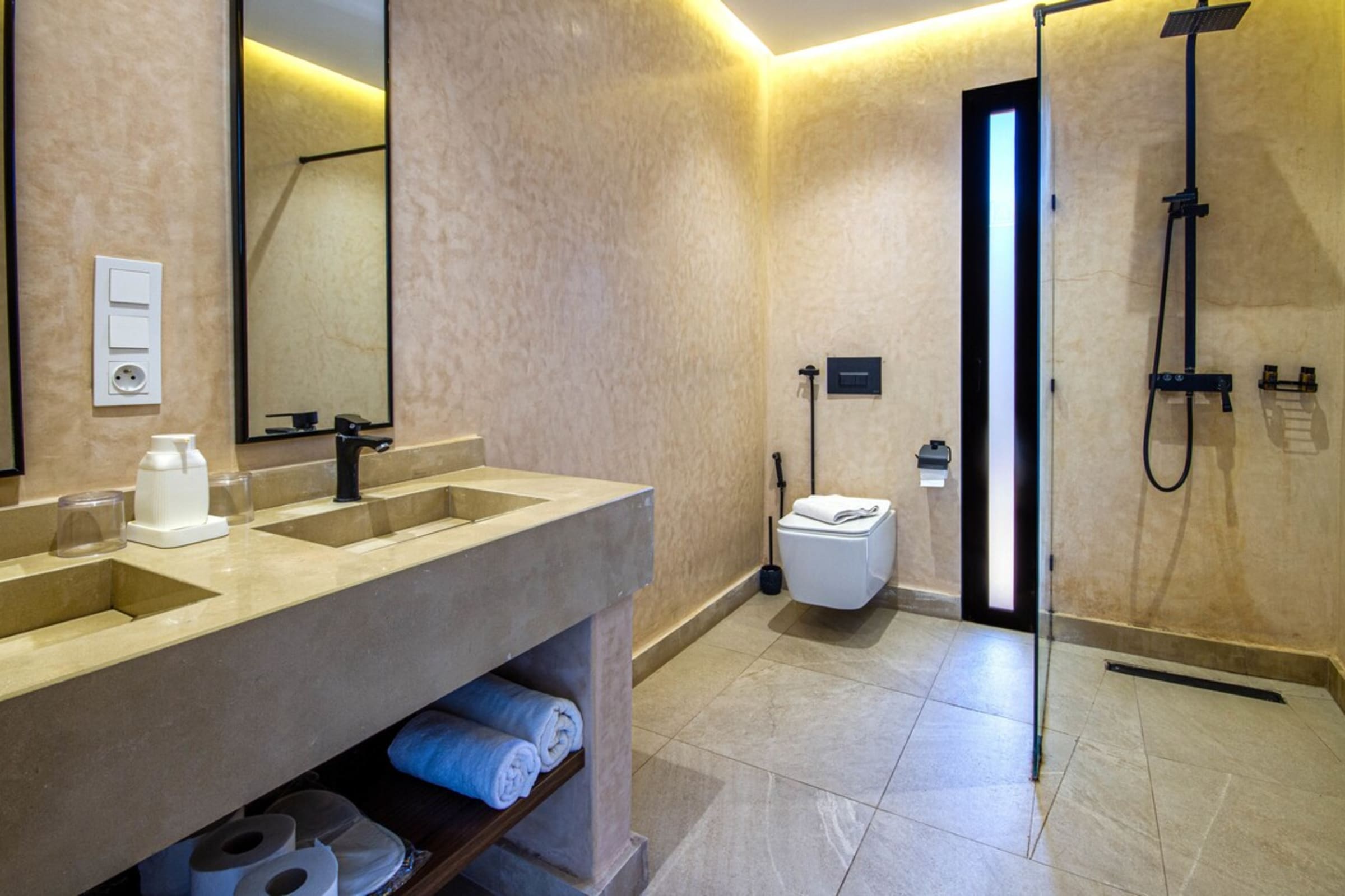 The property features 5 elegant bedrooms, each with its own bathroom, offering privacy and comfort comparable to a luxury hotel.