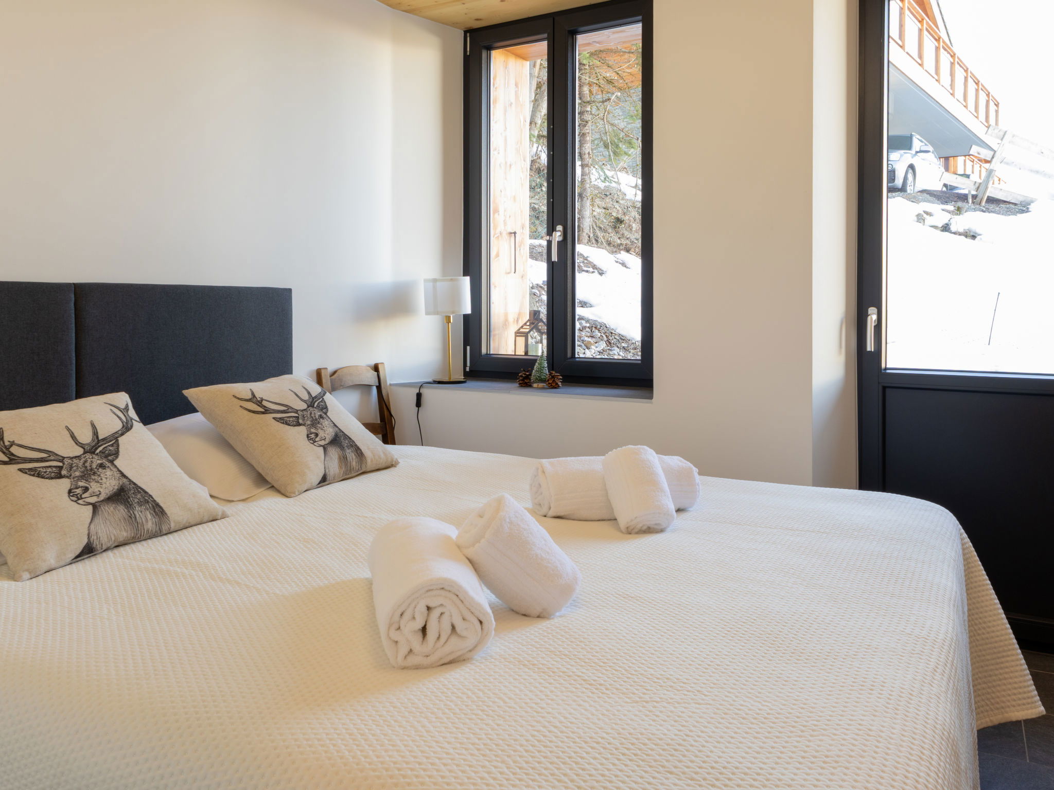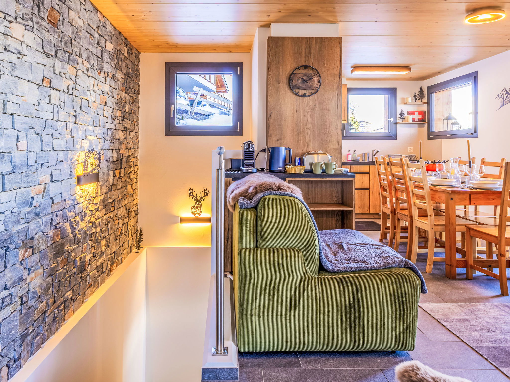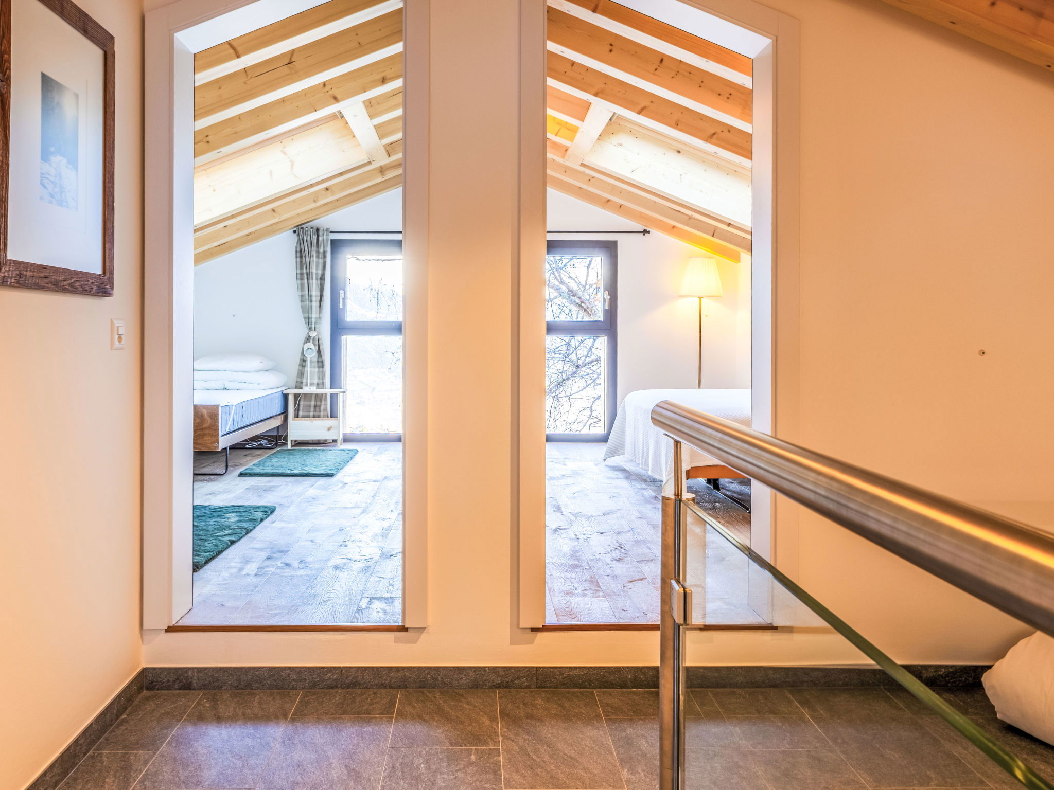 "Byzance", 6-room chalet 150 m2 on 3 levels. Fully renovated in 2025, comfortable and beautiful furnishings: on the lower ground floor: 1 room with 1 sofabed (140 cm, length 200 cm). Exit to the garden. Shower/WC. Upper floor: living/dining room with Scandinavian wood stove and satellite TV. Exit to the balcony, north facing position. Office. 1 room with 1 double bed (160 cm, length 200 cm). Open kitchen (oven, dishwasher, 4 induction hot plates, toaster, kettle, microwave, electric coffee machine, Capsules for coffee machine (Nespresso), raclette grill, fondue Set (cheese)). Exit to the terrace, west facing position. Shower/WC. 2nd upper floor: 1 room with 1 french bed (180 cm, length 200 cm). 1 room with 2 beds (90 cm, length 200 cm). Shower/WC. Underfloor heating. Balcony, terrace, garden. Very beautiful view of the mountains. Facilities: washing machine, dryer, hair dryer. Internet (WiFi, free). Parking (2 cars). Please note: non-smokers only. Smoke alarm.