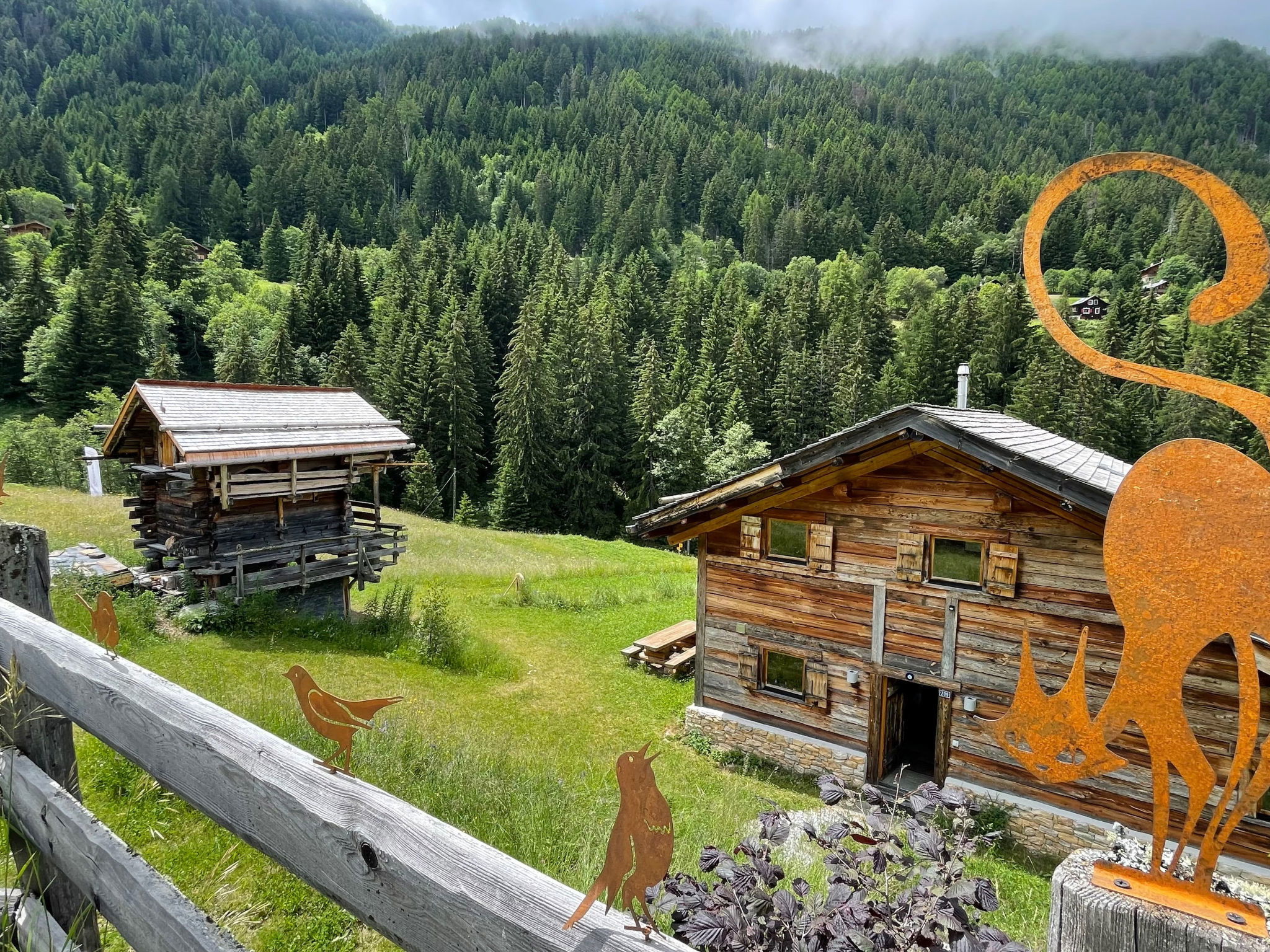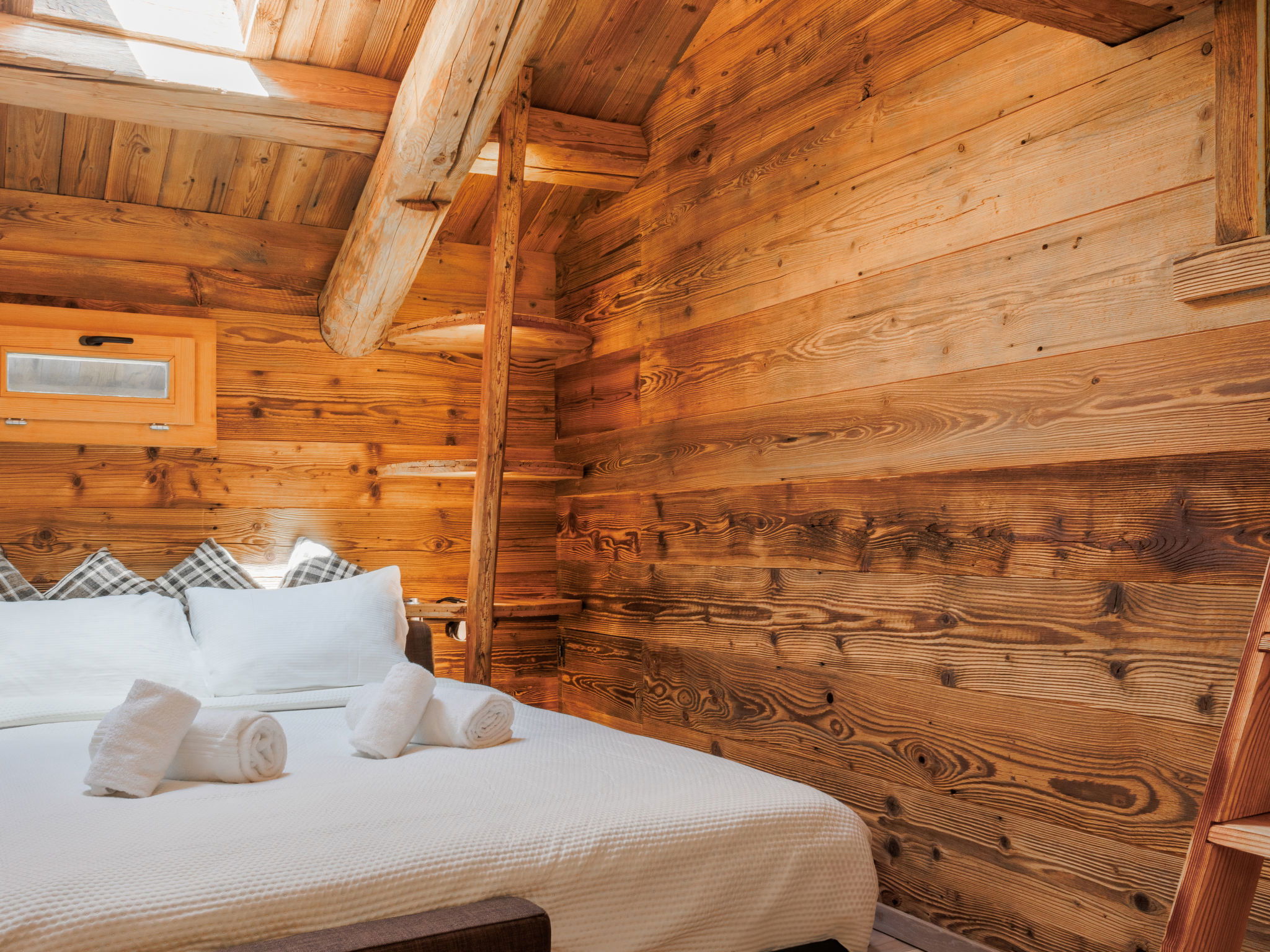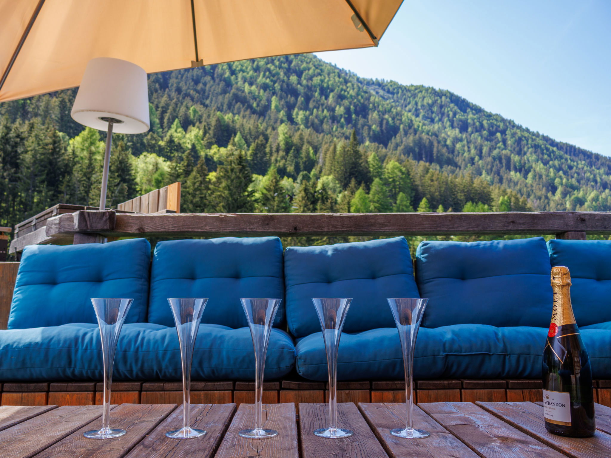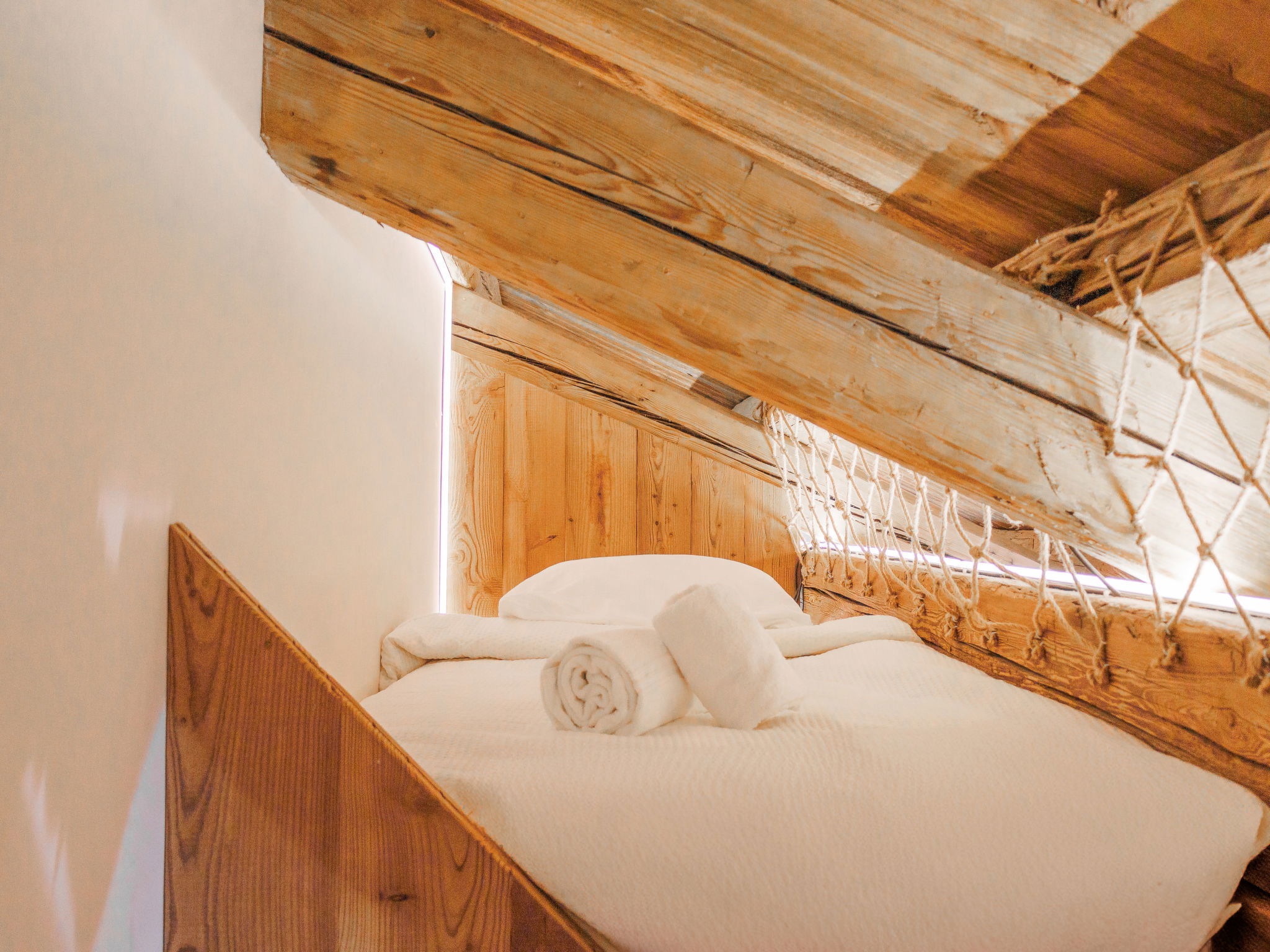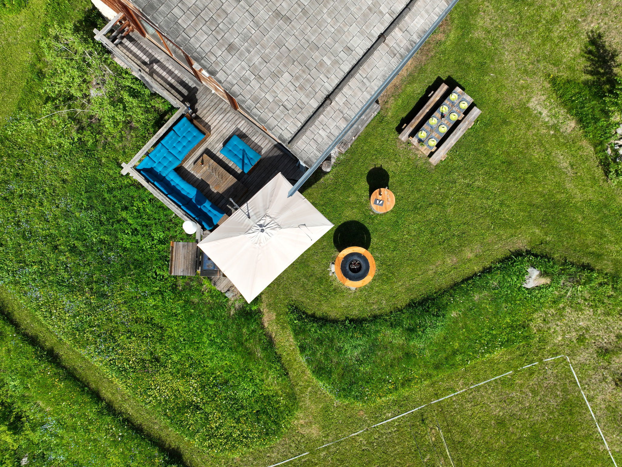 "Chalet Gaea", 5-room chalet 140 m2 on 3 levels, north-east facing position. Object suitable for 6 adults + 3 children. Partly with sloping ceilings, very comfortable and beautiful furnishings: entrance hall. Living/dining room with Scandinavian wood stove and Home cinema. Exit to the terrace. Open kitchen (oven, dishwasher, 4 induction hot plates, toaster, kettle, microwave, freezer, electric coffee machine, Capsules for coffee machine (Nespresso) extra, raclette grill, fondue Set (cheese)). Bath/shower/WC. On the lower ground floor: 1 room with 1 french bed (180 cm, length 200 cm), bath/shower/WC. Upper floor: 1 room with 1 bed (90 cm, length 200 cm), 1 french bed (160 cm, length 200 cm). (ladder) open small gallery with sloping ceilings, ceiling height 120 - 145 cm with 1 bed (90 cm, length 200 cm). 1 room, without wardrobe with 1 double sofabed (140 cm, length 200 cm). Top floor: (ladder) open gallery with sloping ceilings, ceiling height 48 - 135 cm with 1 bed (90 cm, length 200 cm). Large terrace. Terrace furniture, barbecue, deck chairs. Very beautiful view of the mountains. Facilities: washing machine, dryer, hair dryer. Internet (WiFi, free). Parking (3 cars). Please note: not suitable for children under 8 years. Non-smokers only. 2 braziers, one of which is covered. Instead of an enclosed bedroom, some sleeping areas are located in an open-plan area (gallery, alcove, etc.).