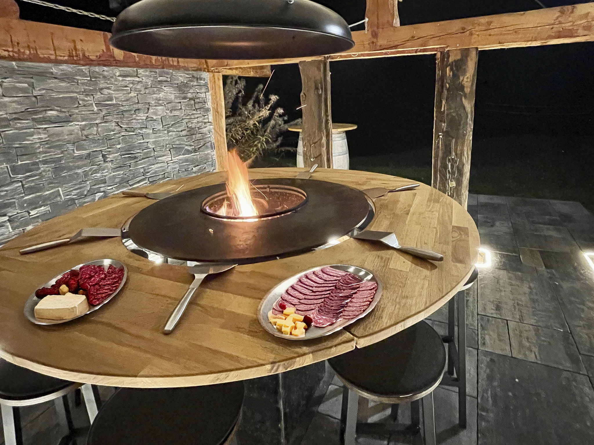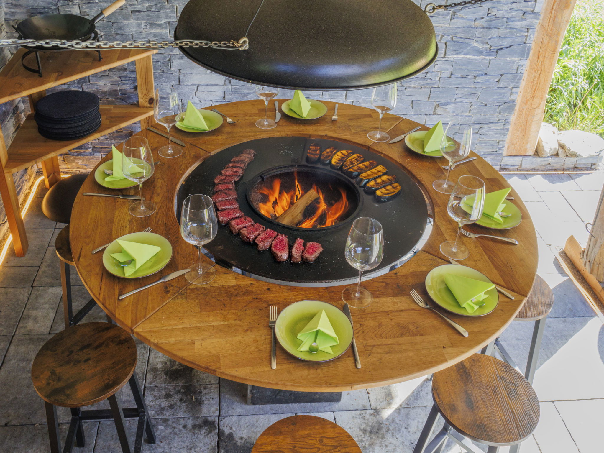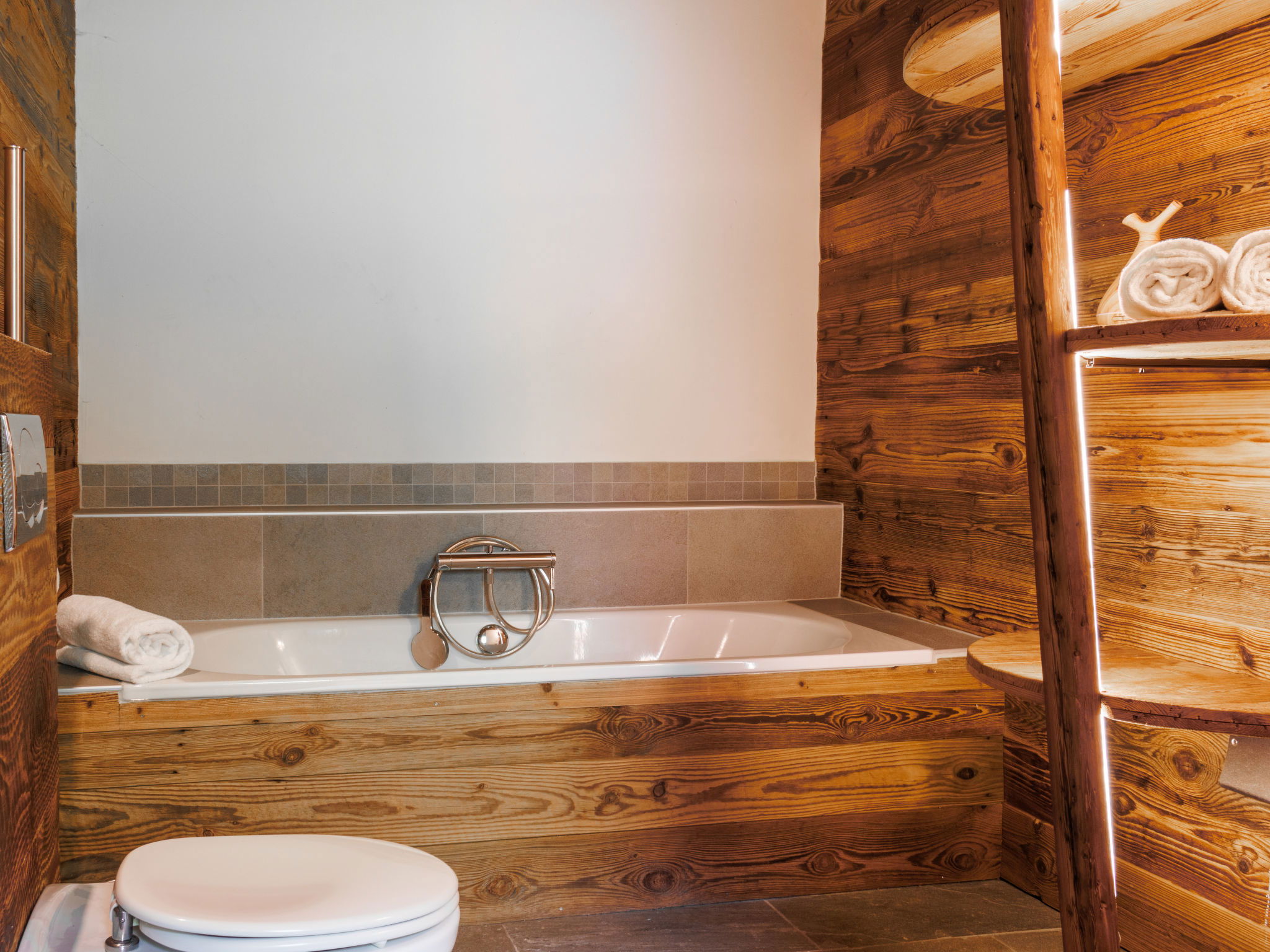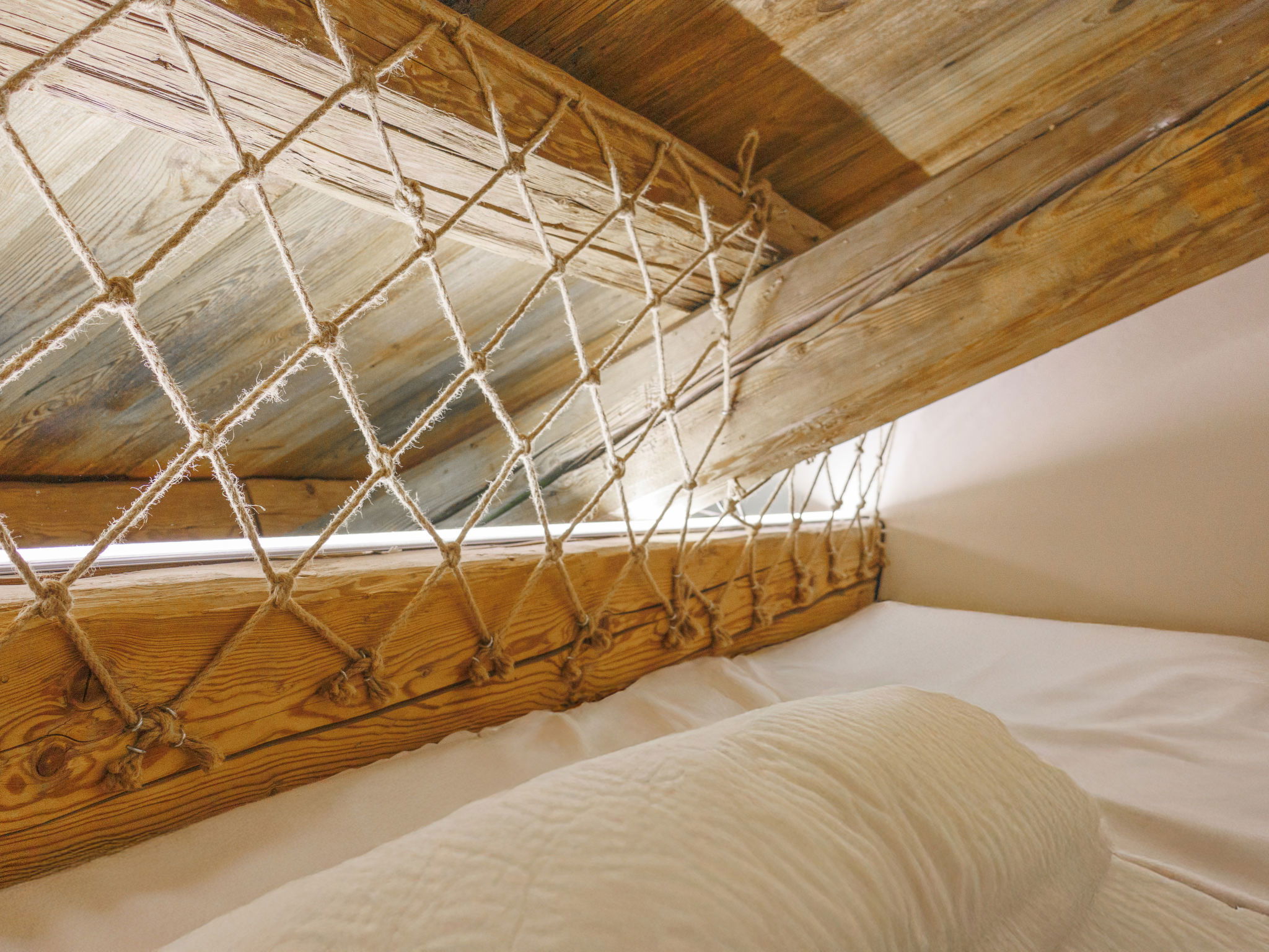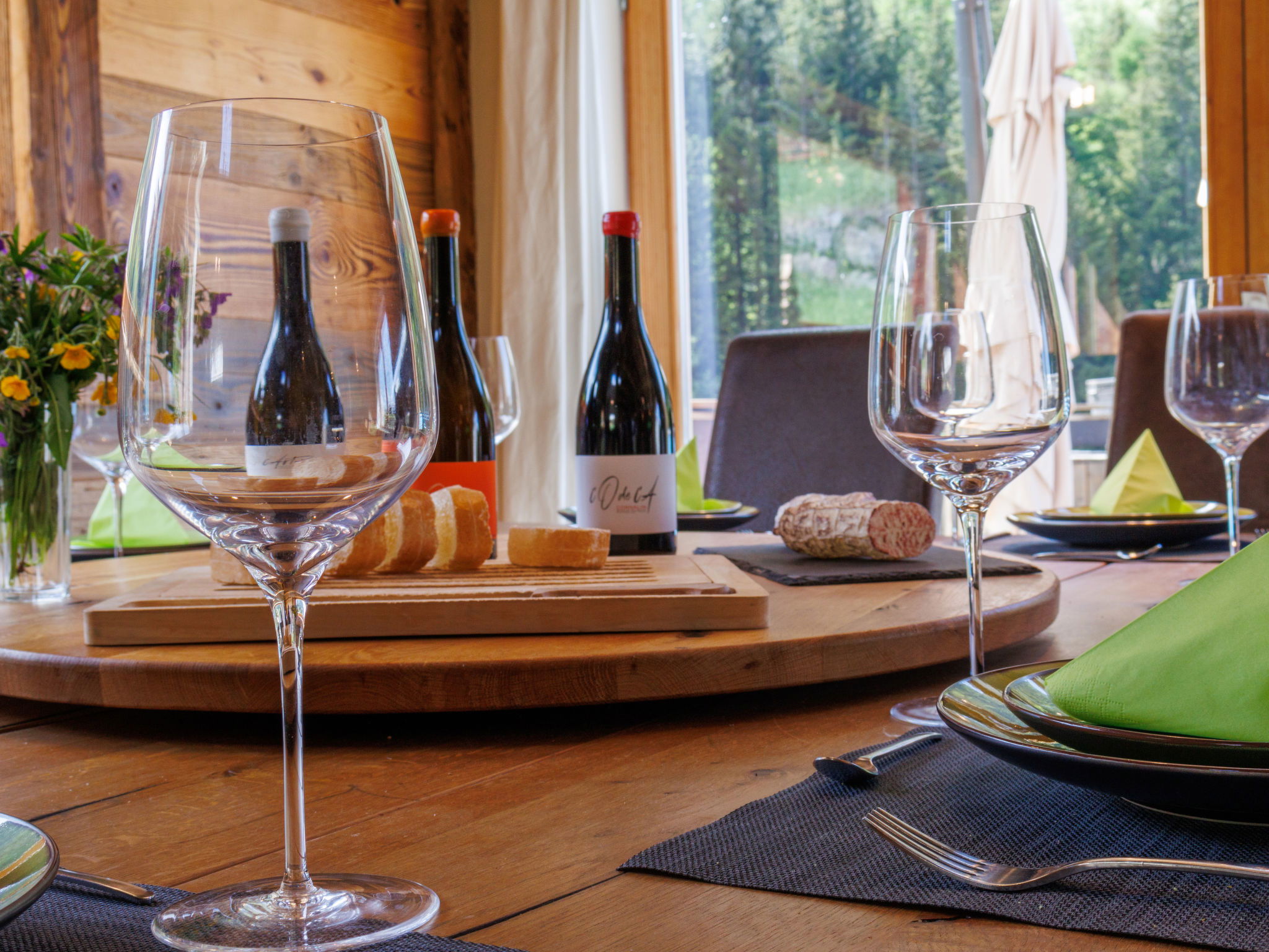 "Chalet Gaea", 5-room chalet 140 m2 on 3 levels, north-east facing position. Object suitable for 6 adults + 3 children. Partly with sloping ceilings, very comfortable and beautiful furnishings: entrance hall. Living/dining room with Scandinavian wood stove and Home cinema. Exit to the terrace. Open kitchen (oven, dishwasher, 4 induction hot plates, toaster, kettle, microwave, freezer, electric coffee machine, Capsules for coffee machine (Nespresso) extra, raclette grill, fondue Set (cheese)). Bath/shower/WC. On the lower ground floor: 1 room with 1 french bed (180 cm, length 200 cm), bath/shower/WC. Upper floor: 1 room with 1 bed (90 cm, length 200 cm), 1 french bed (160 cm, length 200 cm). (ladder) open small gallery with sloping ceilings, ceiling height 120 - 145 cm with 1 bed (90 cm, length 200 cm). 1 room, without wardrobe with 1 double sofabed (140 cm, length 200 cm). Top floor: (ladder) open gallery with sloping ceilings, ceiling height 48 - 135 cm with 1 bed (90 cm, length 200 cm). Large terrace. Terrace furniture, barbecue, deck chairs. Very beautiful view of the mountains. Facilities: washing machine, dryer, hair dryer. Internet (WiFi, free). Parking (3 cars). Please note: not suitable for children under 8 years. Non-smokers only. 2 braziers, one of which is covered. Instead of an enclosed bedroom, some sleeping areas are located in an open-plan area (gallery, alcove, etc.).