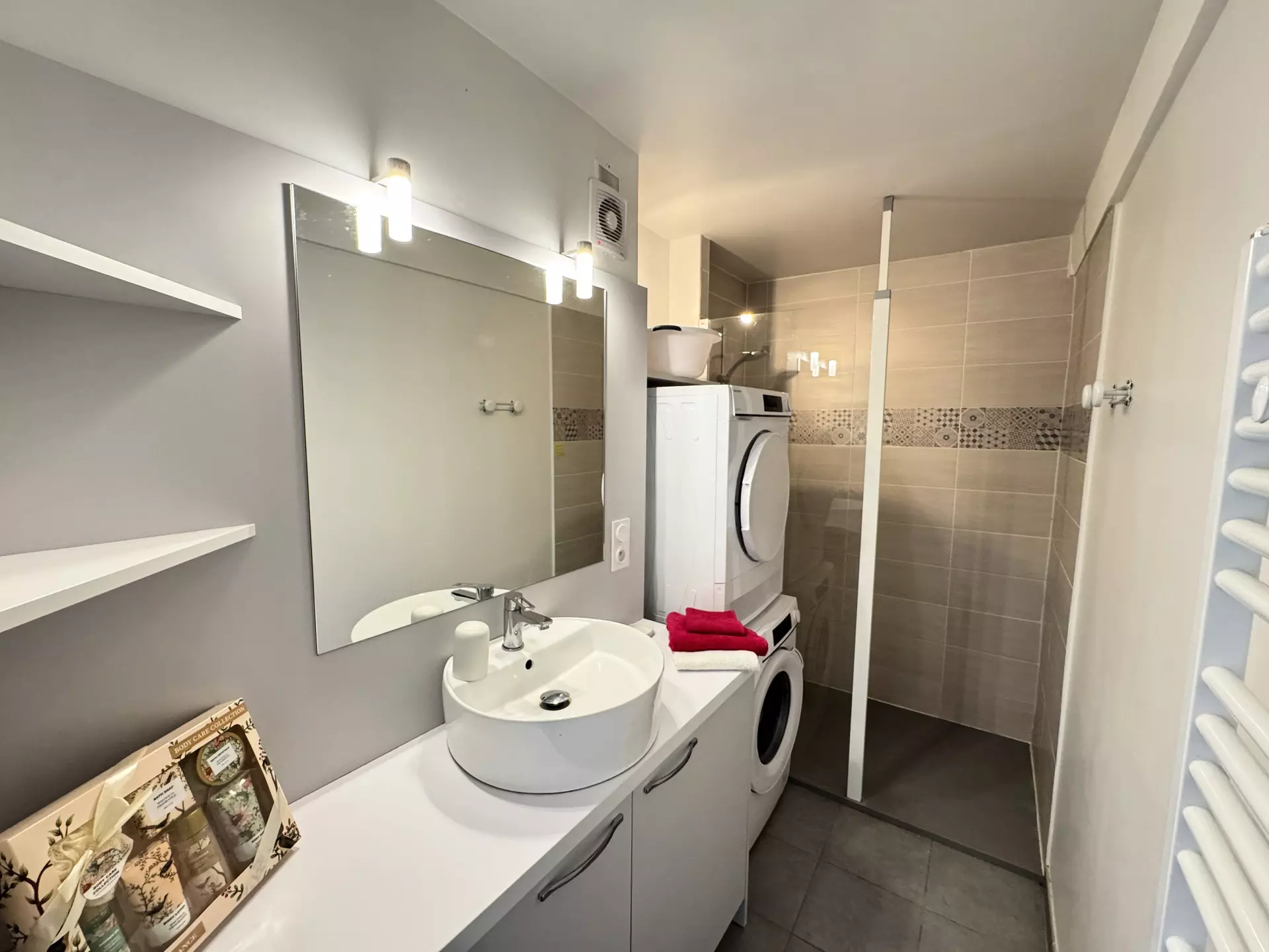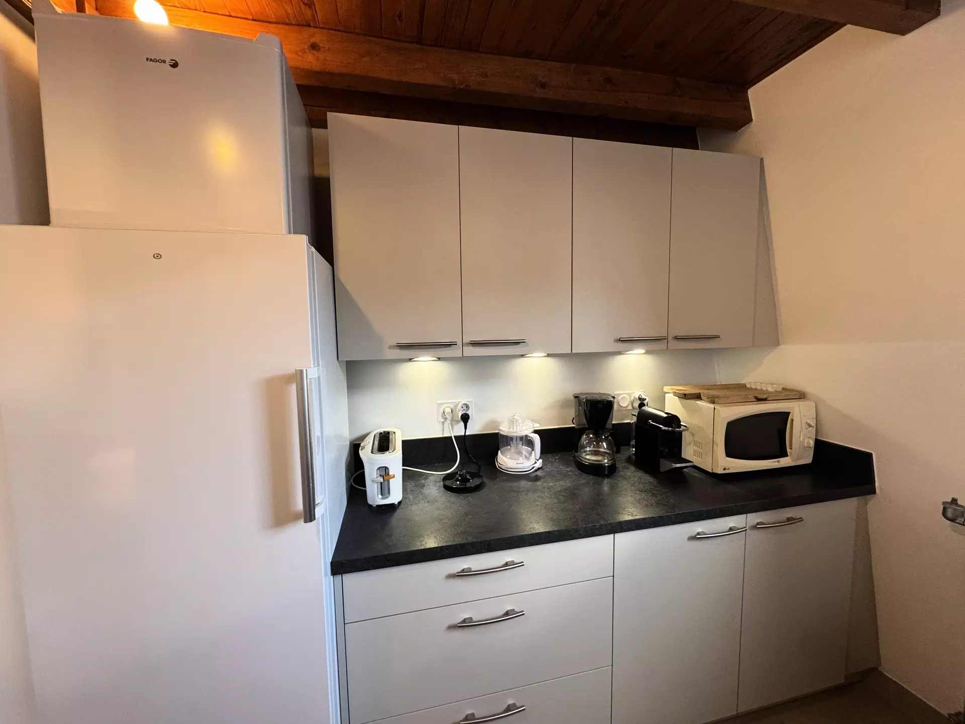 - A fully equipped kitchen (dishwasher, refrigerator + small freezer, induction hob, oven, microwave)
