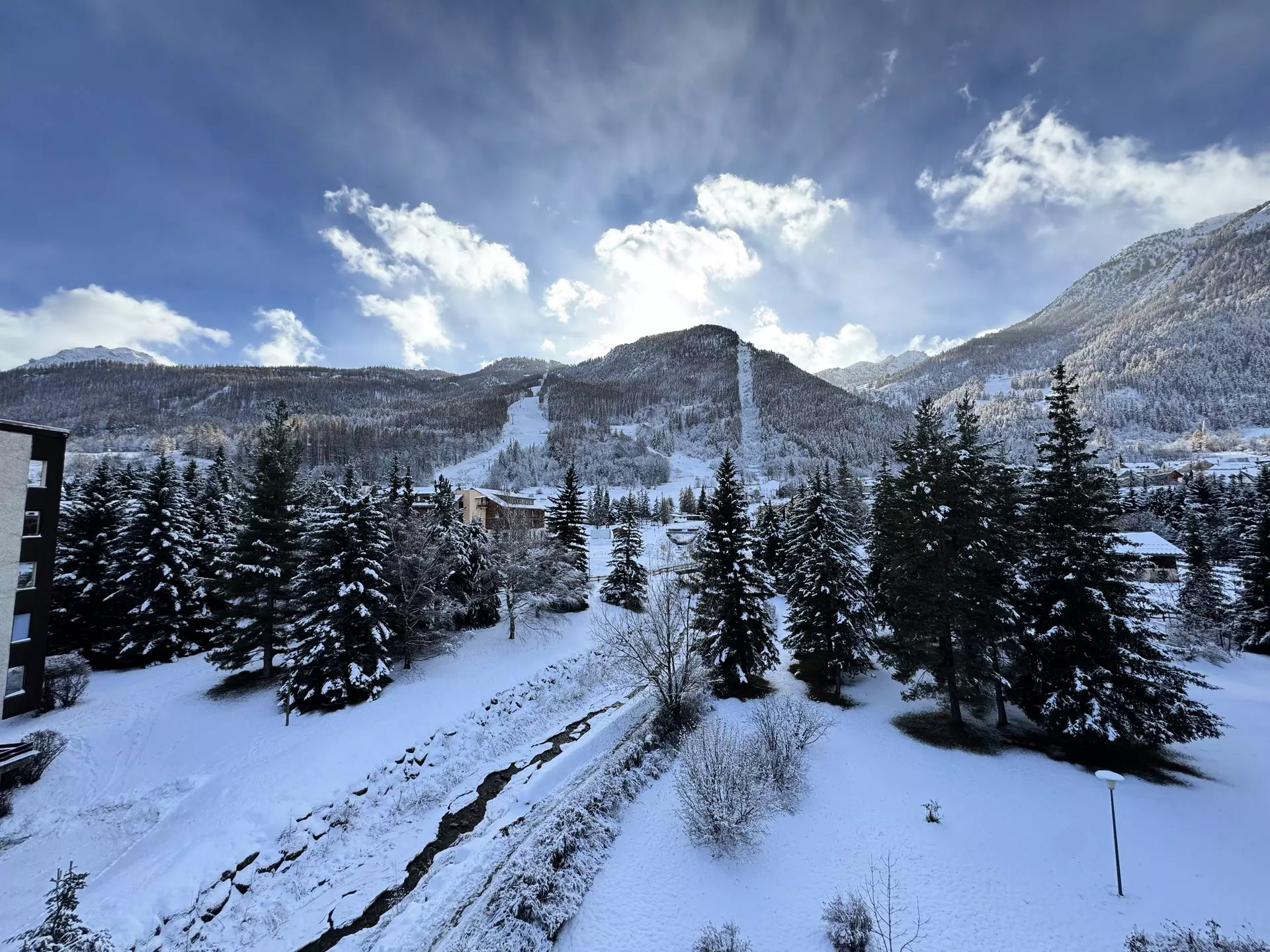 - A south-facing balcony offering a beautiful unobstructed view of the slopes and the mountains