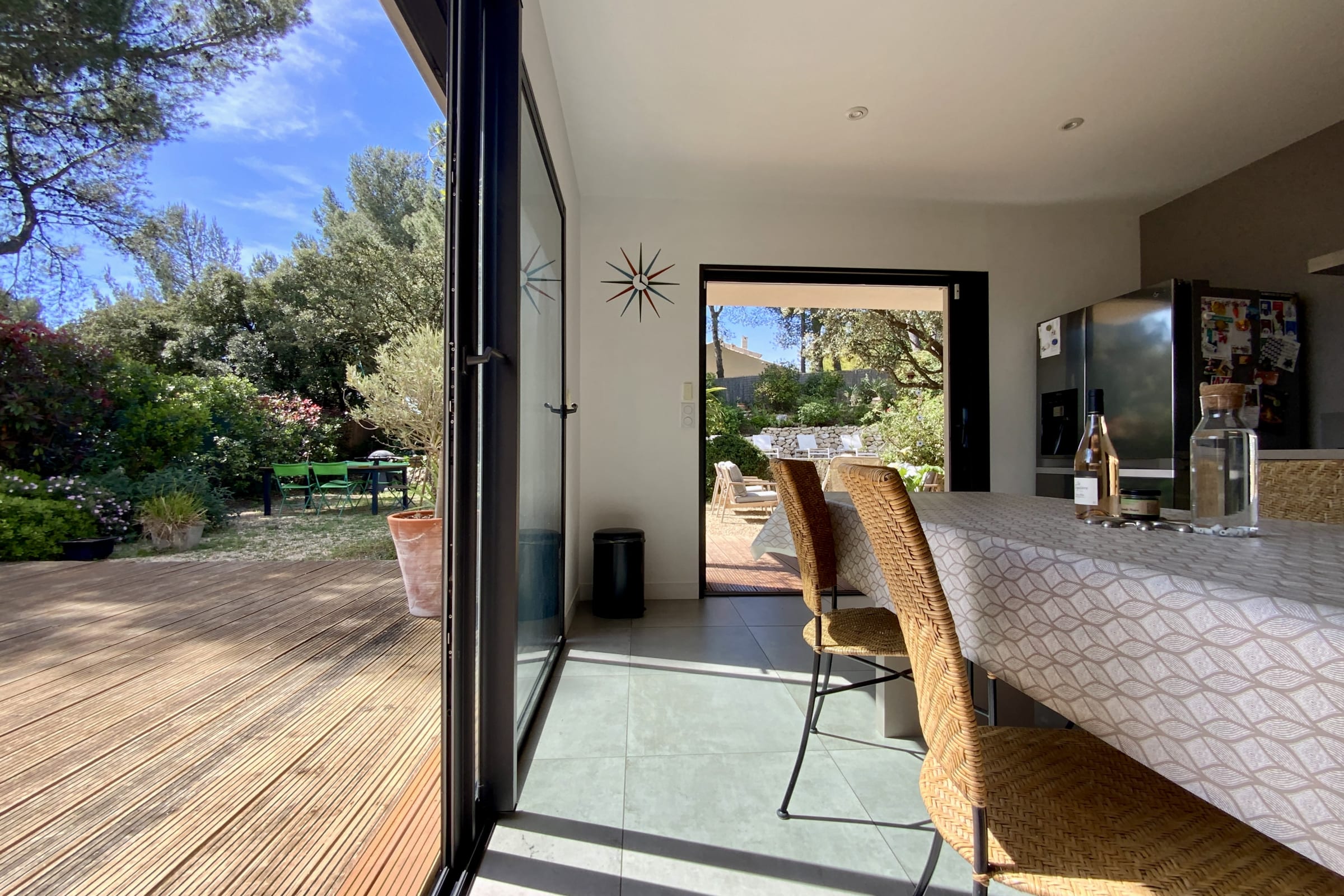 The house is located in a शांत and green residential area, typical of the village of Saint-Geniès-des-Mourgues.