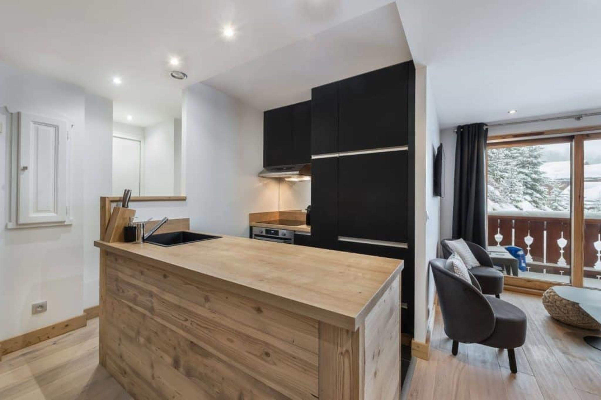 The apartment is ideally located in the heart of Méribel Village, just 50 m from the Golf chairlift and within walking distance of shops, restaurants, and the ESF ski school.