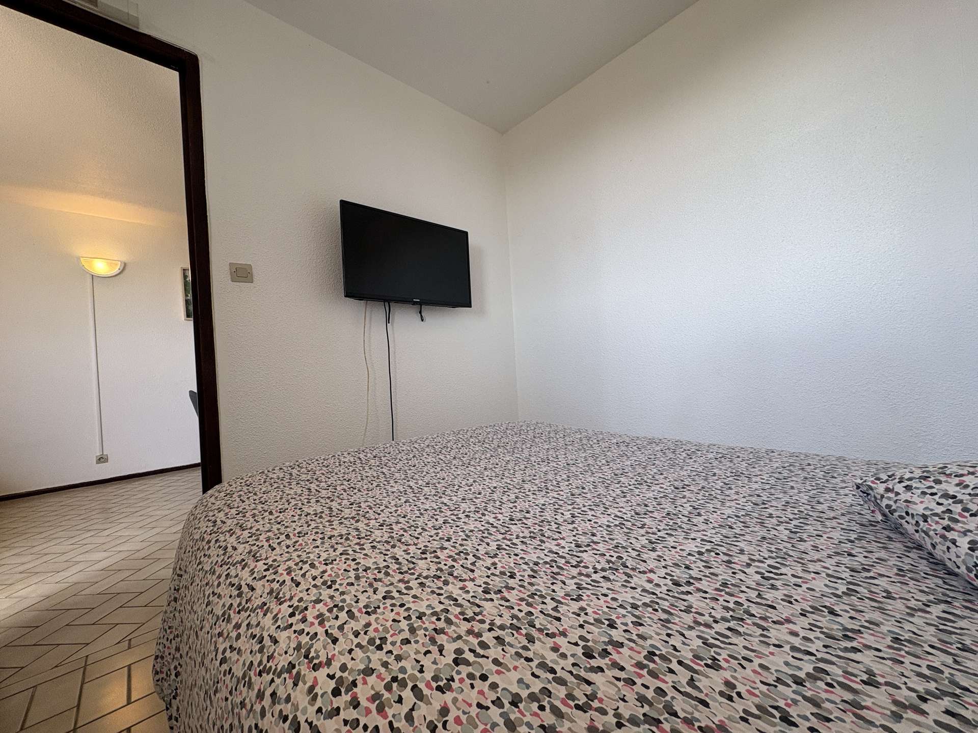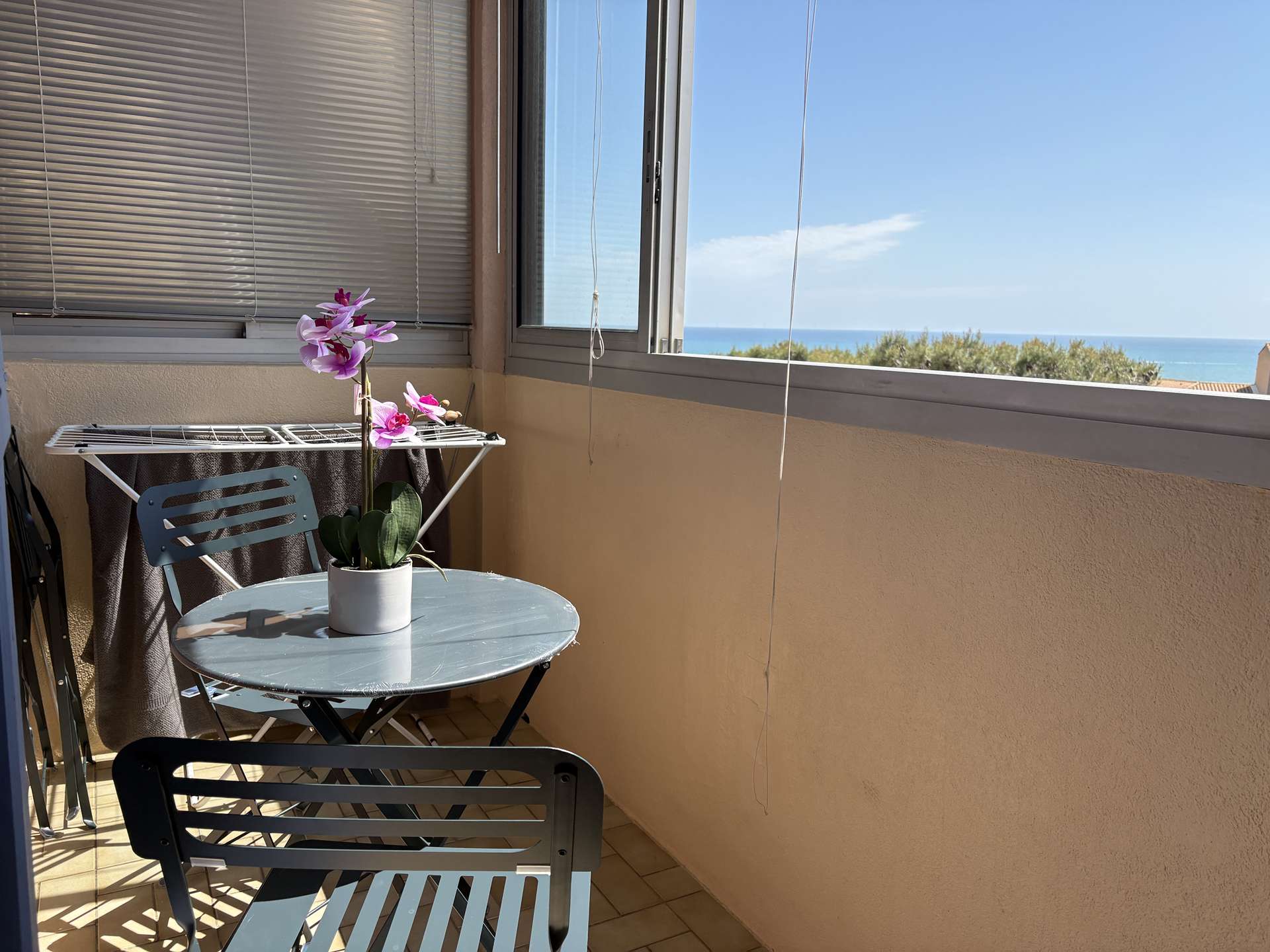 This beach rental is located on the 1st floor without an elevator and has a living room with a television (subject to good reception), a sofa bed, an equipped kitchen area, a bedroom with a double bed, a bathroom with toilet and a loggia with sea and tennis views.