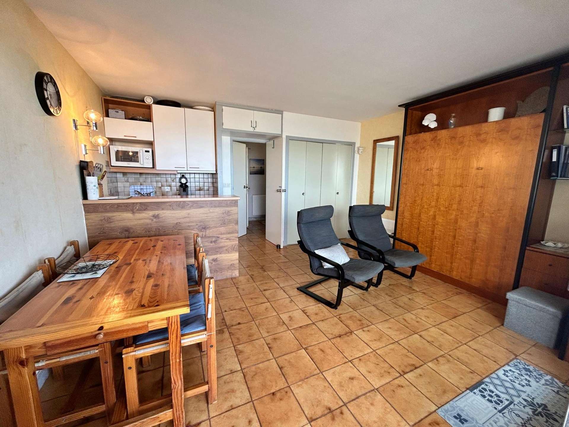 28m2 apartment for 4 people, in a secure residence, of good standing, located on the front line at the edge of the basin, studio cabin, on the 1st floor.